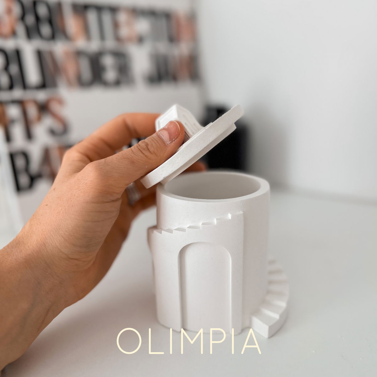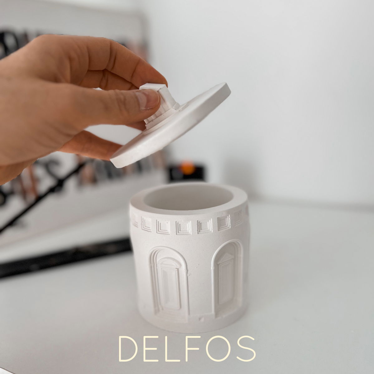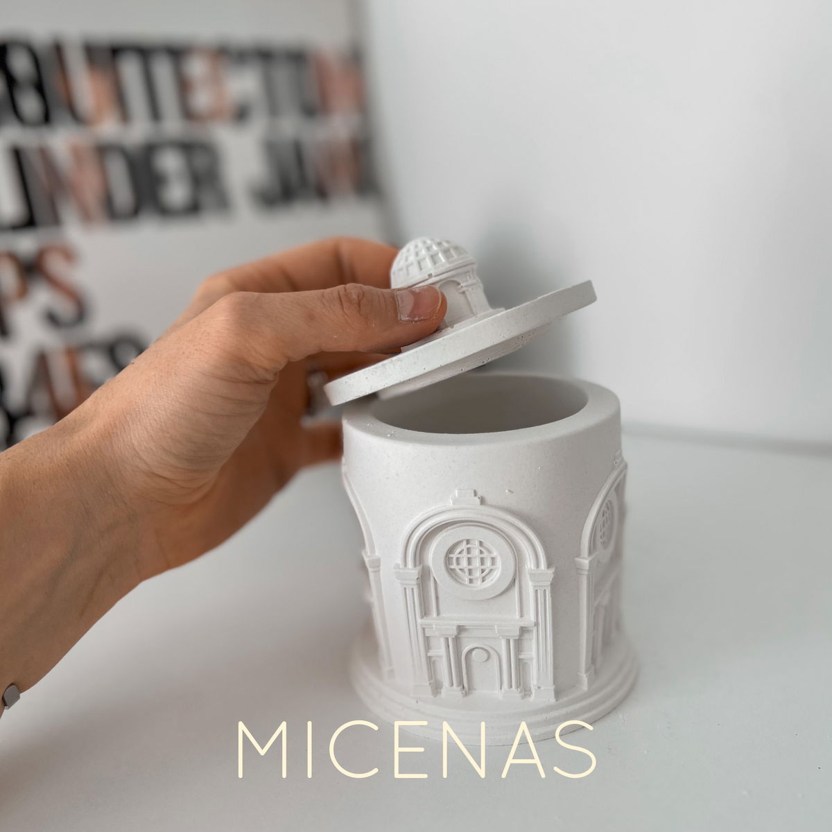 Este contenedor, inspirado en la arquitectura antigua, fusiona funcionalidad y estilo. Perfecto para organizar objetos pequeños, ser utilizado como lapicero, florero o incluso para colocar velas. Un toque decorativo que suma elegancia histórica a cualquier ambiente