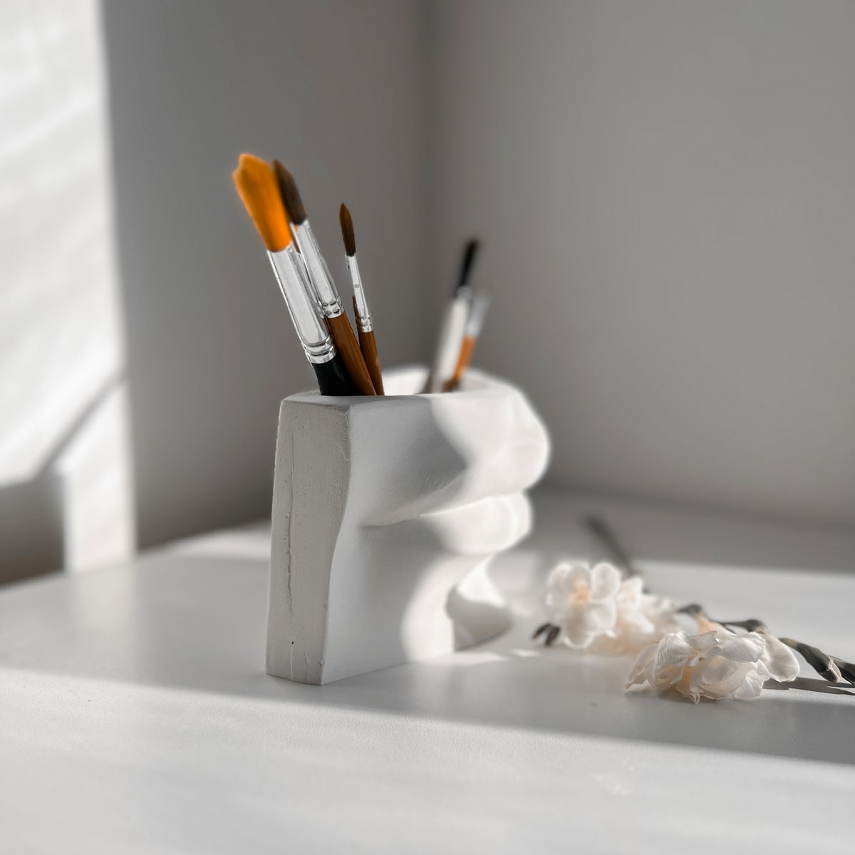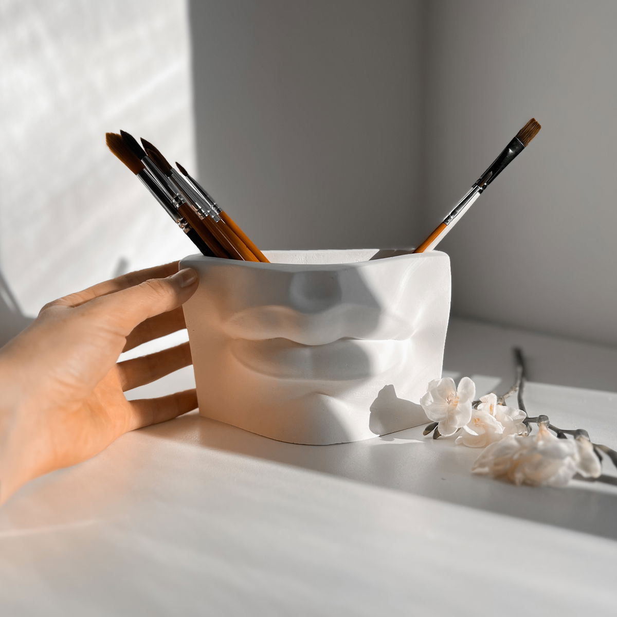 Un lapicero escultórico que toma su forma de los icónicos elementos del David —una forma elegante y funcional para organizar tus objetos de escritorio con un toque artístico.