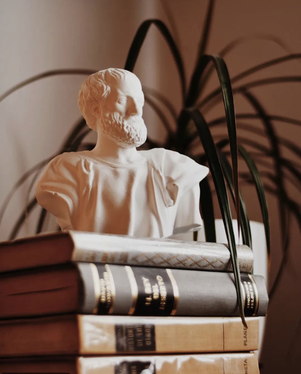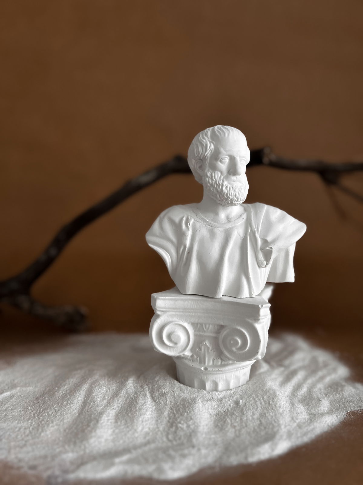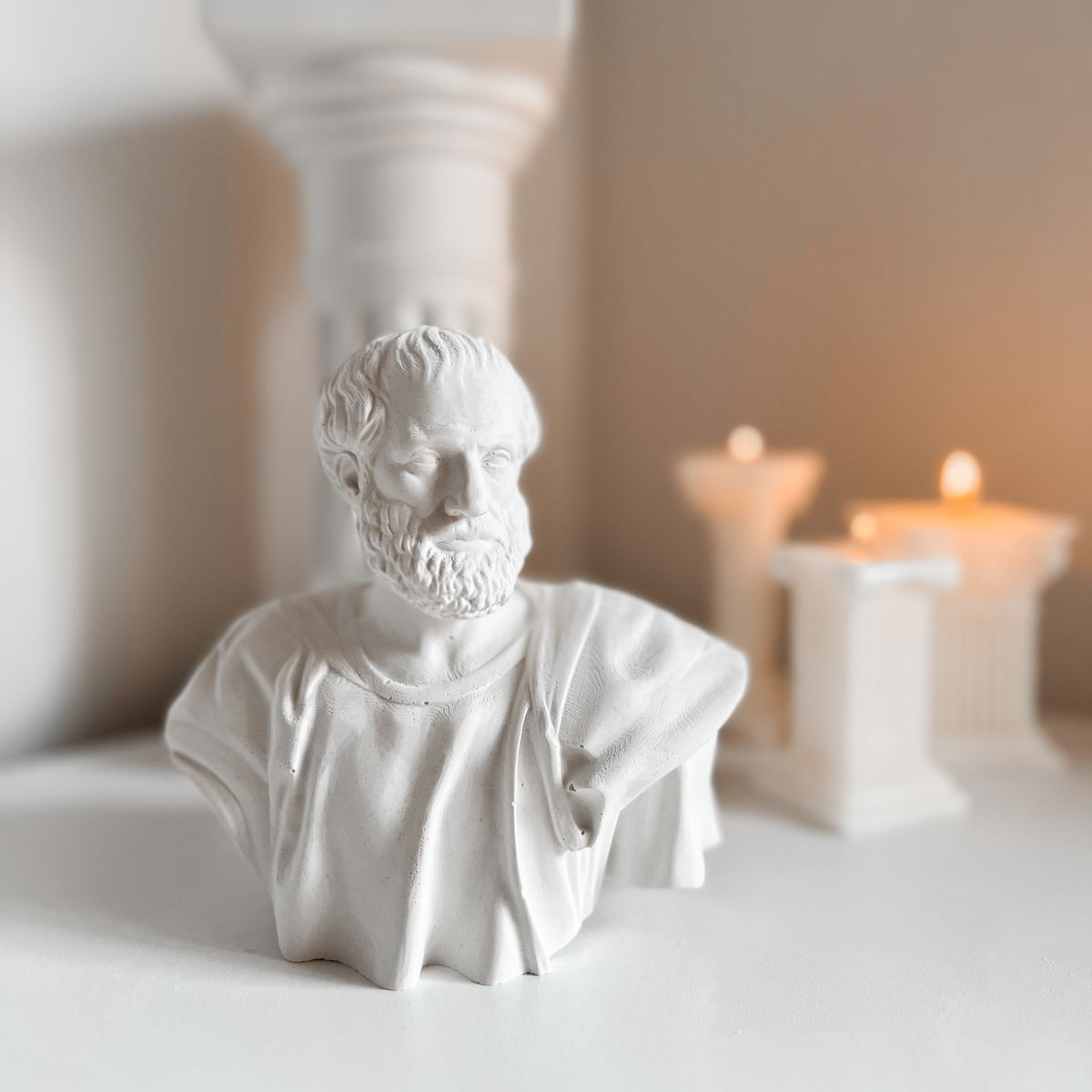 Escultura Aristóteles en color blanco con capitel arquitectónico