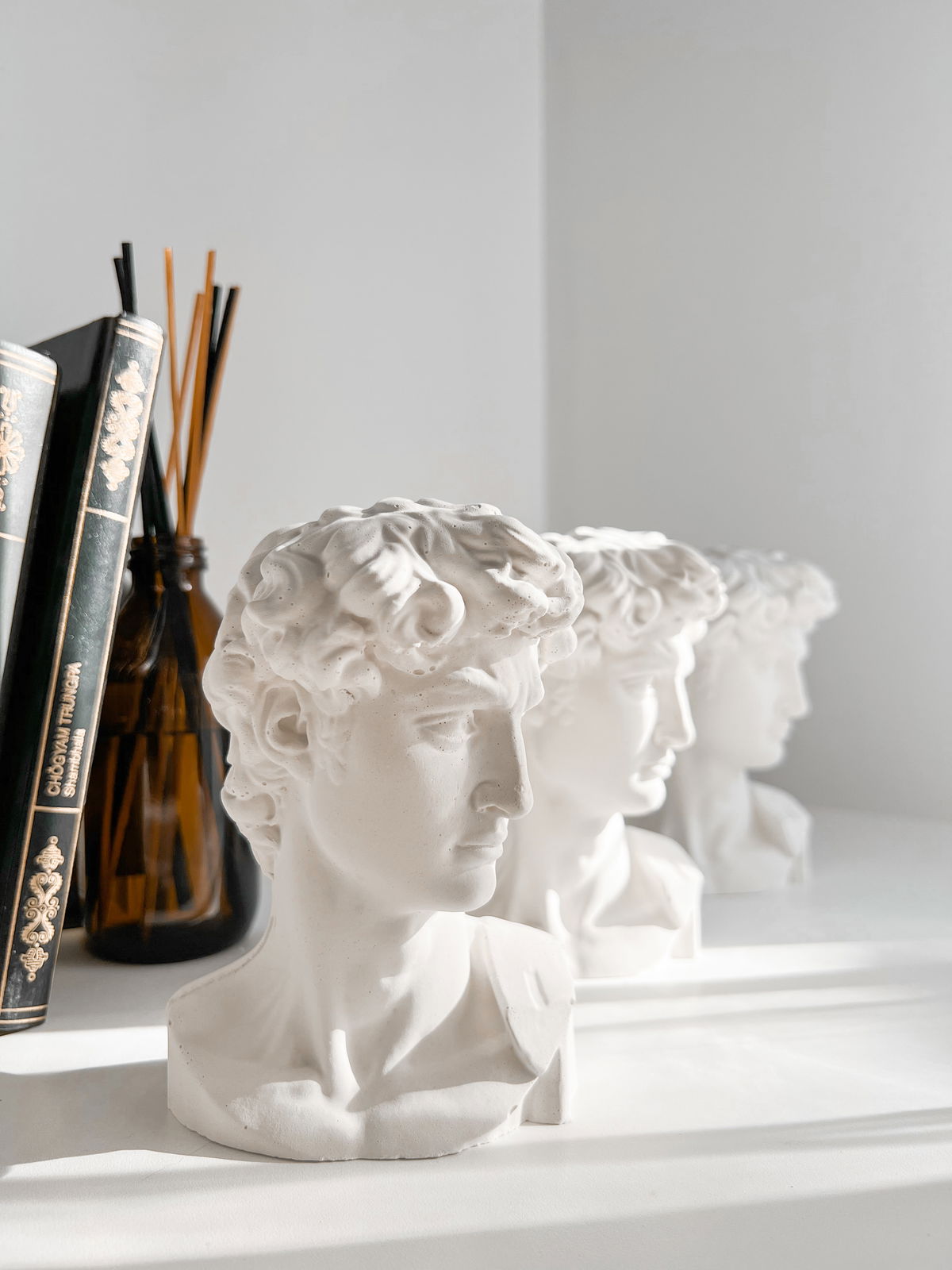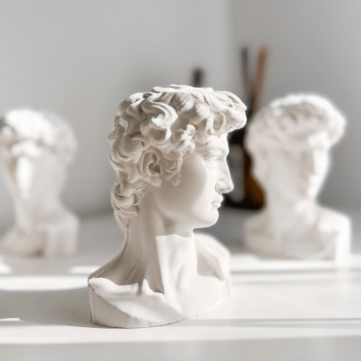 Inspirado en la escultura de Miguel Ángel, símbolo del ideal clásico y la fuerza contenida.