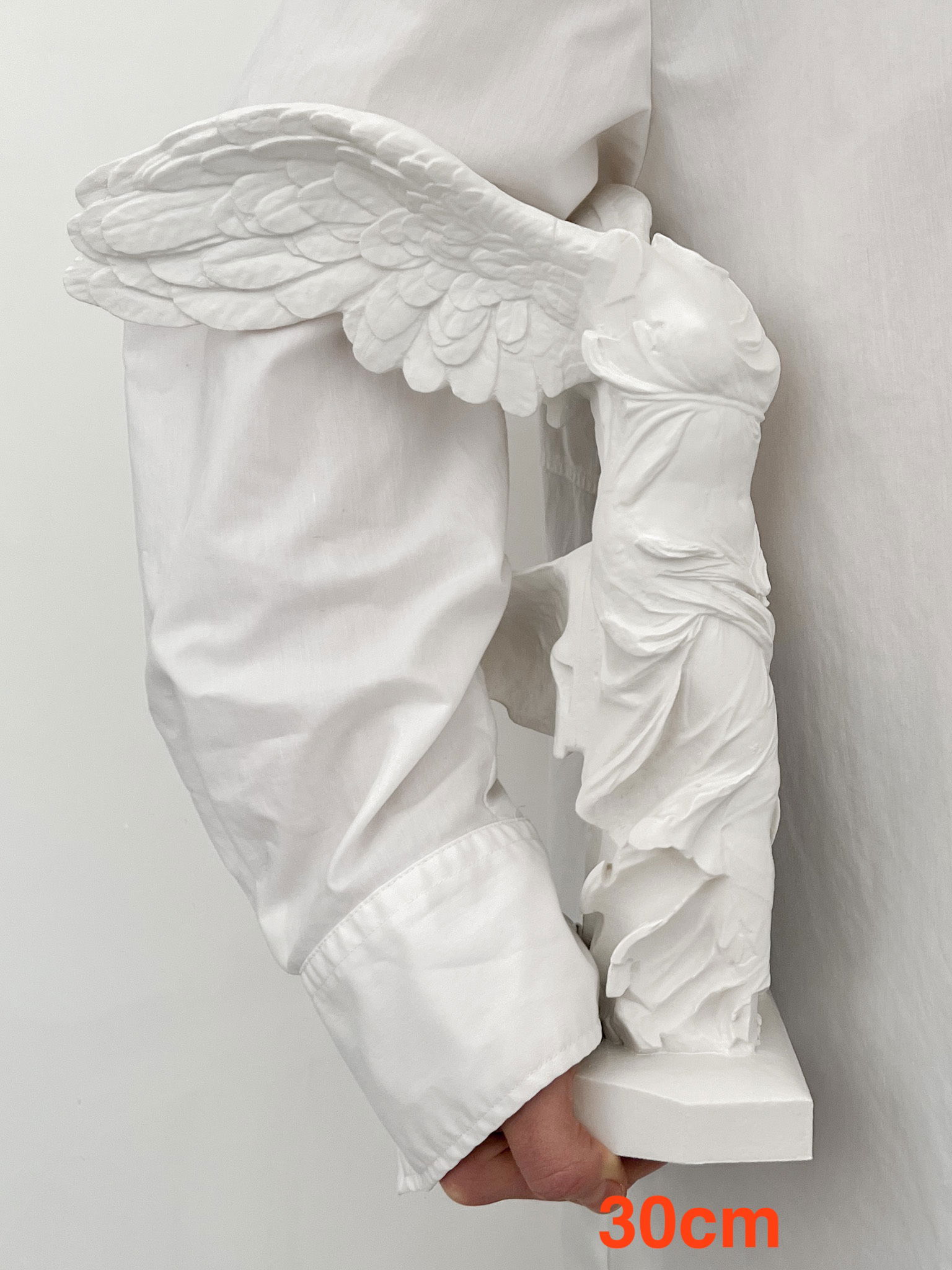 Por favor, en la última foto se ve la parte de atrás de la escultura. No es defecto, es así la escutura original. Los hierros en una de las alas son parte de la restauracion de la estatua. No aceptamos reclamos por este motivo.