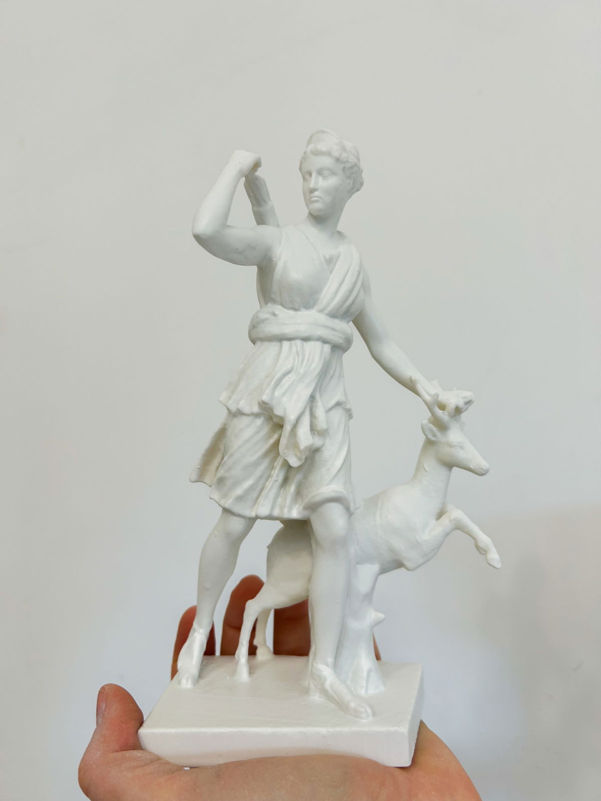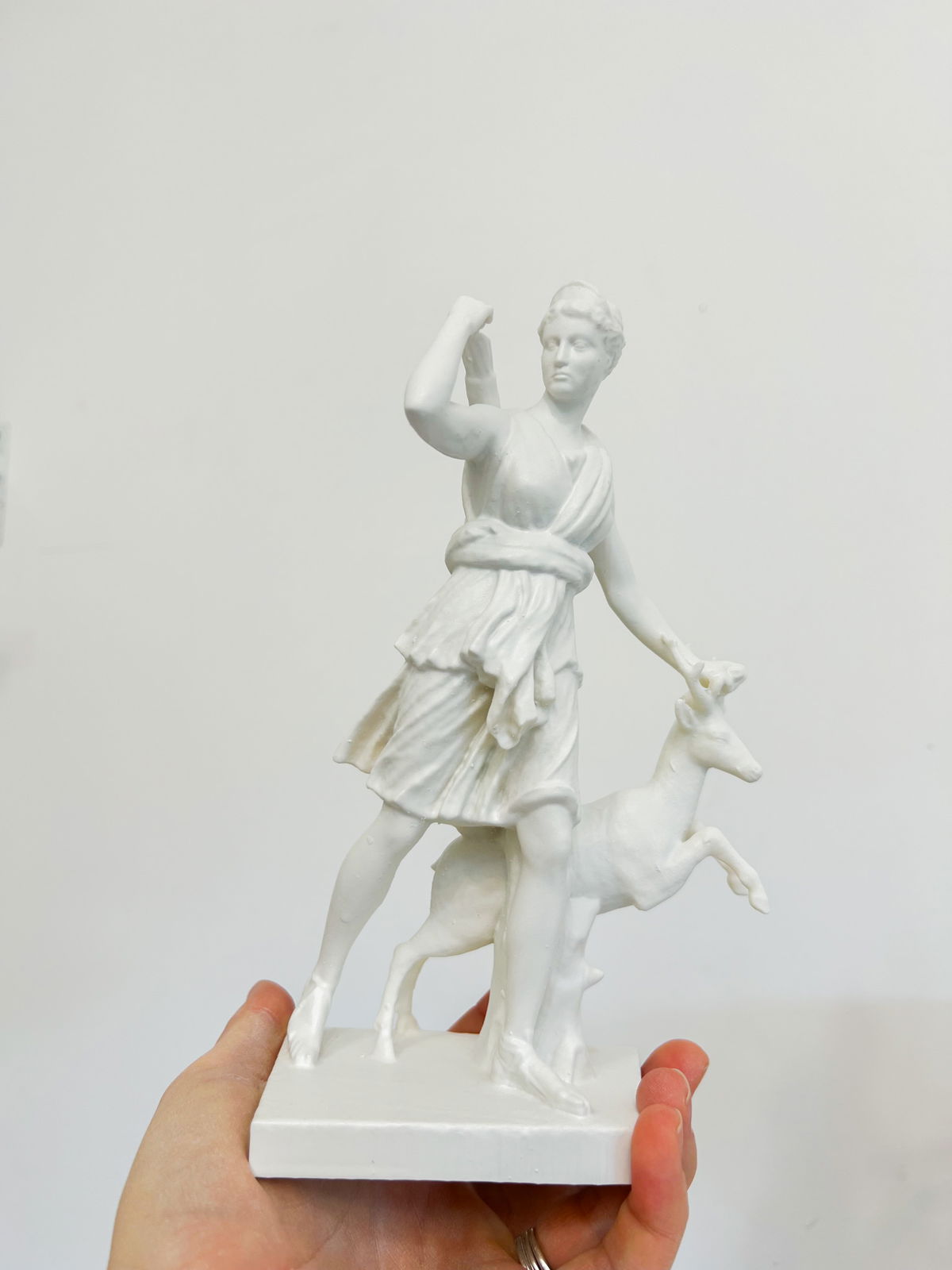 Cada pieza se imprime en 3D con resina UV, logrando una definición impecable en los detalles. Luego, la rellenamos para darle peso y estabilidad. Finalmente, la pintamos con aerosol para obtener un acabado mate que recuerda al concreto, como en nuestra colección general.
