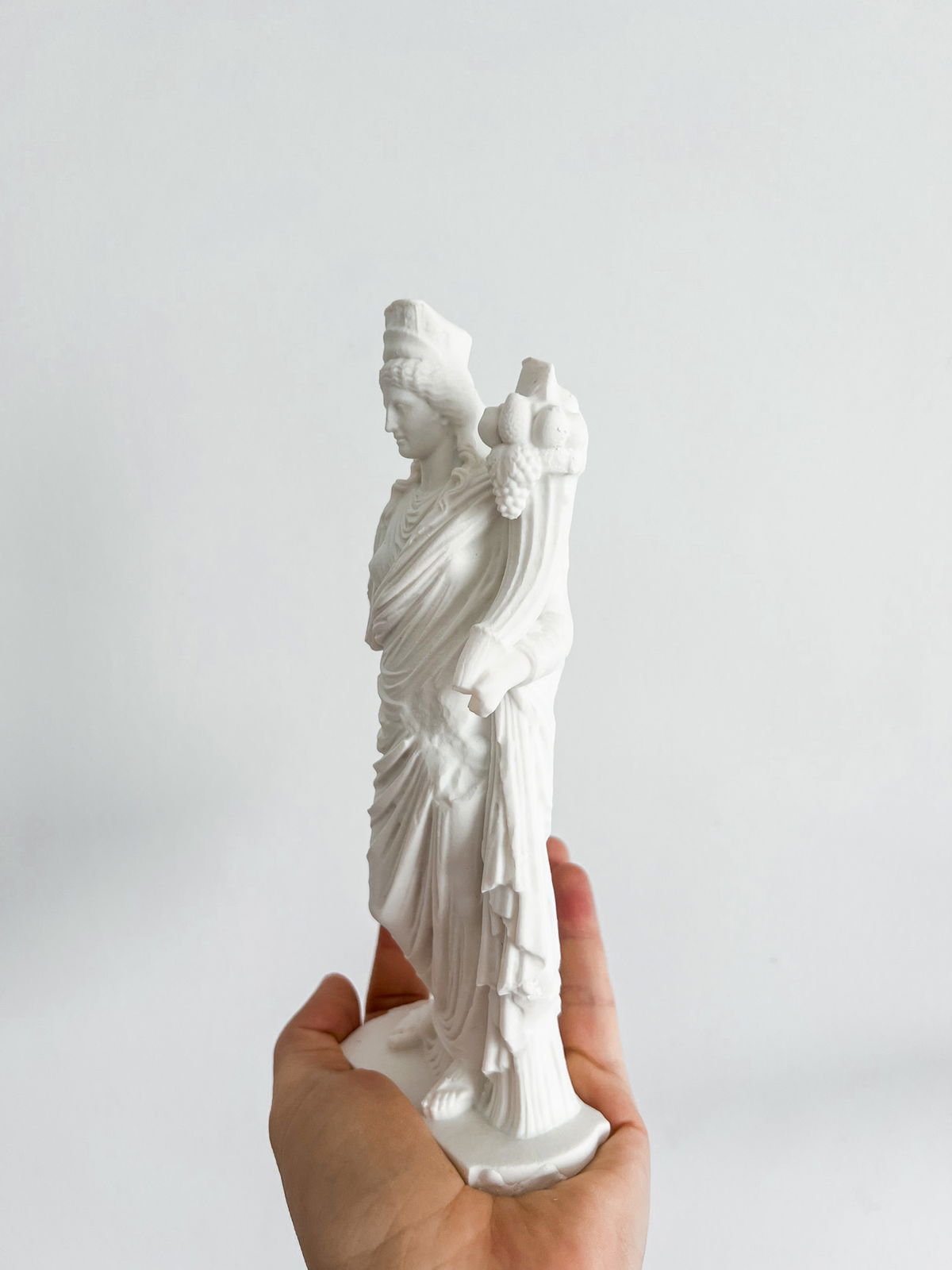 Cada pieza se imprime en 3D con resina UV, logrando una definición impecable en los detalles. Luego, la rellenamos para darle peso y estabilidad. Finalmente, la pintamos con aerosol para obtener un acabado mate que recuerda al concreto, como en nuestra colección general.