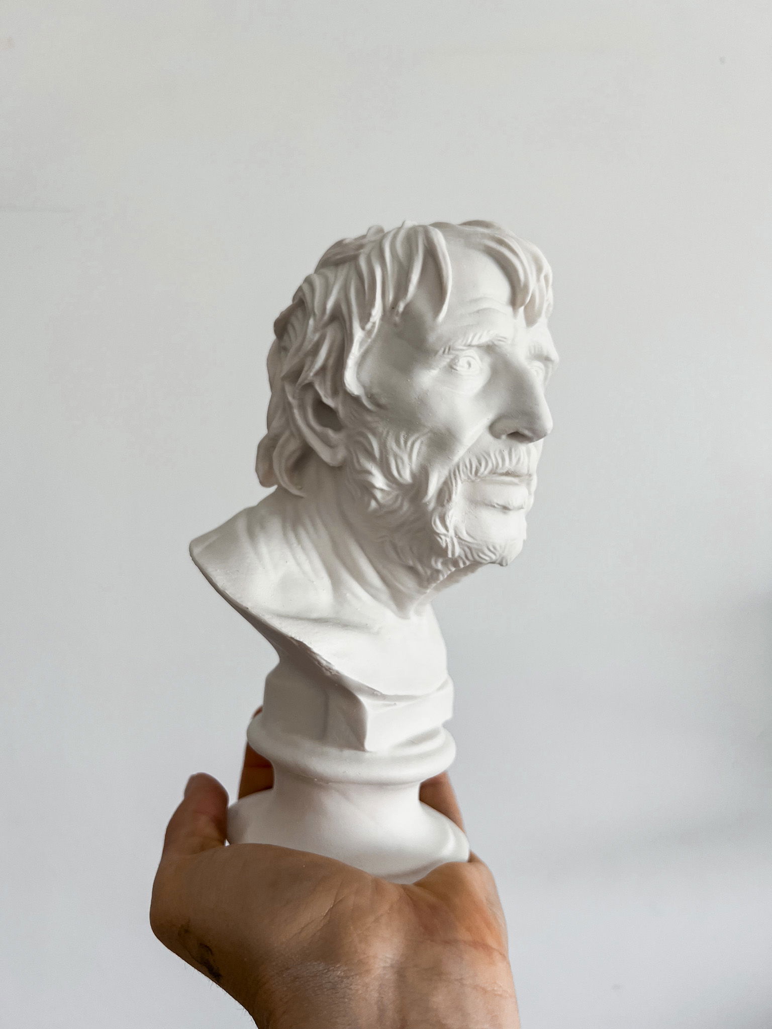 Cada pieza se imprime en 3D con resina UV, logrando una definición impecable en los detalles. Luego, la rellenamos para darle peso y estabilidad. Finalmente, la pintamos con aerosol para obtener un acabado mate que recuerda al concreto, como en nuestra colección general.