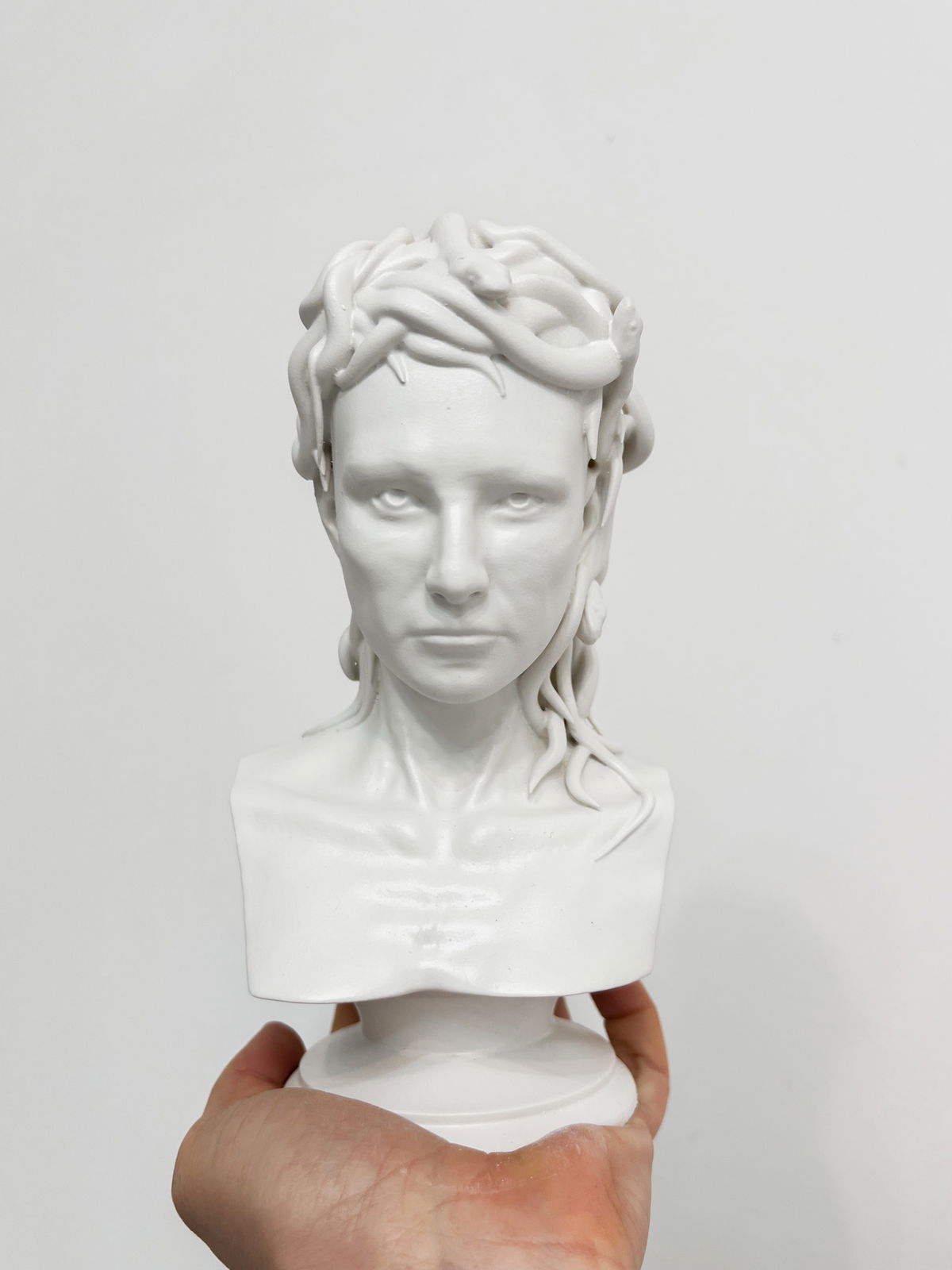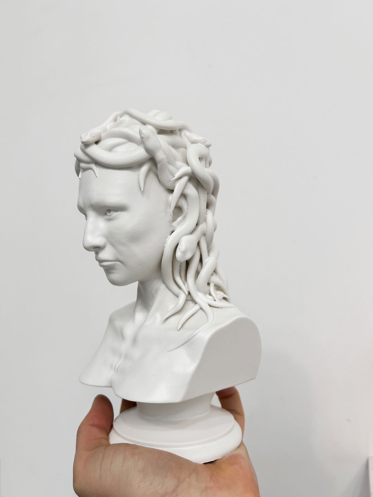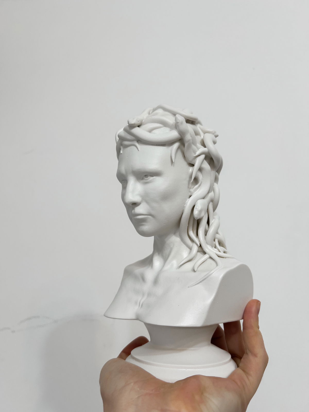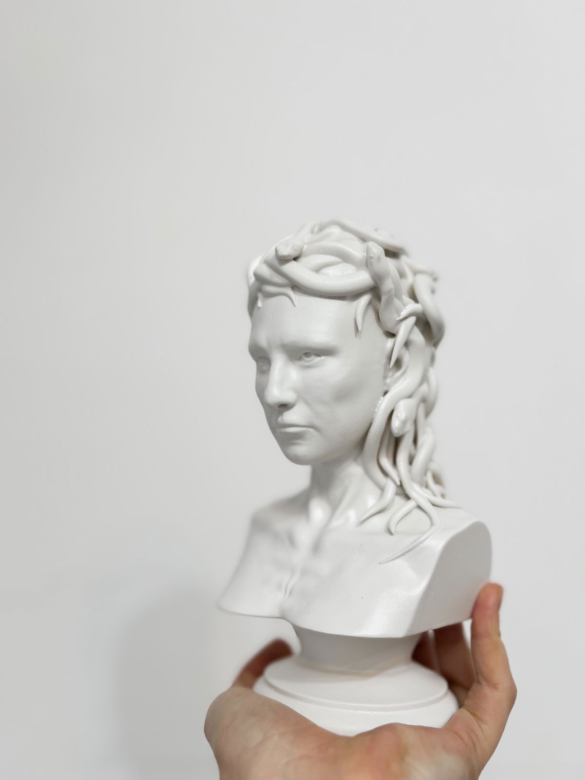 Cada pieza se imprime en 3D con resina UV, logrando una definición impecable en los detalles. Luego, la rellenamos para darle peso y estabilidad. Finalmente, la pintamos con aerosol para obtener un acabado mate que recuerda al concreto, como en nuestra colección general.