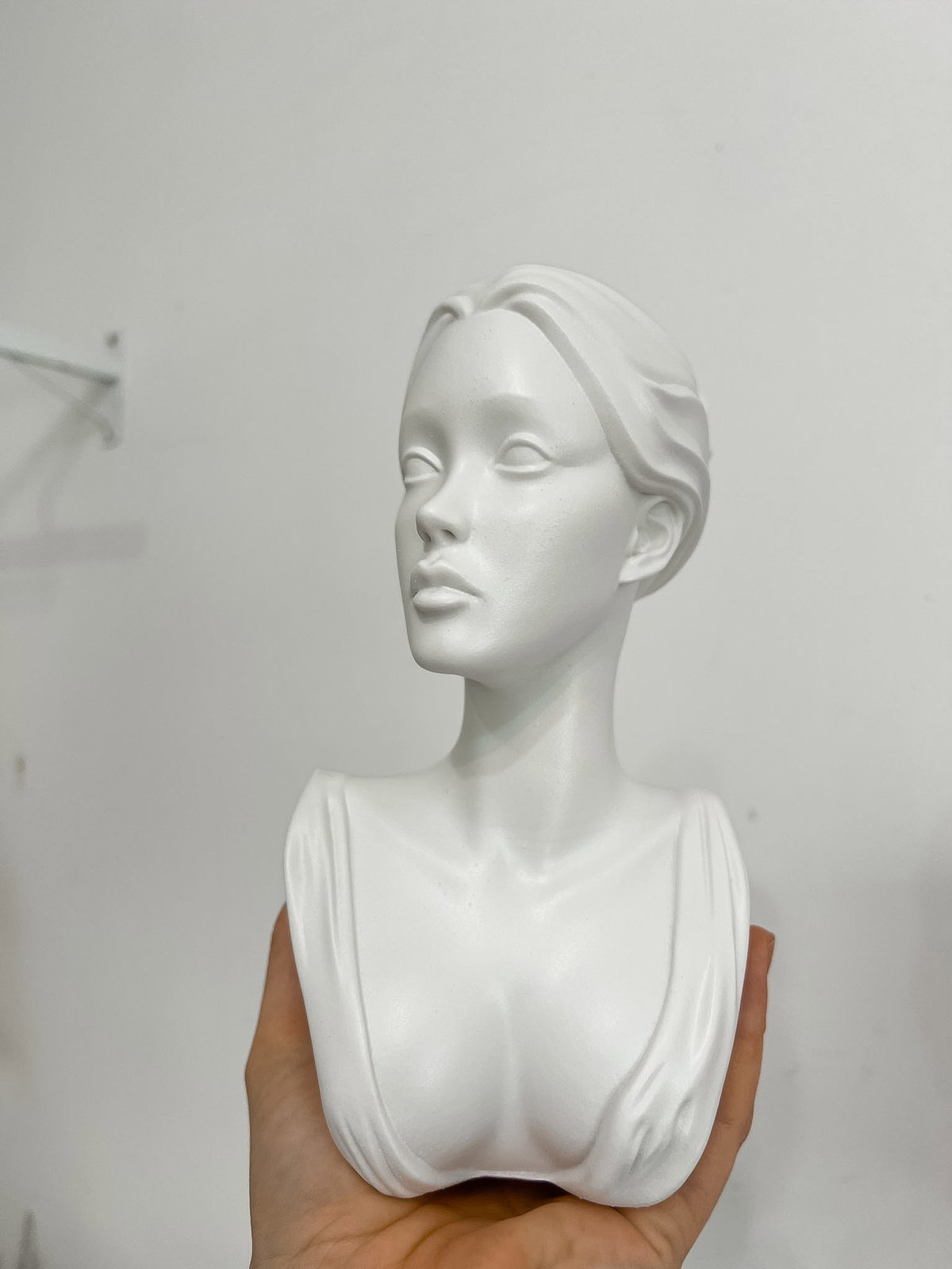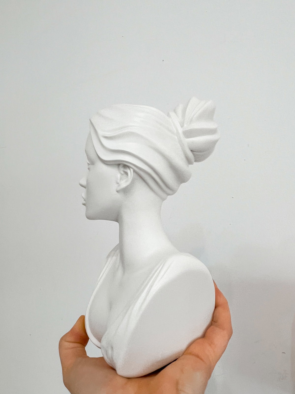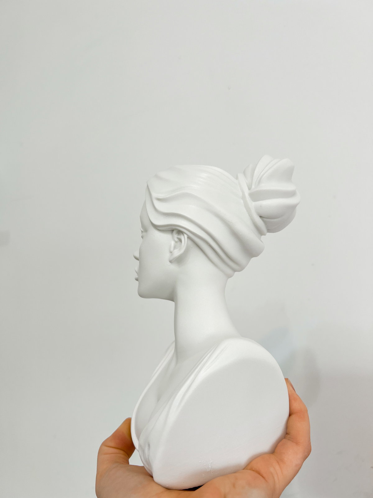 Cada pieza se imprime en 3D con resina UV, logrando una definición impecable en los detalles. Luego, la rellenamos para darle peso y estabilidad. Finalmente, la pintamos con aerosol para obtener un acabado mate que recuerda al concreto, como en nuestra colección general.