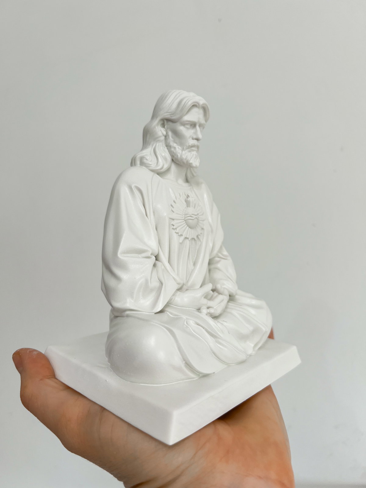 Cada pieza se imprime en 3D con resina UV, logrando una definición impecable en los detalles. Luego, la rellenamos para darle peso y estabilidad. Finalmente, la pintamos con aerosol para obtener un acabado mate que recuerda al concreto, como en nuestra colección general.
