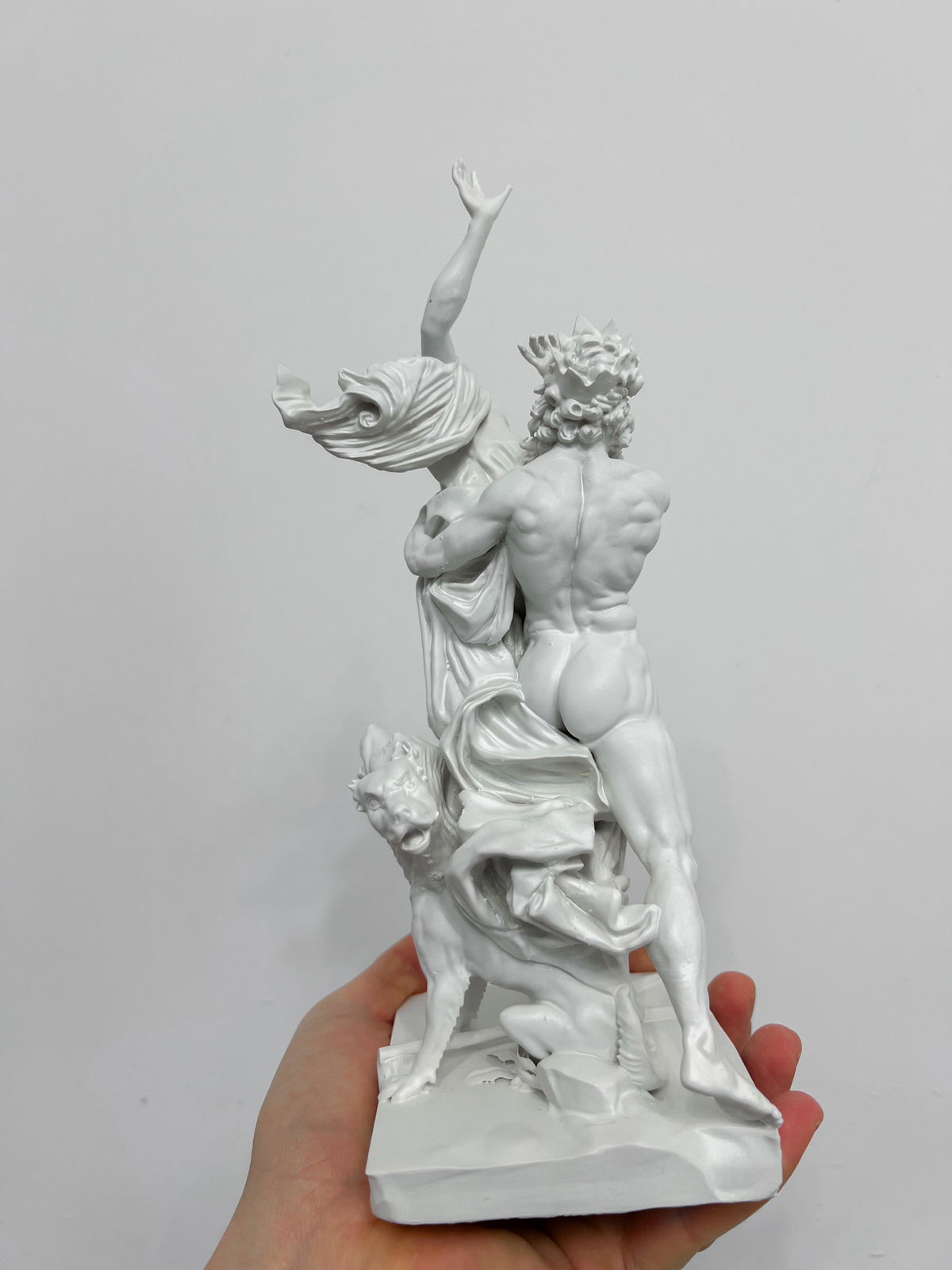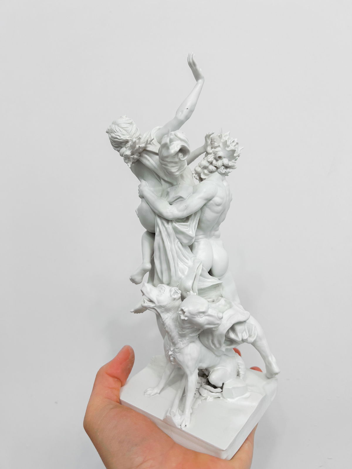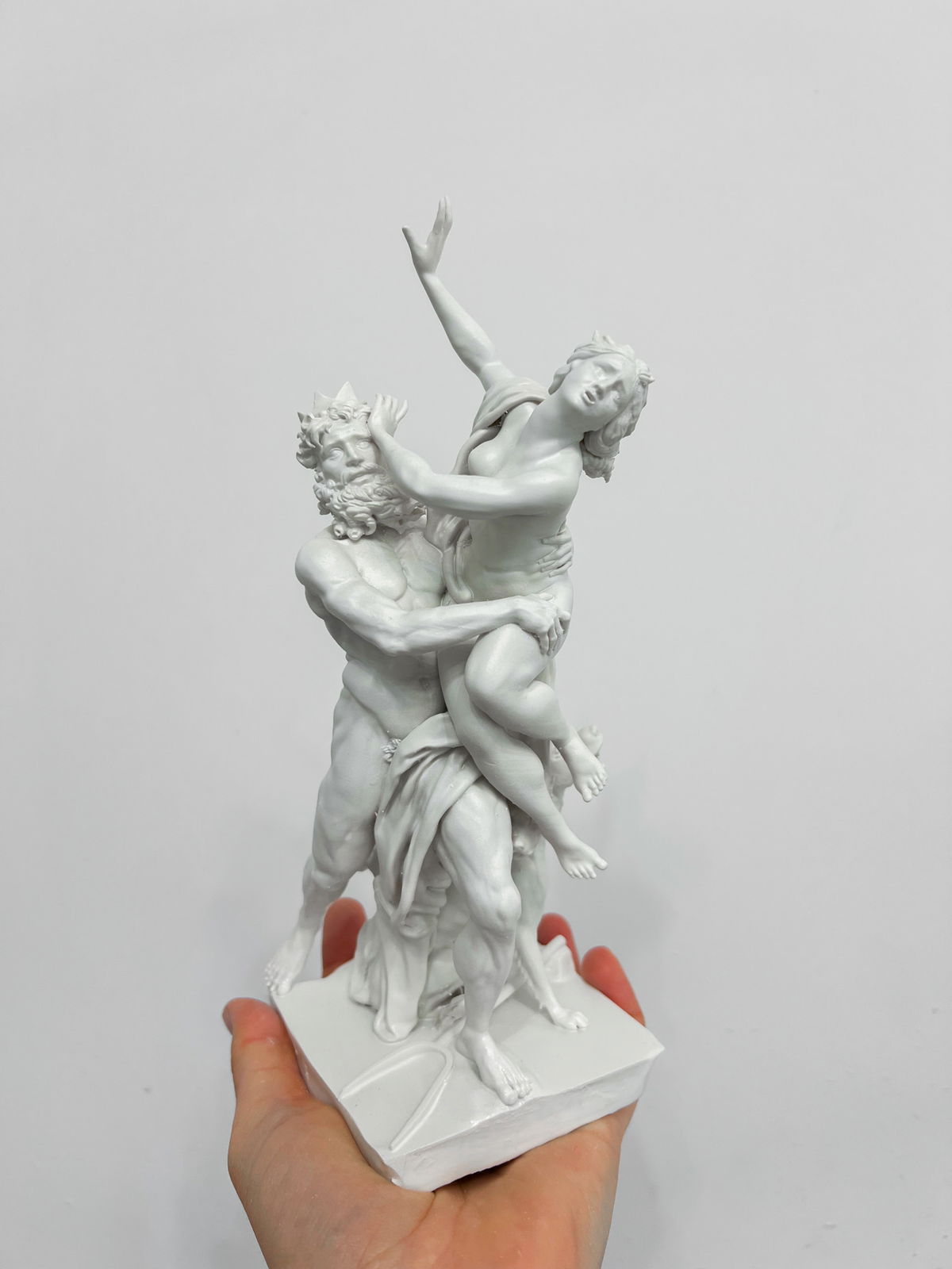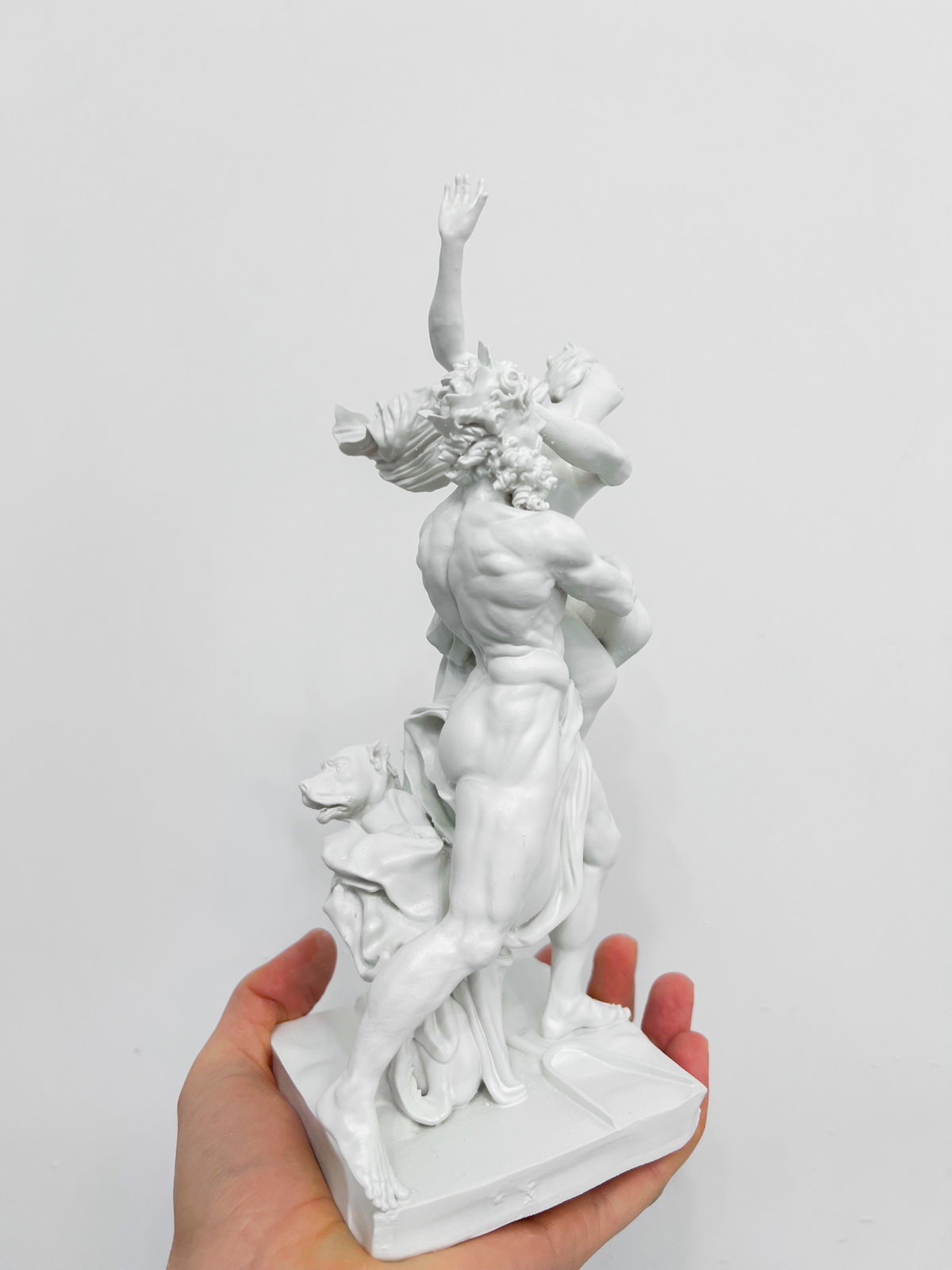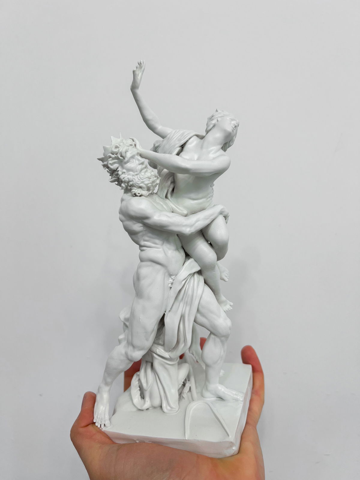 Cada pieza se imprime en 3D con resina UV, logrando una definición impecable en los detalles. Luego, la rellenamos para darle peso y estabilidad. Finalmente, la pintamos con aerosol para obtener un acabado mate que recuerda al concreto, como en nuestra colección general.