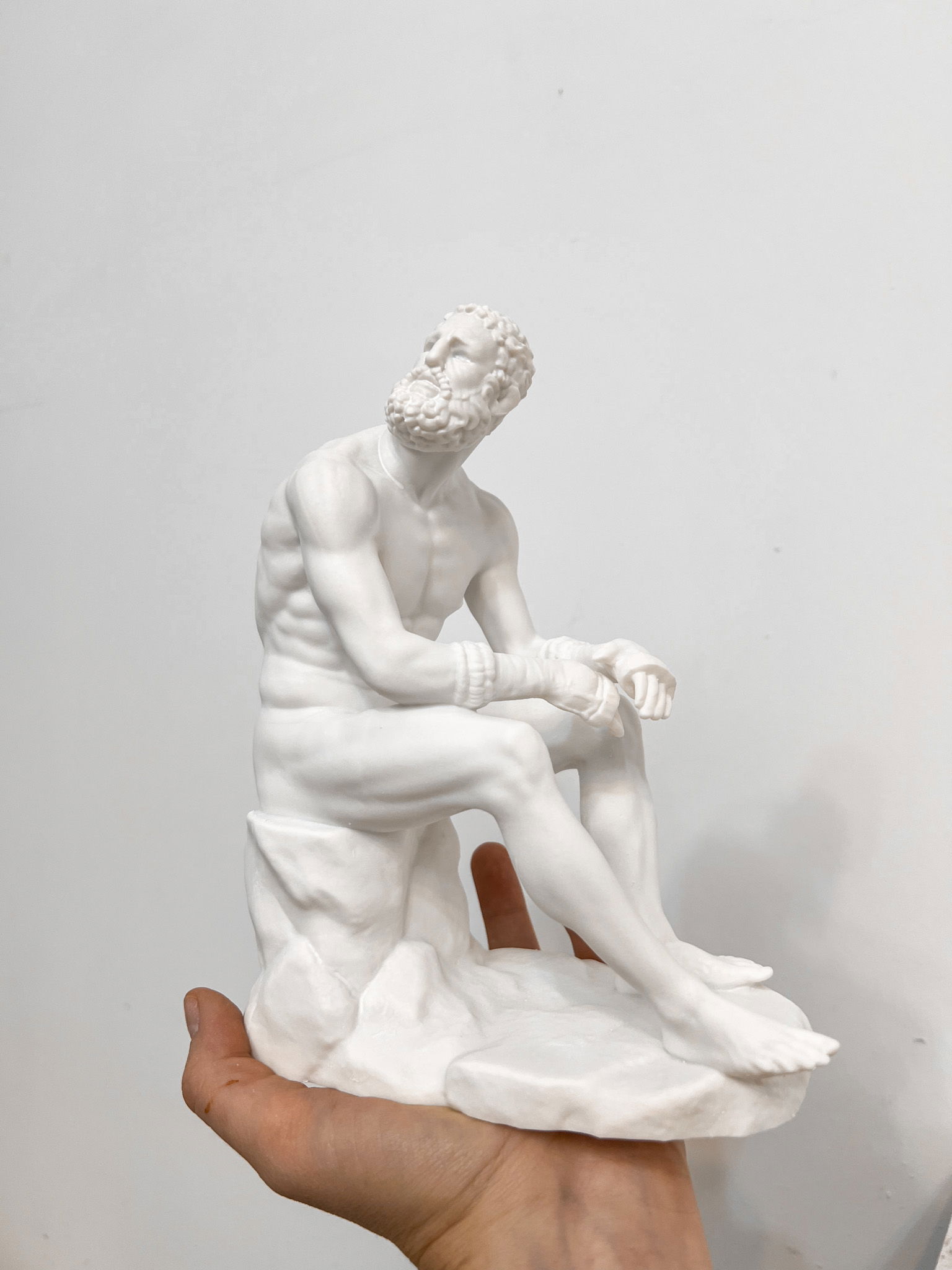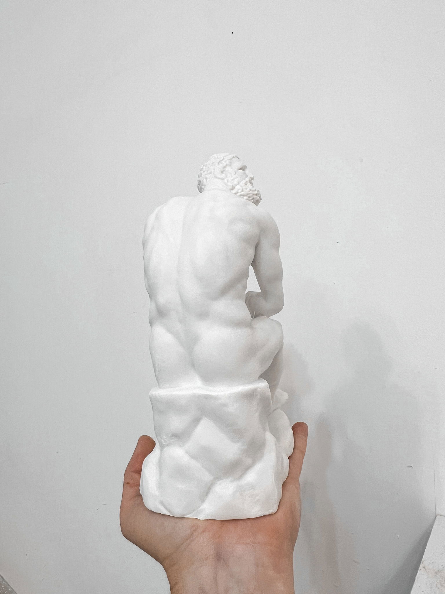 Cada pieza se imprime en 3D con resina UV, logrando una definición impecable en los detalles. Luego, la rellenamos para darle peso y estabilidad. Finalmente, la pintamos con aerosol para obtener un acabado mate que recuerda al concreto, como en nuestra colección general.