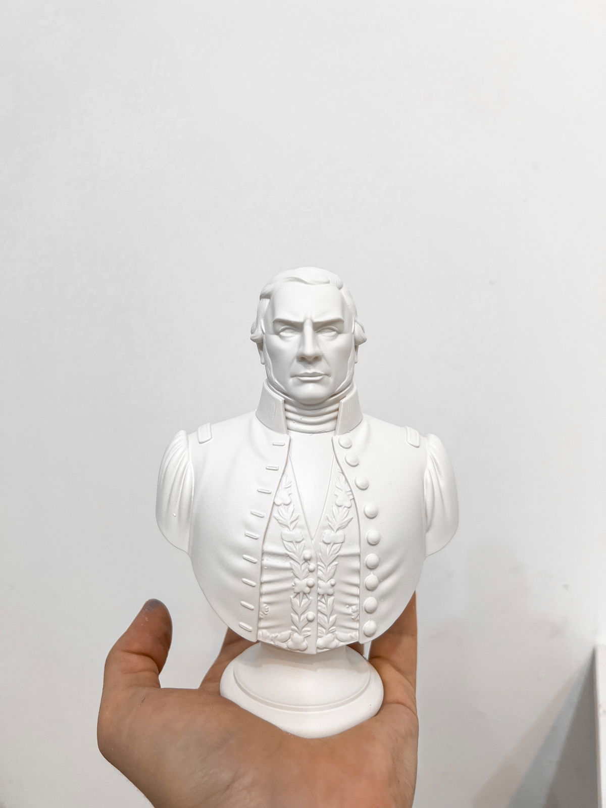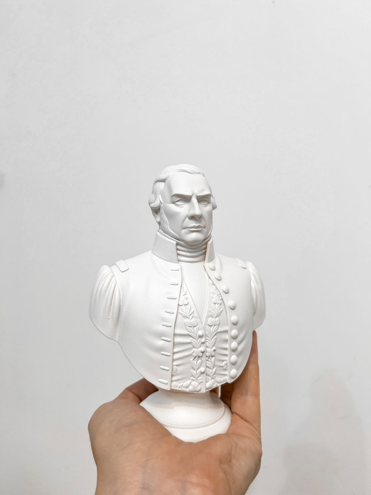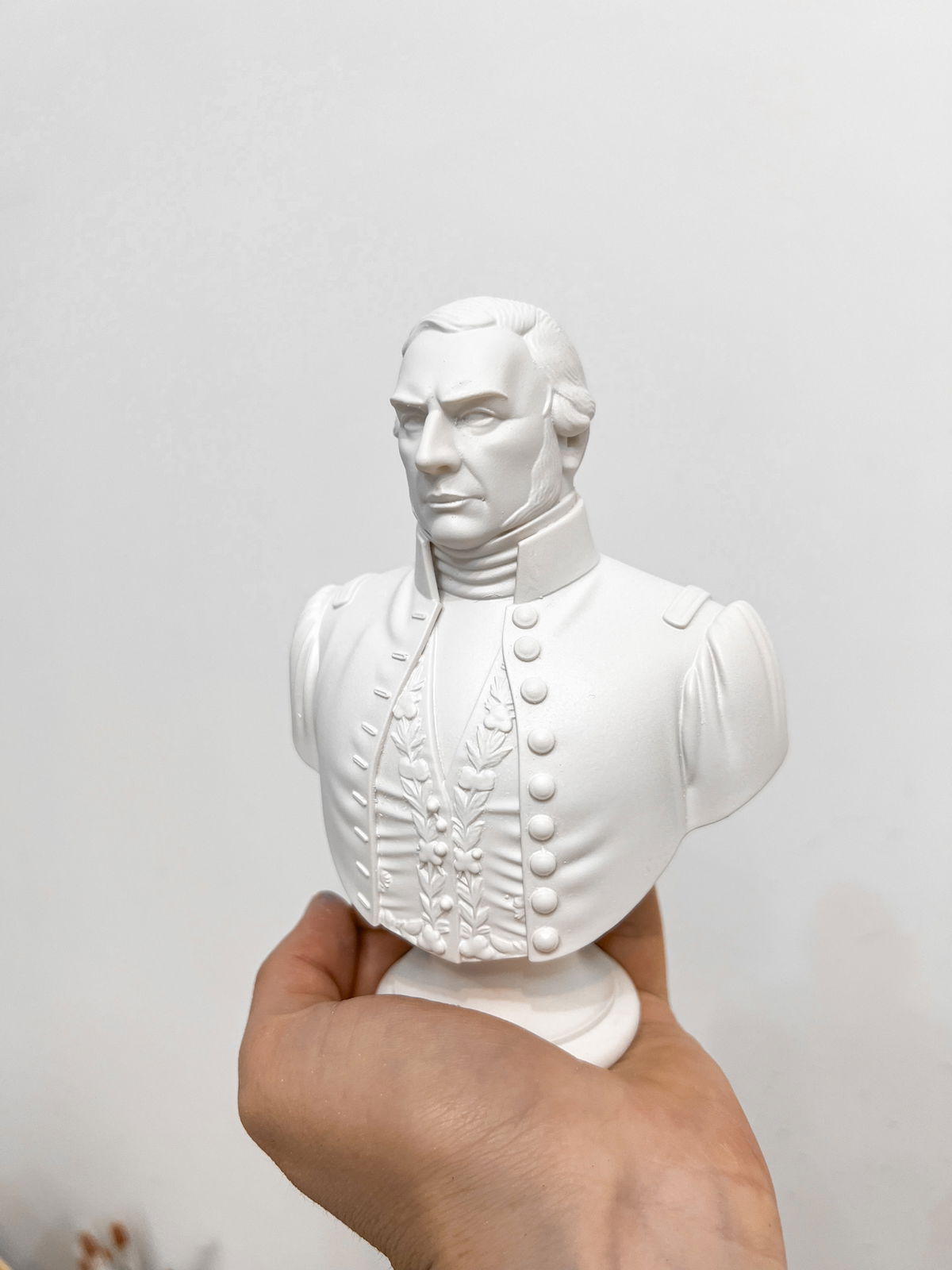 Cada pieza se imprime en 3D con resina UV, logrando una definición impecable en los detalles. Luego, la rellenamos para darle peso y estabilidad. Finalmente, la pintamos con aerosol para obtener un acabado mate que recuerda al concreto, como en nuestra colección general.