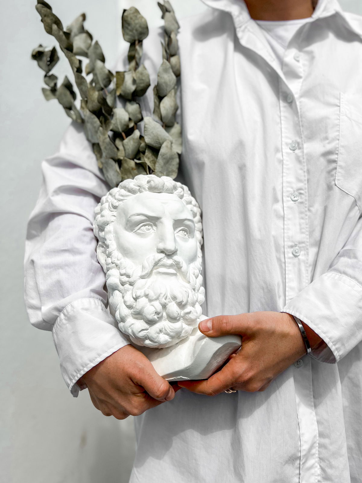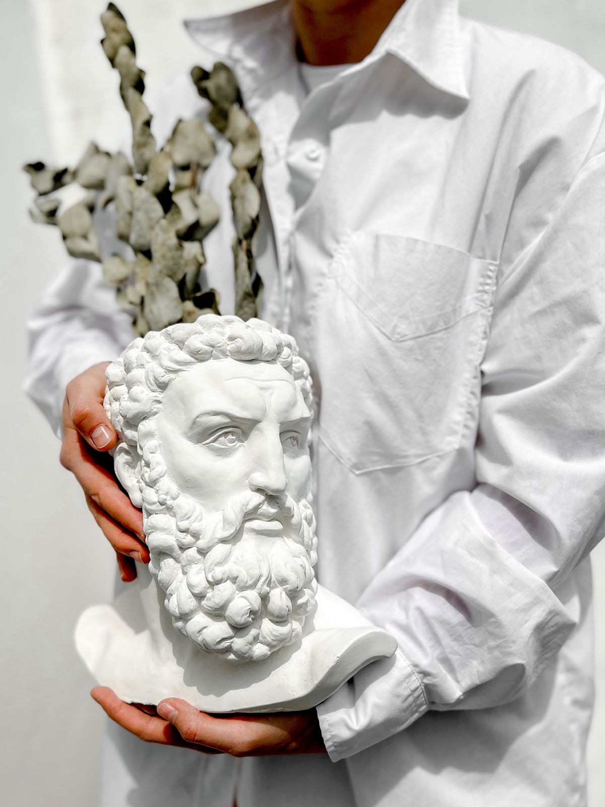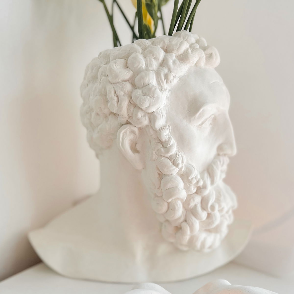 Un contenedor con forma de la cabeza de Hércules que combina la robustez del arte clásico con la funcionalidad de un florero o maceta — ideal para plantas, flores o como objeto decorativo con personalidad histórica.