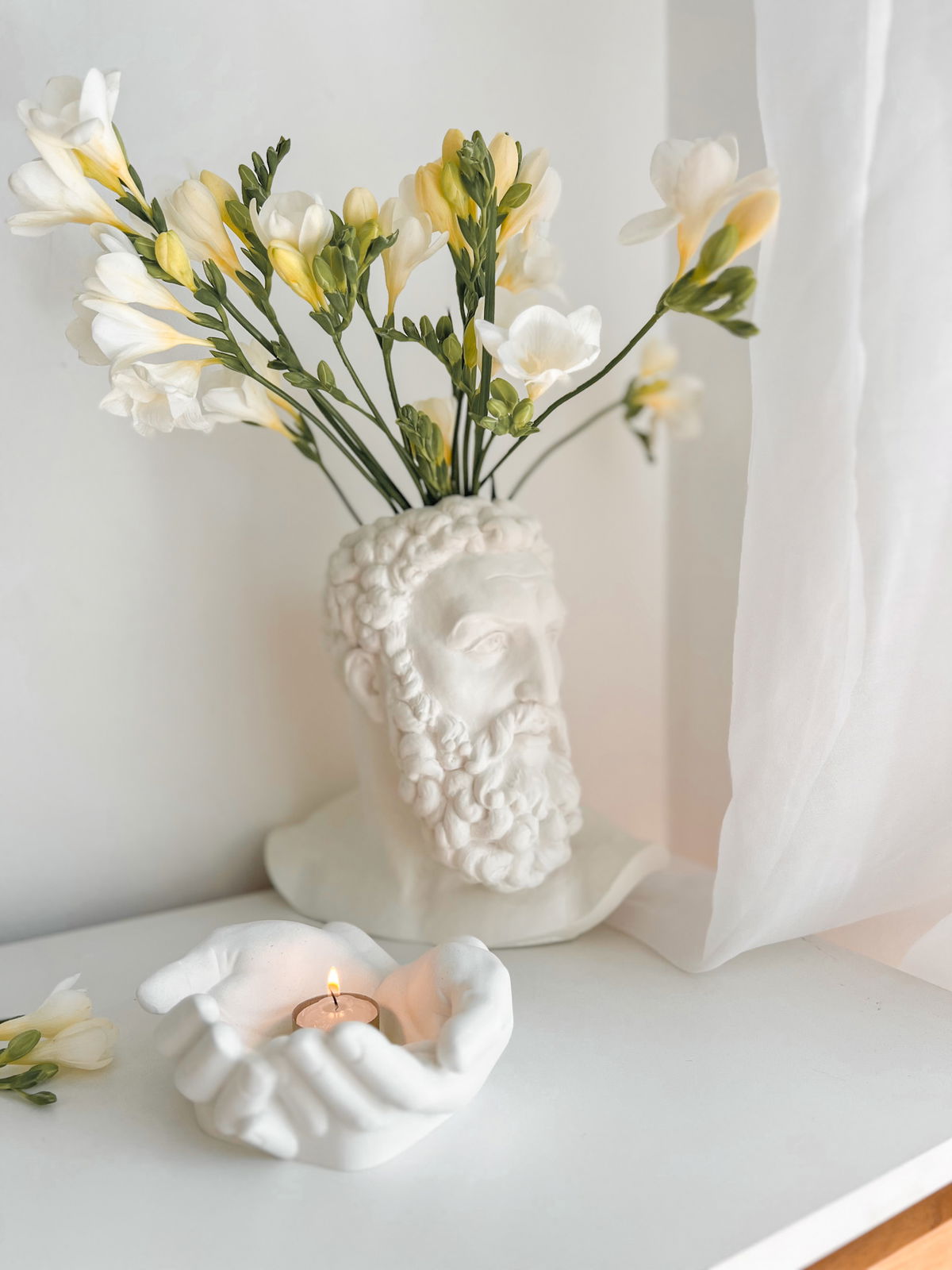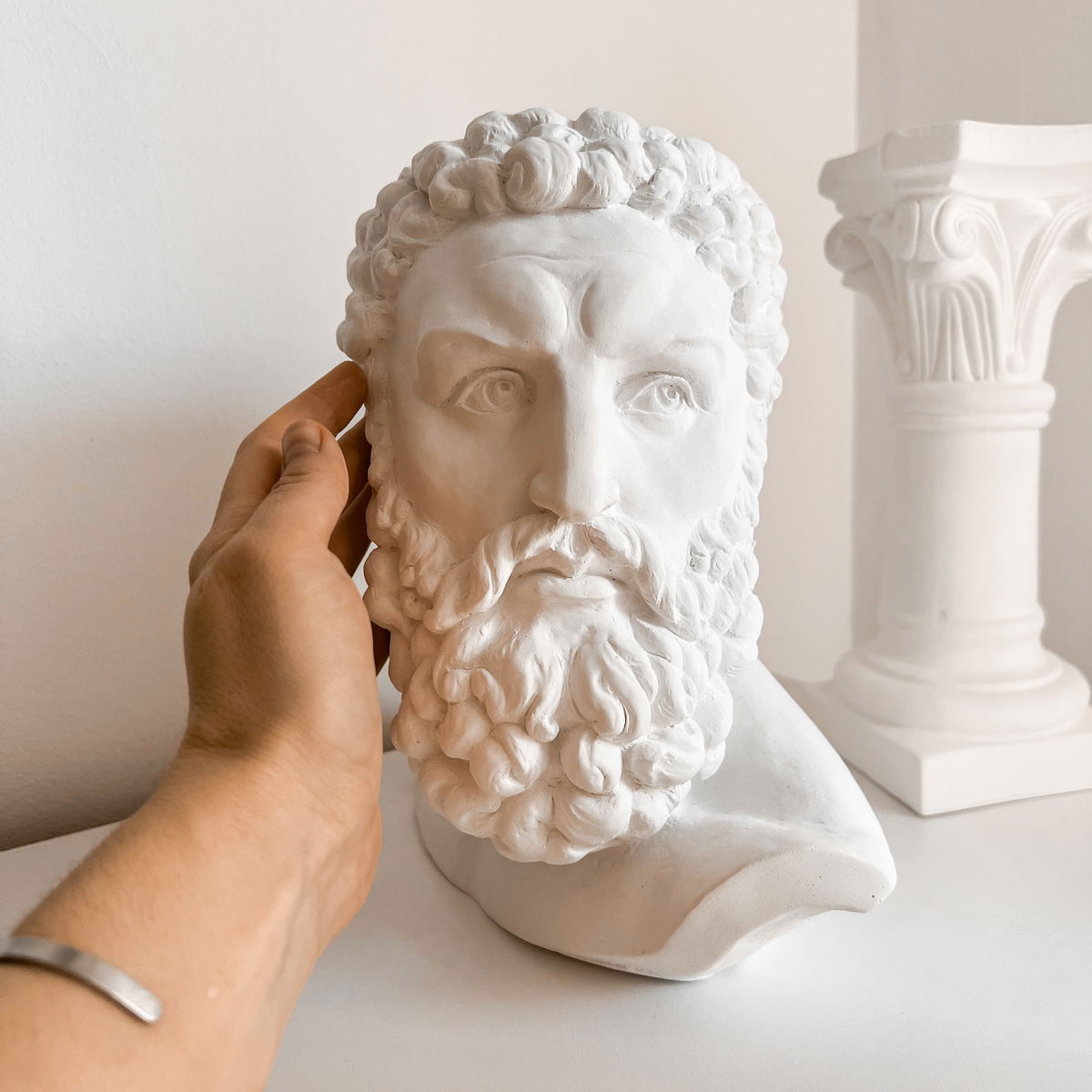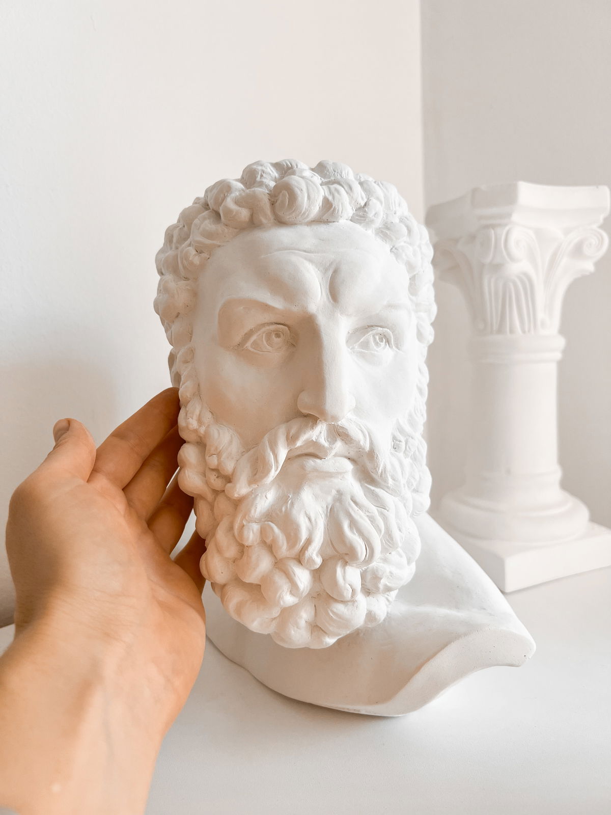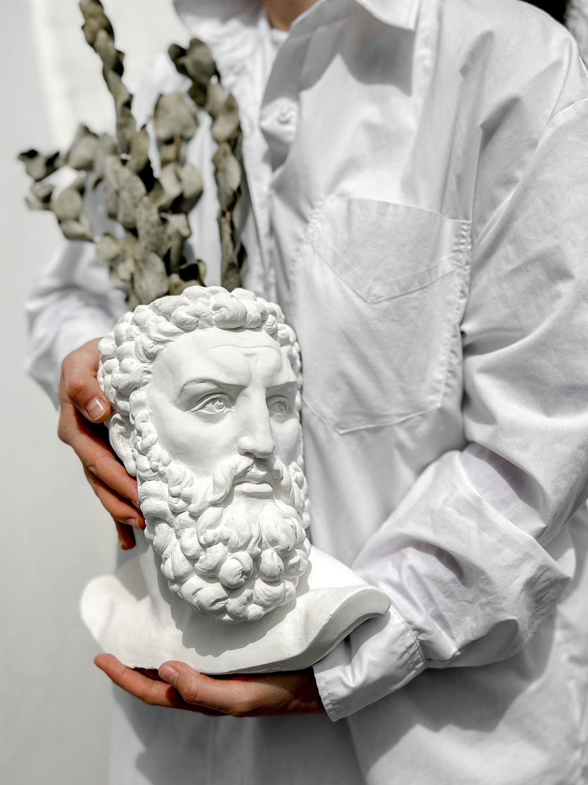 Un contenedor con forma de la cabeza de Hércules que combina la robustez del arte clásico con la funcionalidad de un florero o maceta — ideal para plantas, flores o como objeto decorativo con personalidad histórica.