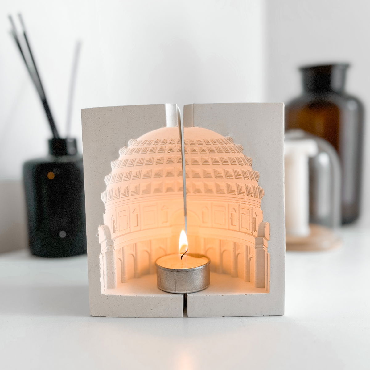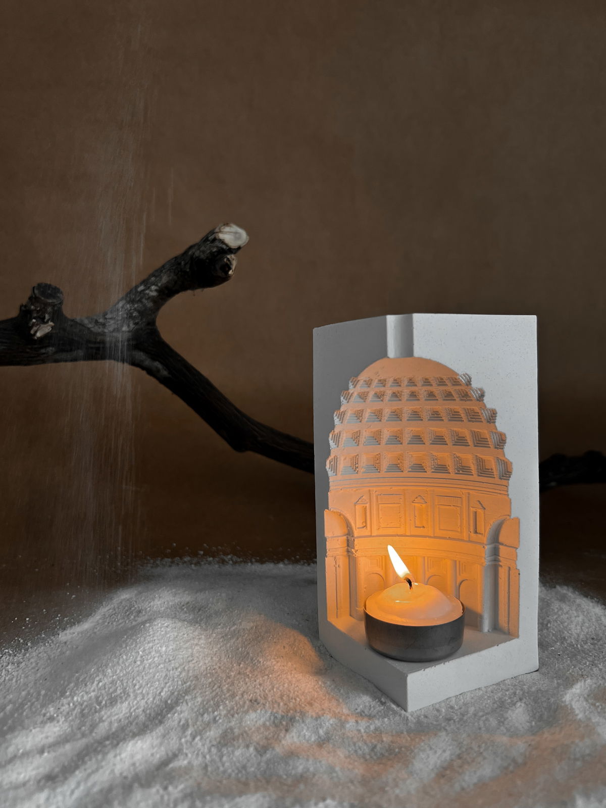 Una pieza sobria y escultórica que evoca armonía, simetría y solidez, reinterpretada como objeto decorativo contemporáneo.