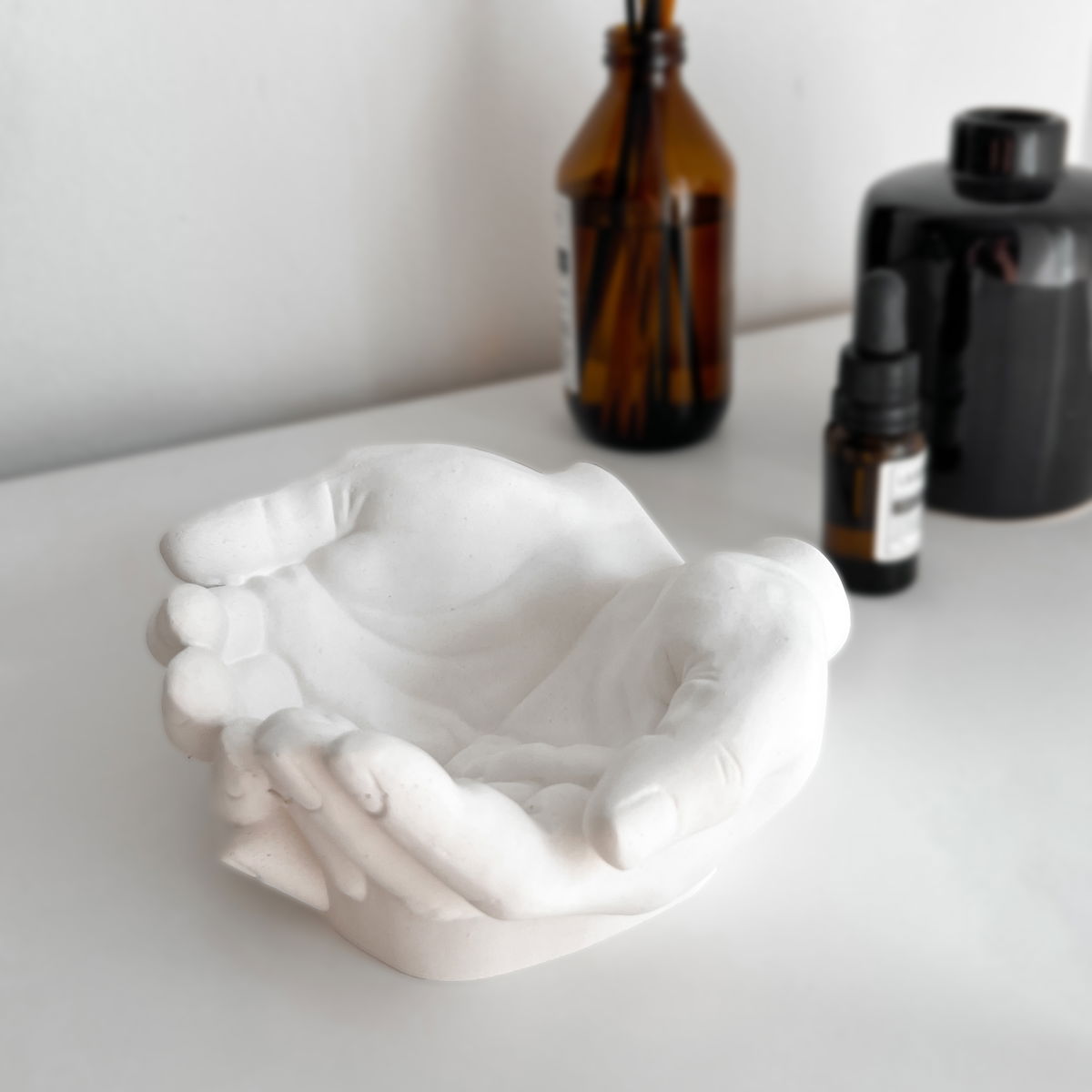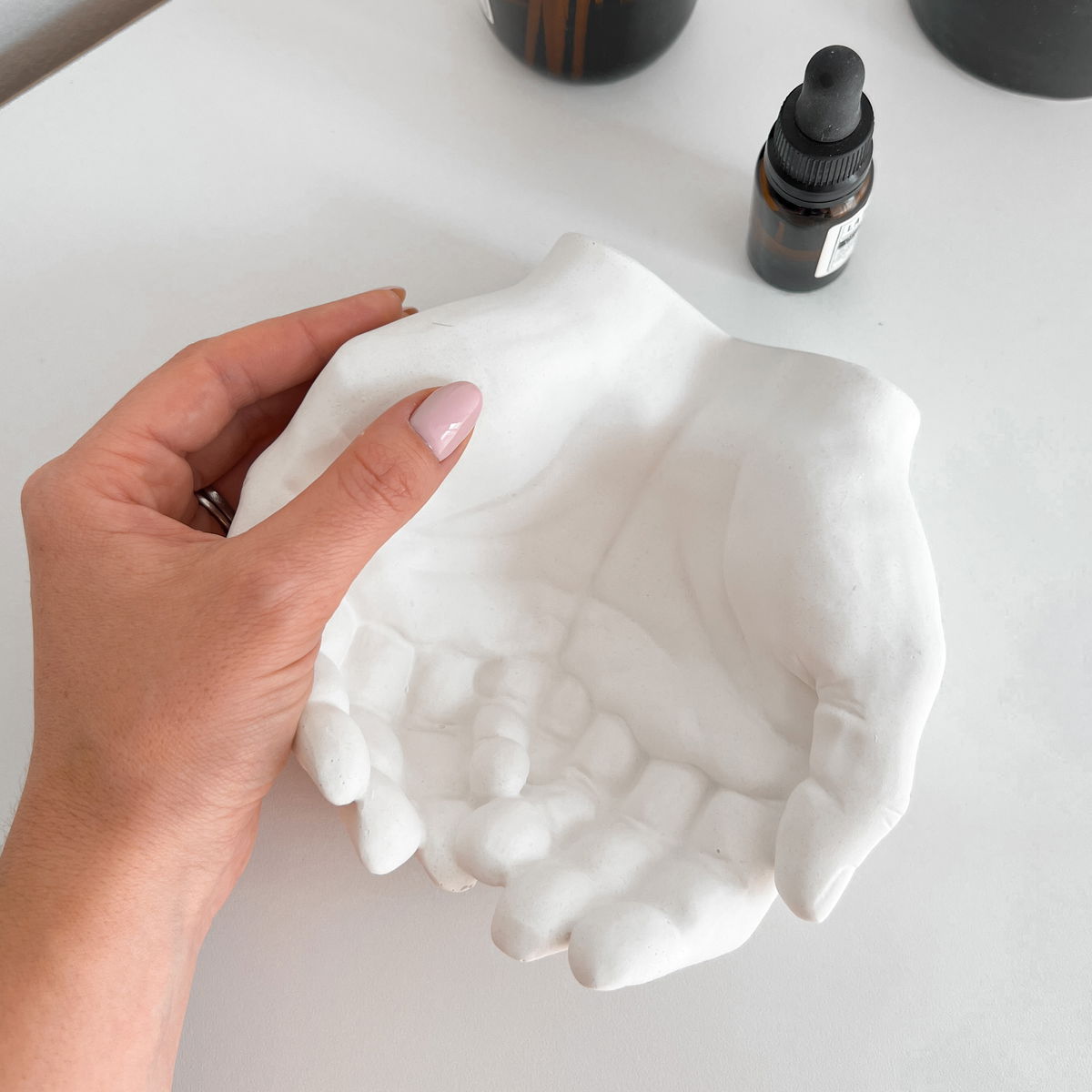 Sus formas abiertas permiten sostener pequeños objetos o simplemente descansar vacía como elemento decorativo.