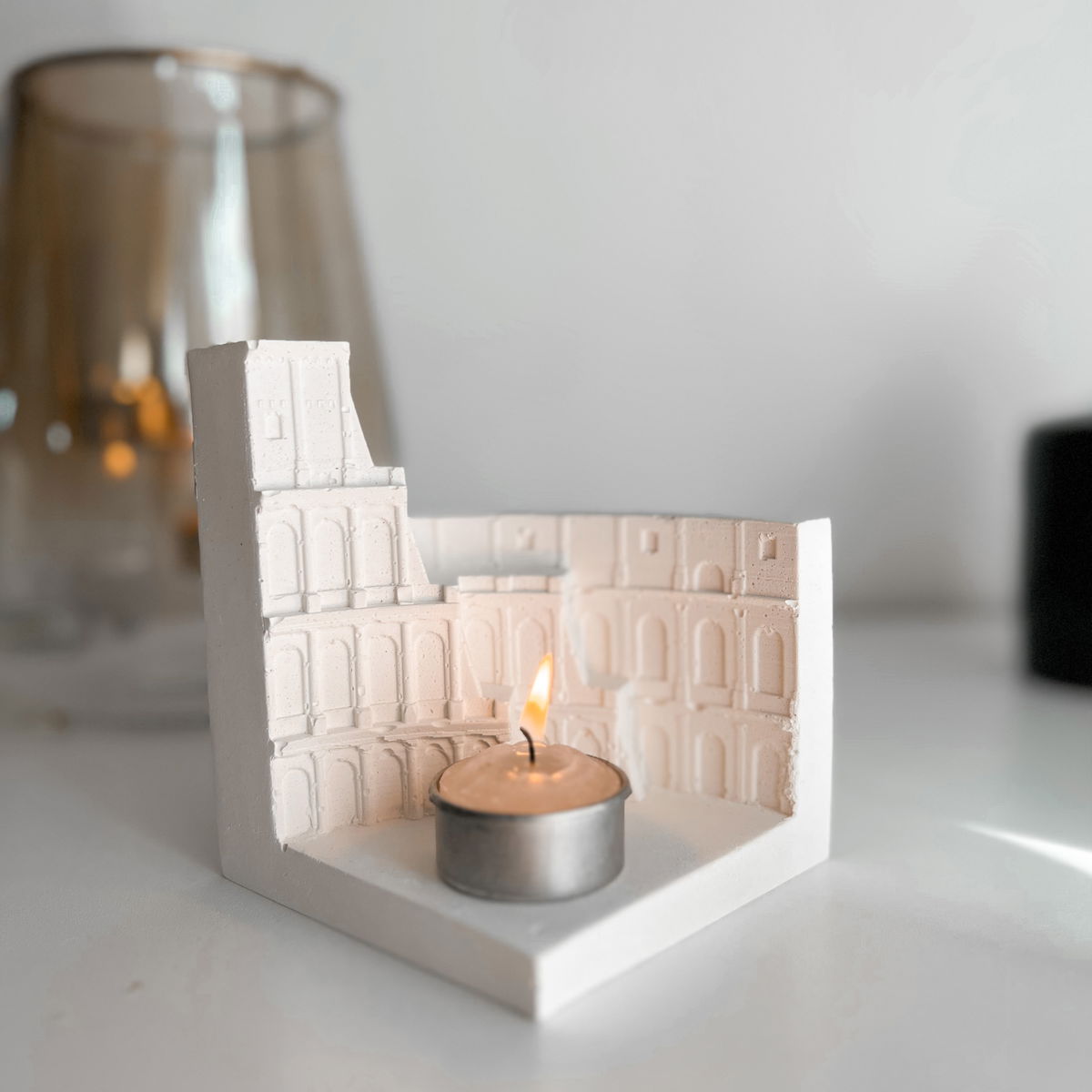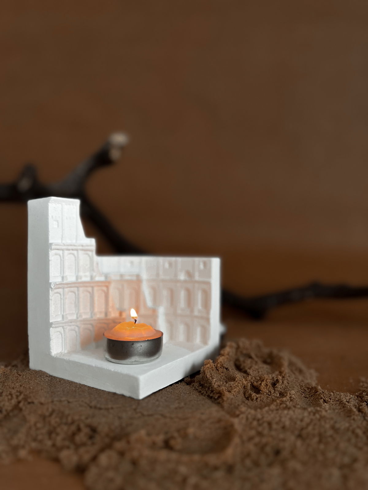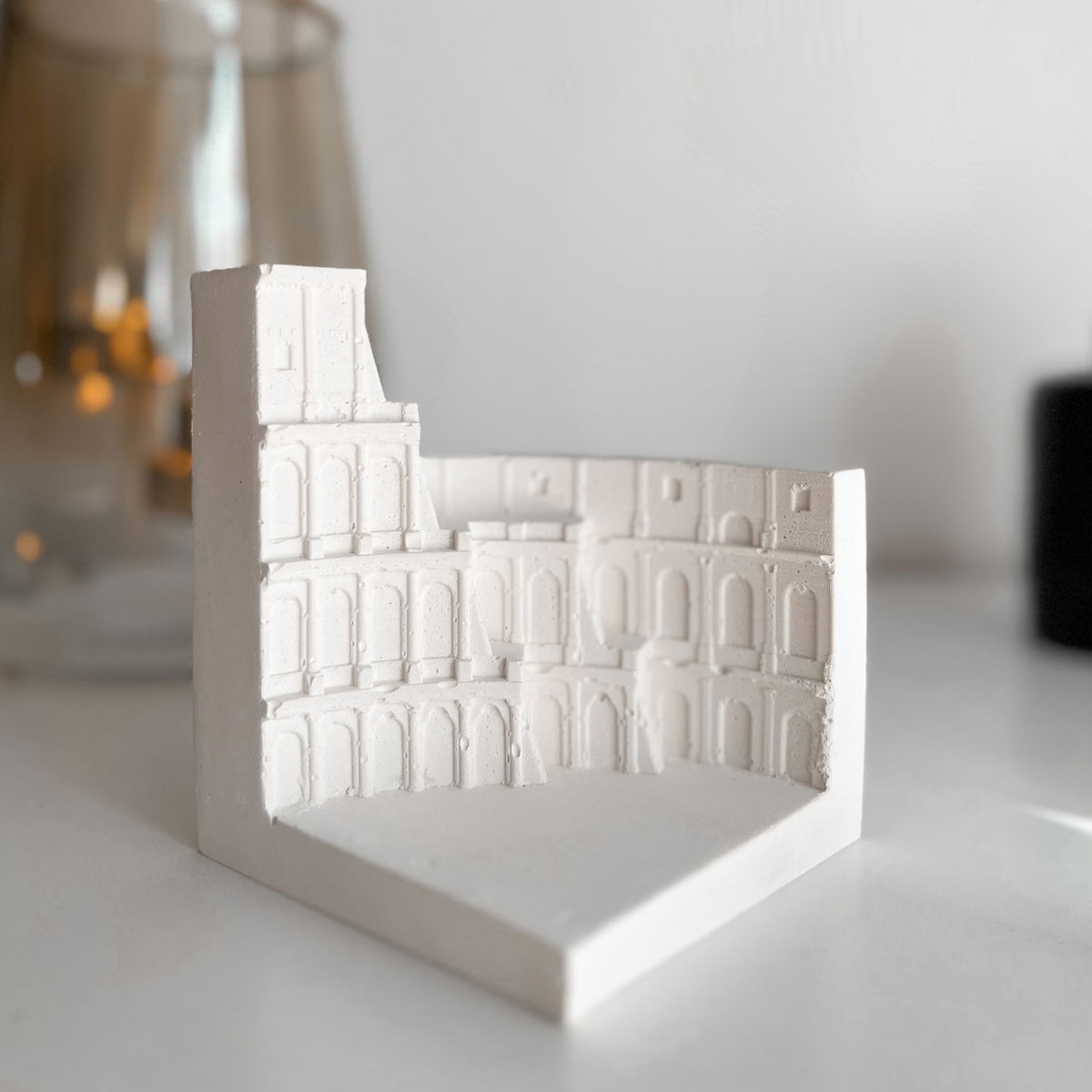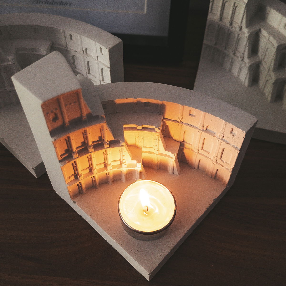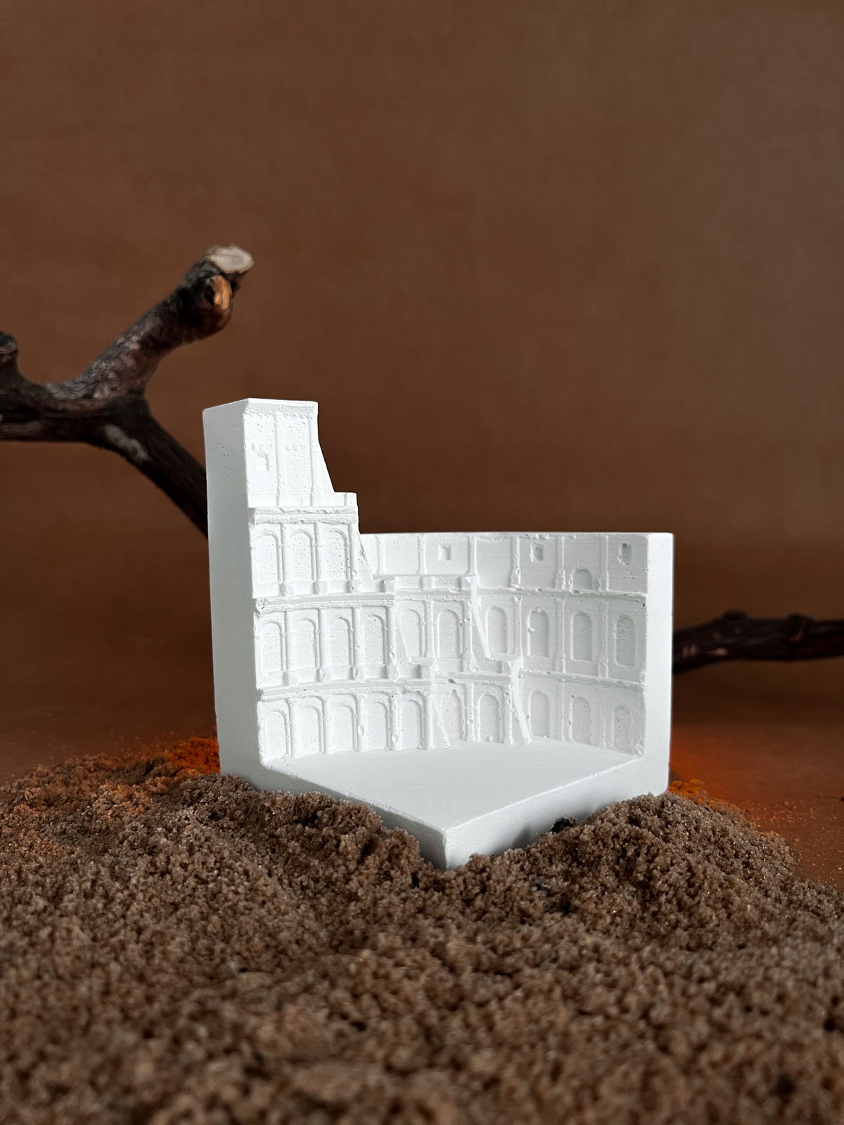 Una reproducción sobria que evoca la grandeza y la presencia del Coliseo como símbolo de la historia clásica.