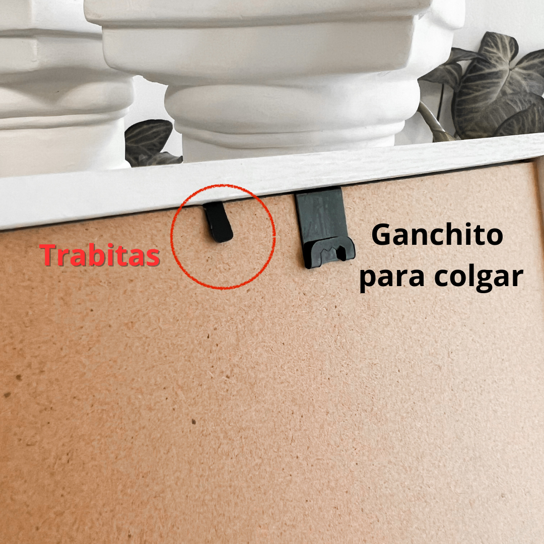 Montaje: incluye ganchito para colgar y patita para apoyar