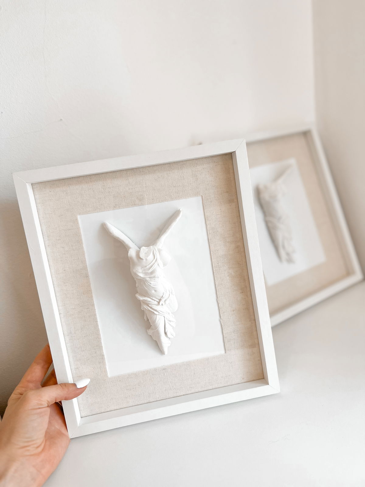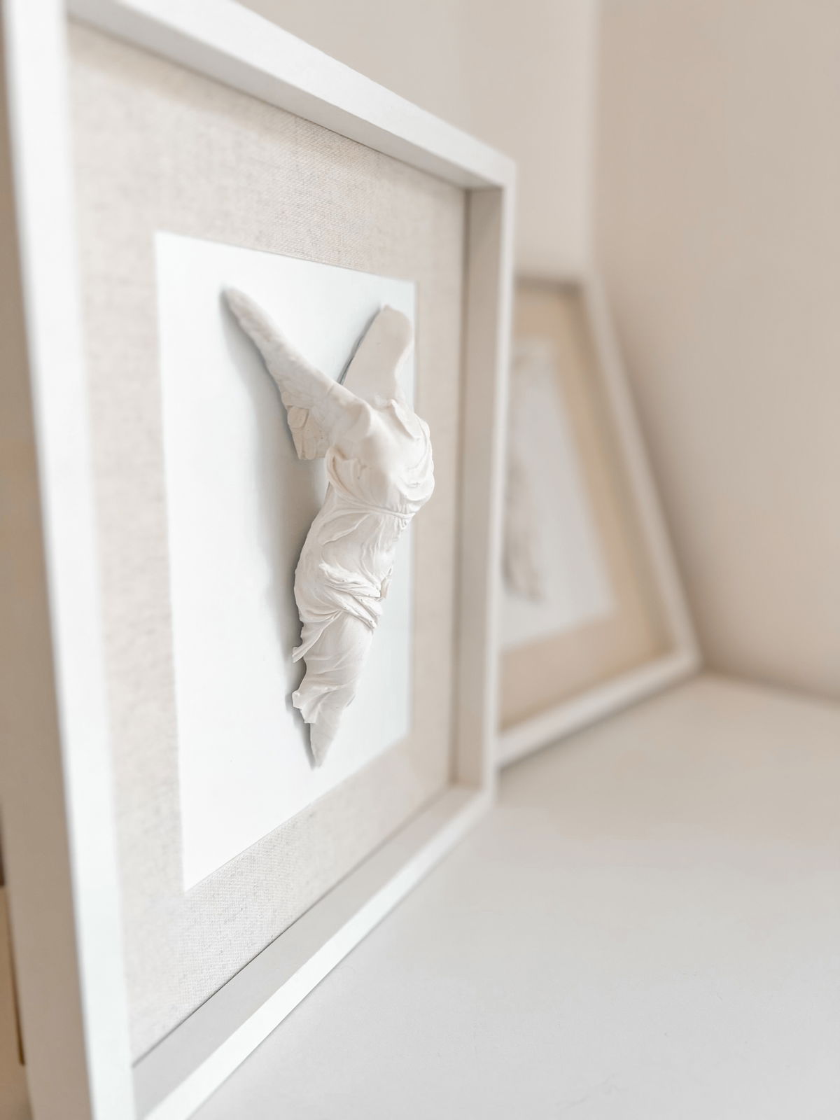 Si deseas usar los cuadros sin fondo, como se muestra en la última foto, puedes quitar la tapa, ajustar las trabas y dejarlos sin el fondo. En este caso, no se pueden colgar, solo apoyar contra la pared.
