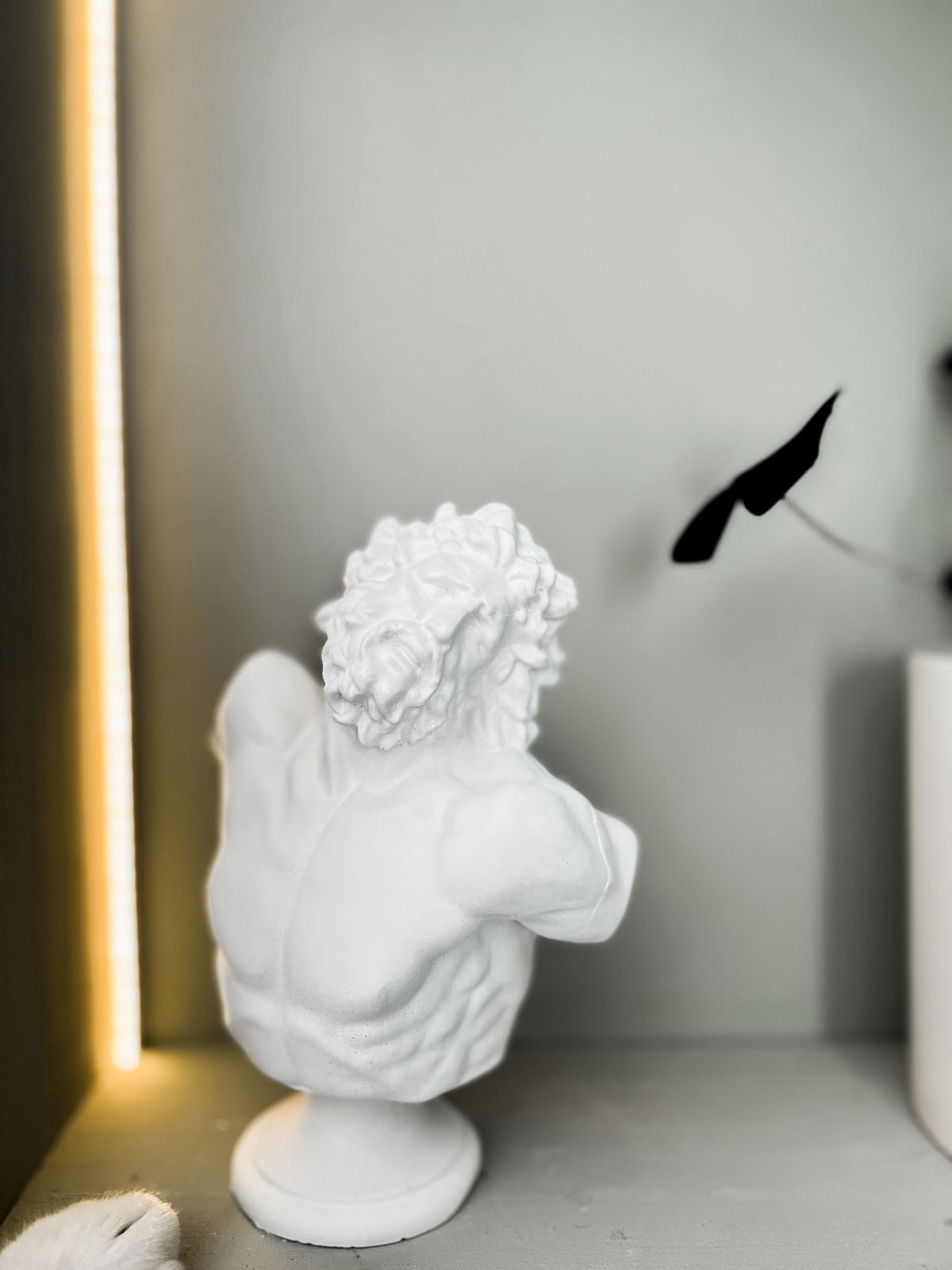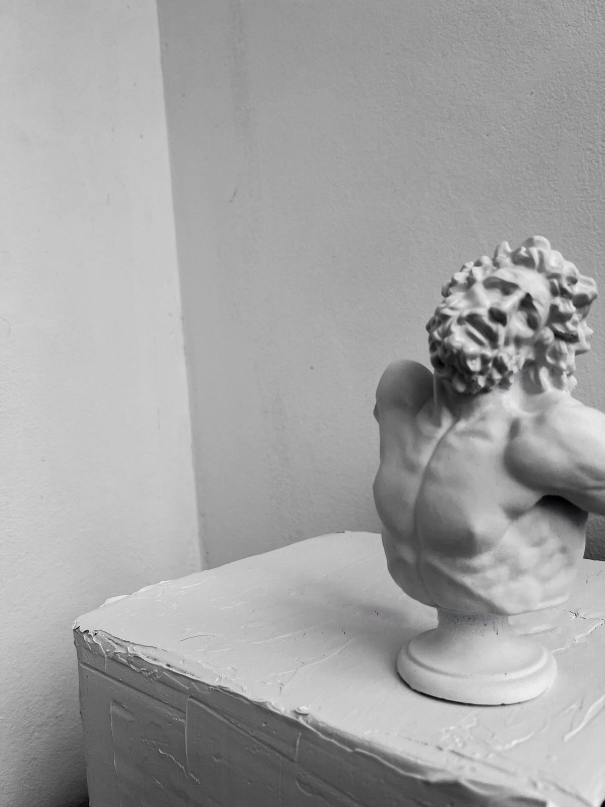 Inspirado en la escultura clásica Laocoonte y sus hijos, que captura la agonía y la fuerza contenida de la figura central.