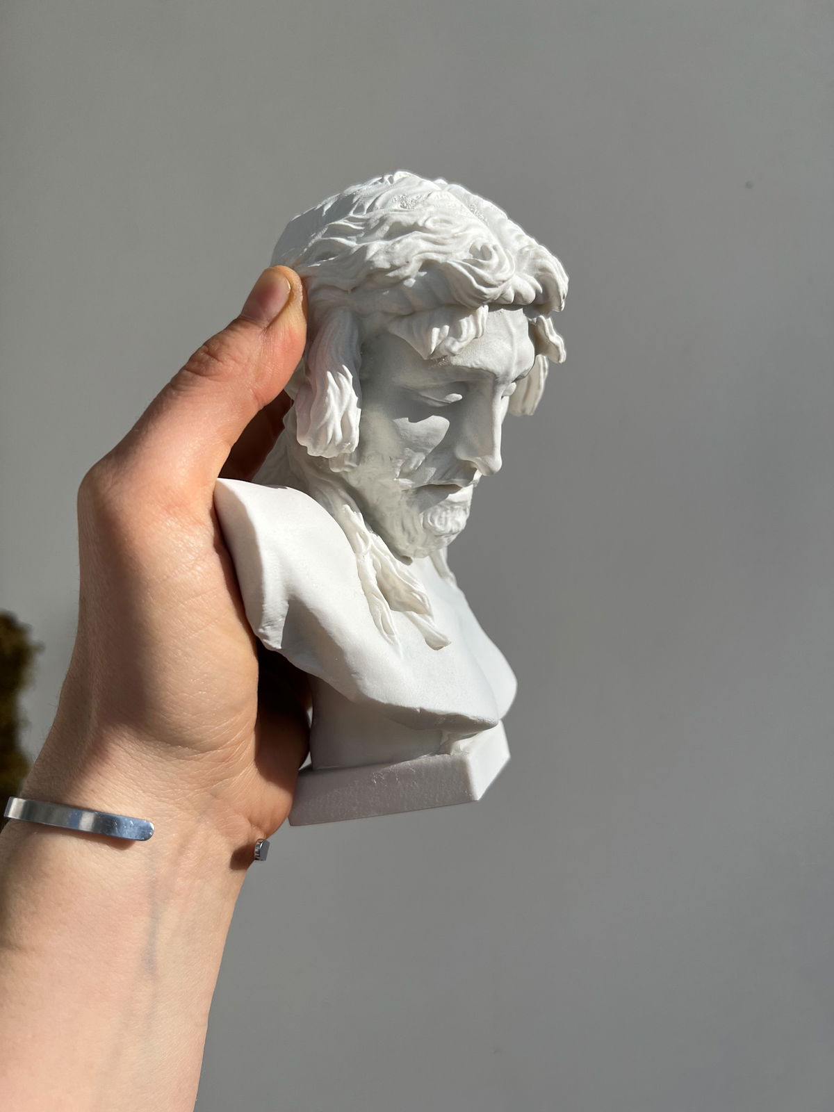 Cada pieza se imprime en 3D con resina UV, logrando una definición impecable en los detalles. Luego, la rellenamos para darle peso y estabilidad. Finalmente, la pintamos con aerosol para obtener un acabado mate que recuerda al concreto, como en nuestra colección general.