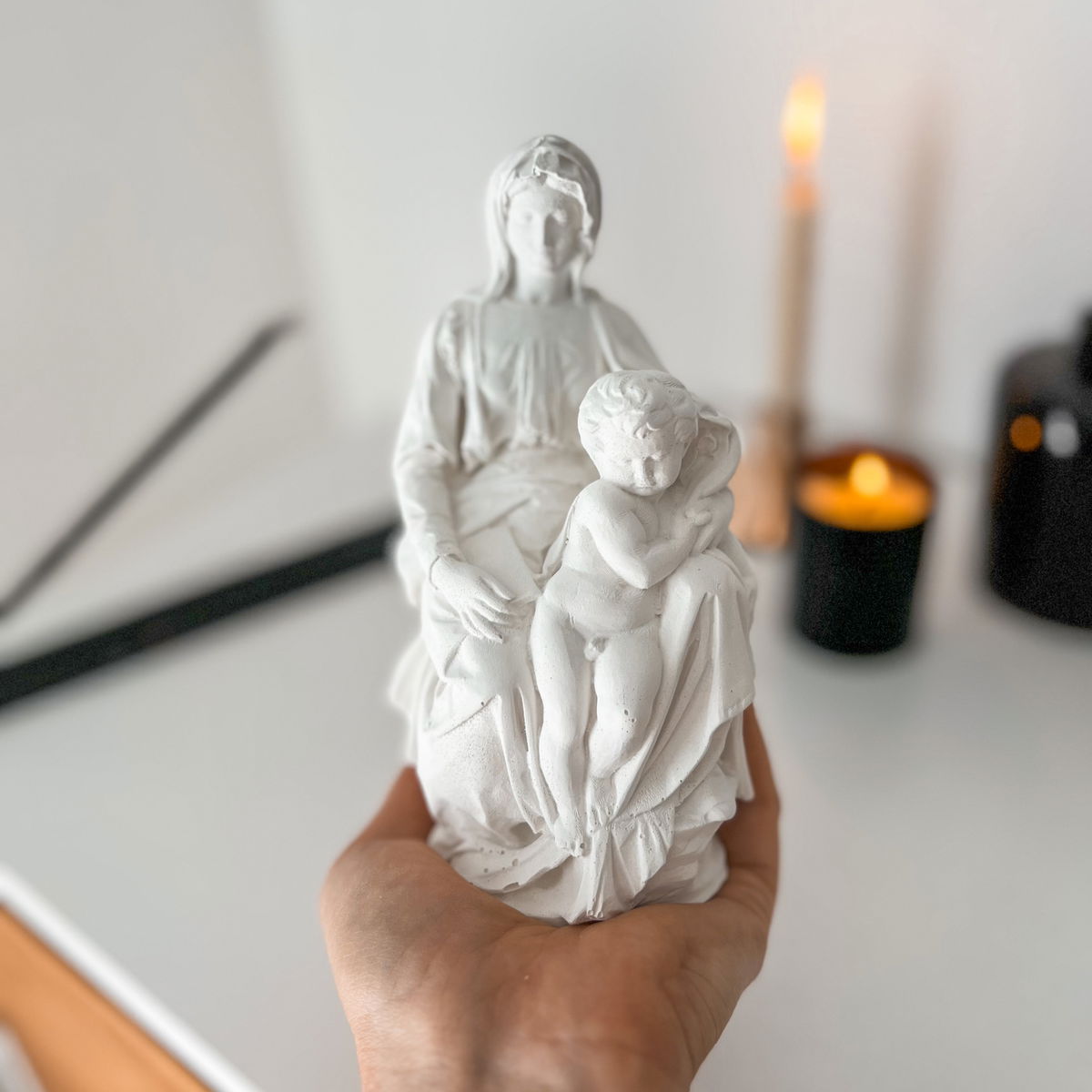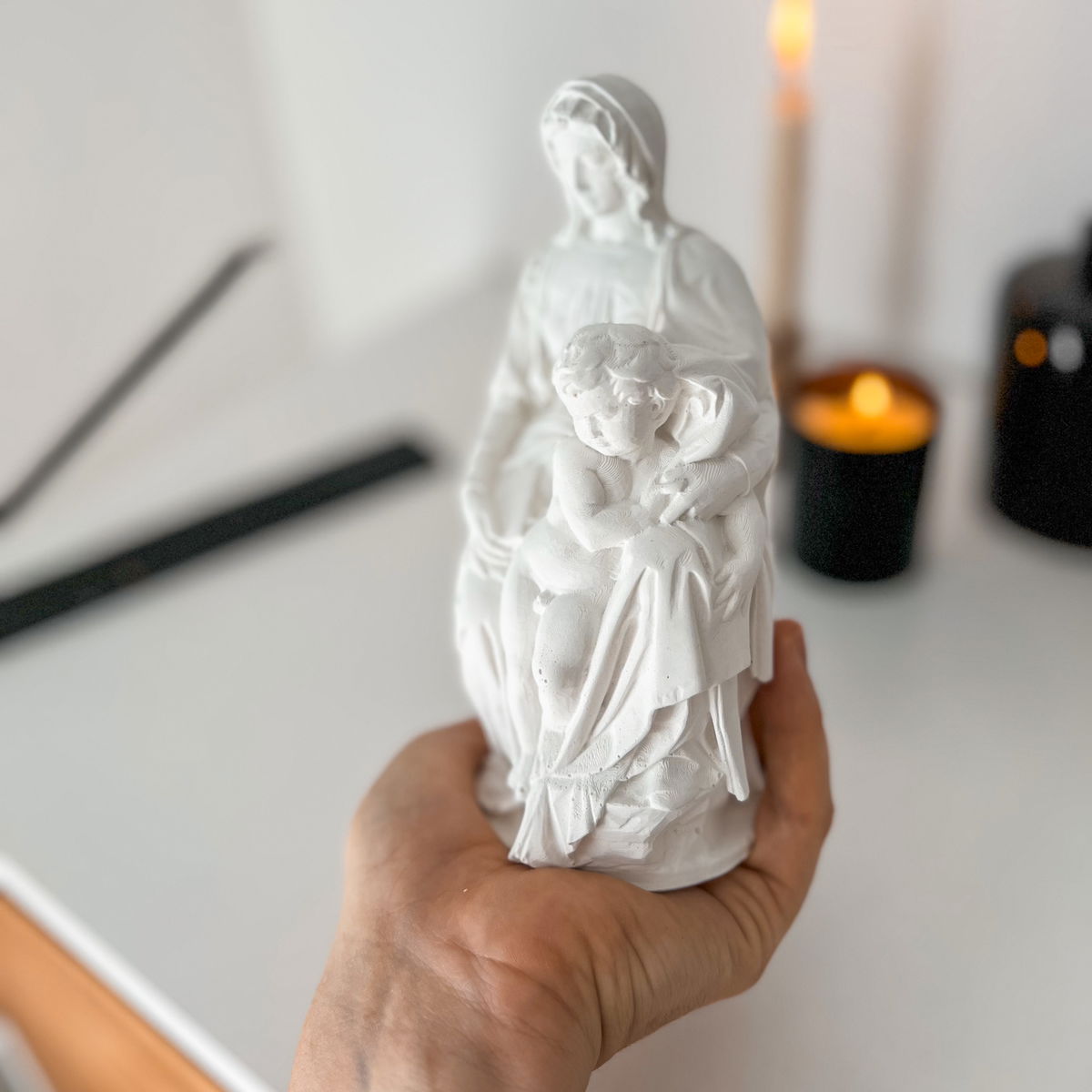 Una miniatura elegante inspirada en la icónica obra renacentista, ideal para agregar un aire de historia y serenidad a estantes, mesas o espacios con estilo.