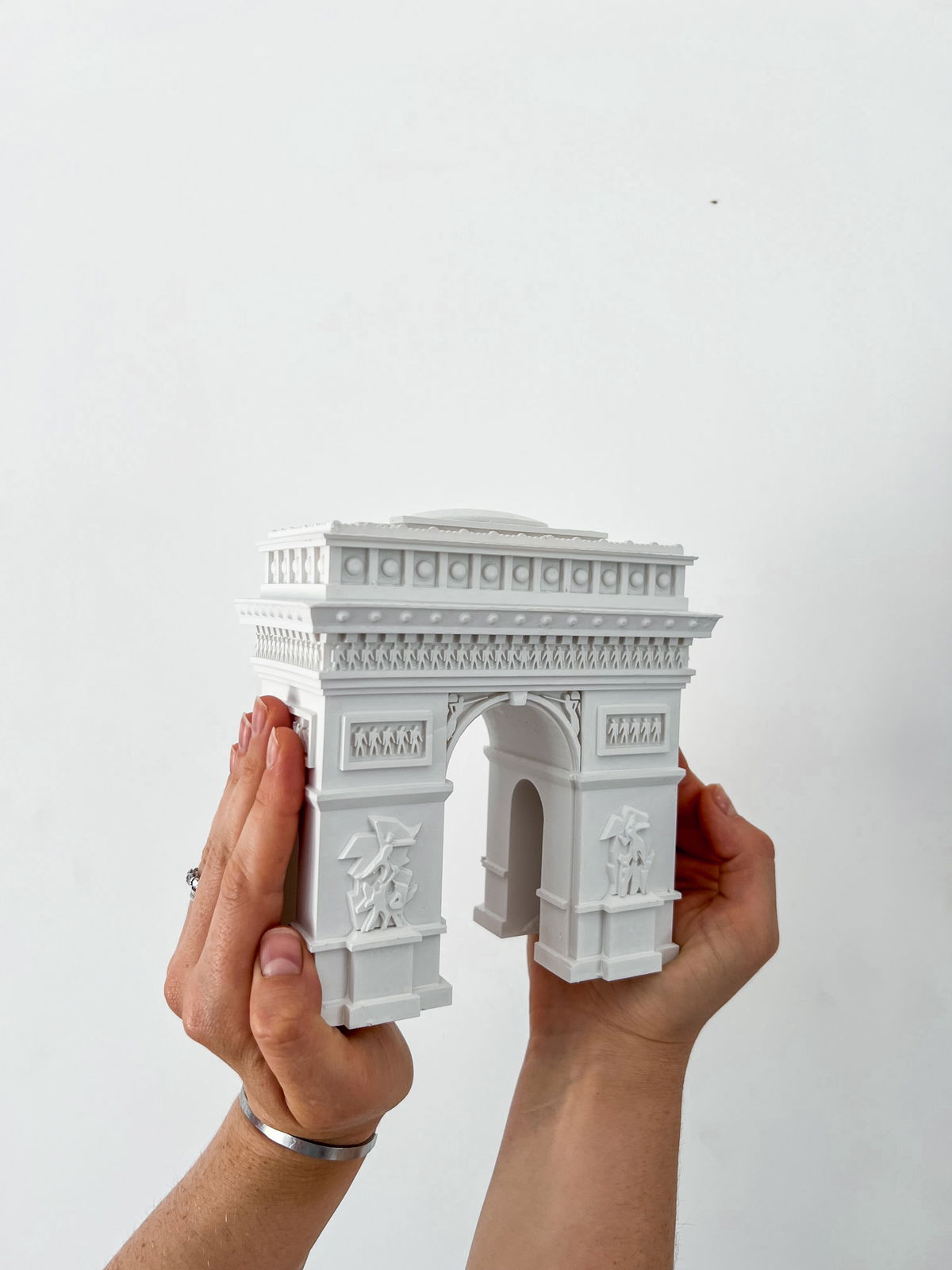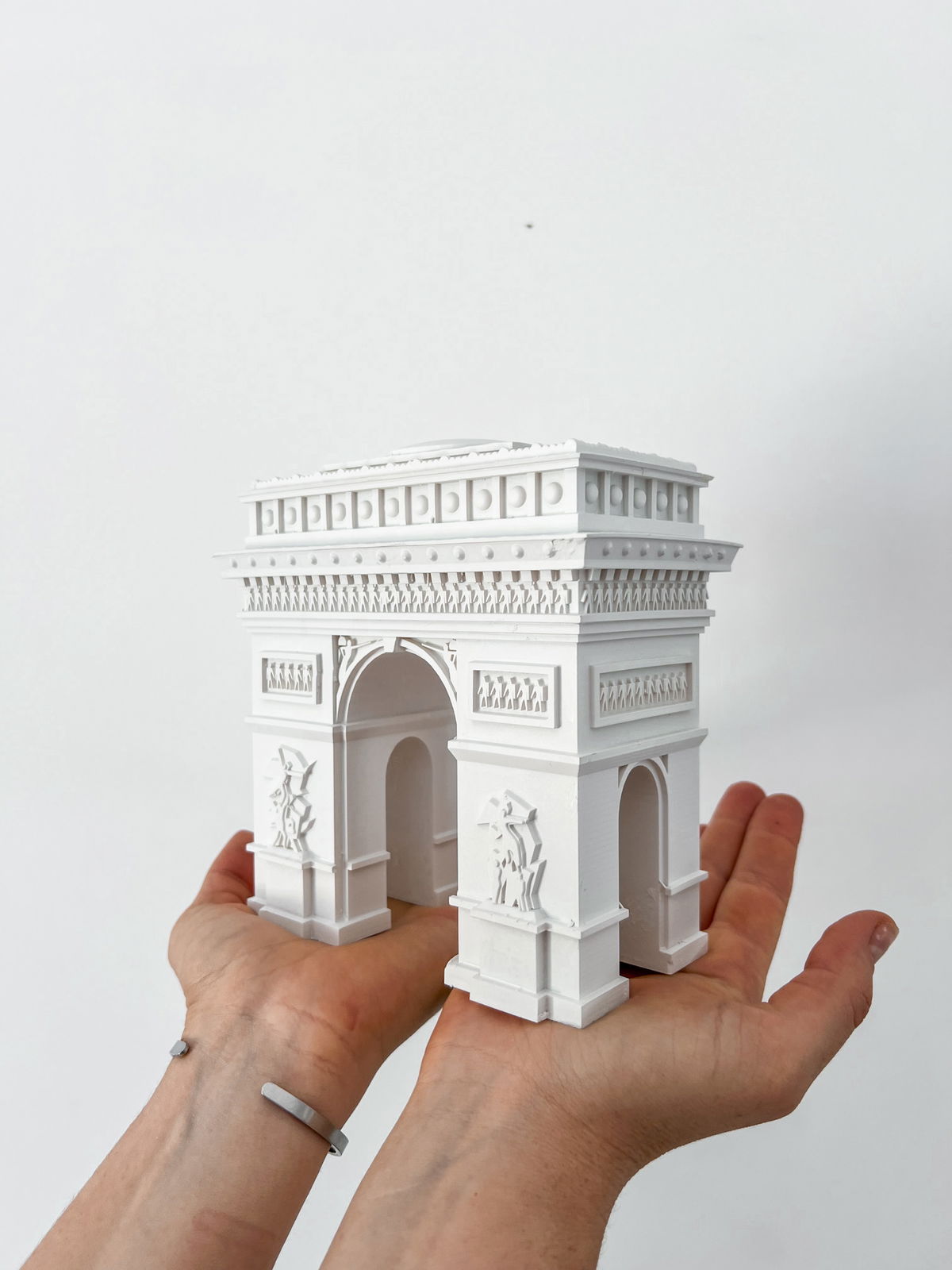 Cada pieza se imprime en 3D con resina UV, logrando una definición impecable en los detalles. Luego, la rellenamos para darle peso y estabilidad. Finalmente, la pintamos con aerosol para obtener un acabado mate que recuerda al concreto, como en nuestra colección general.