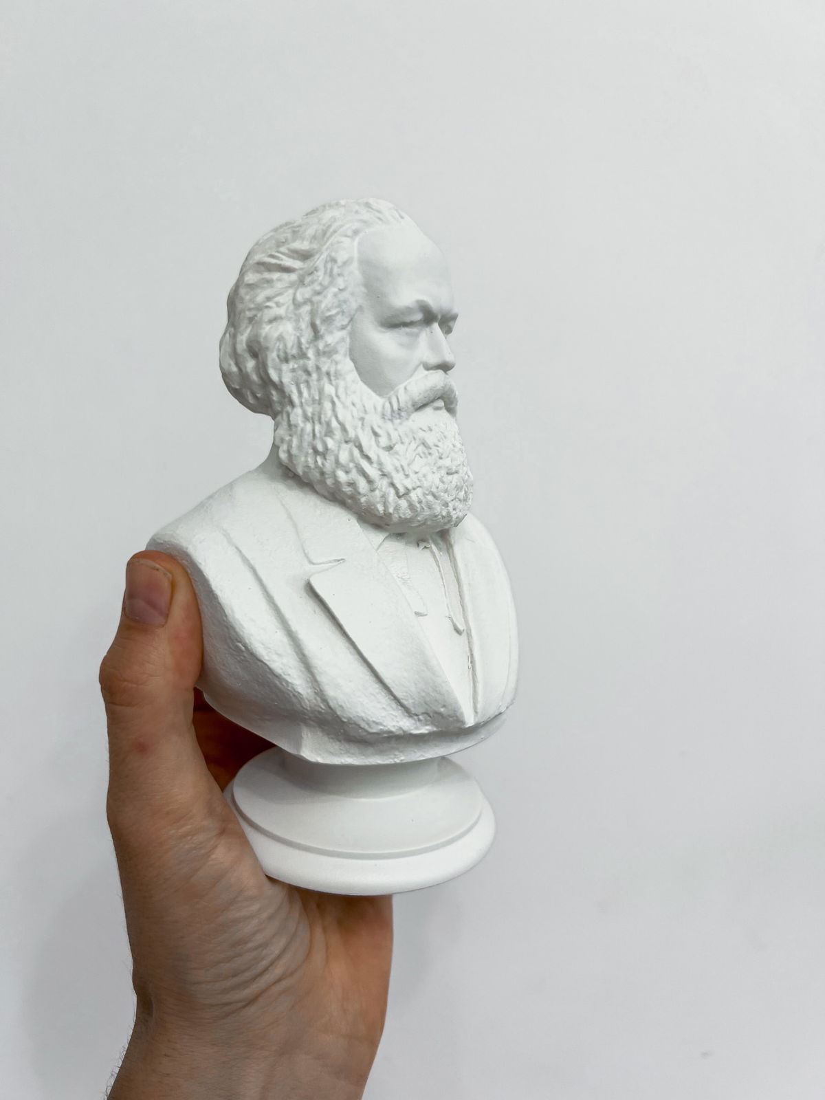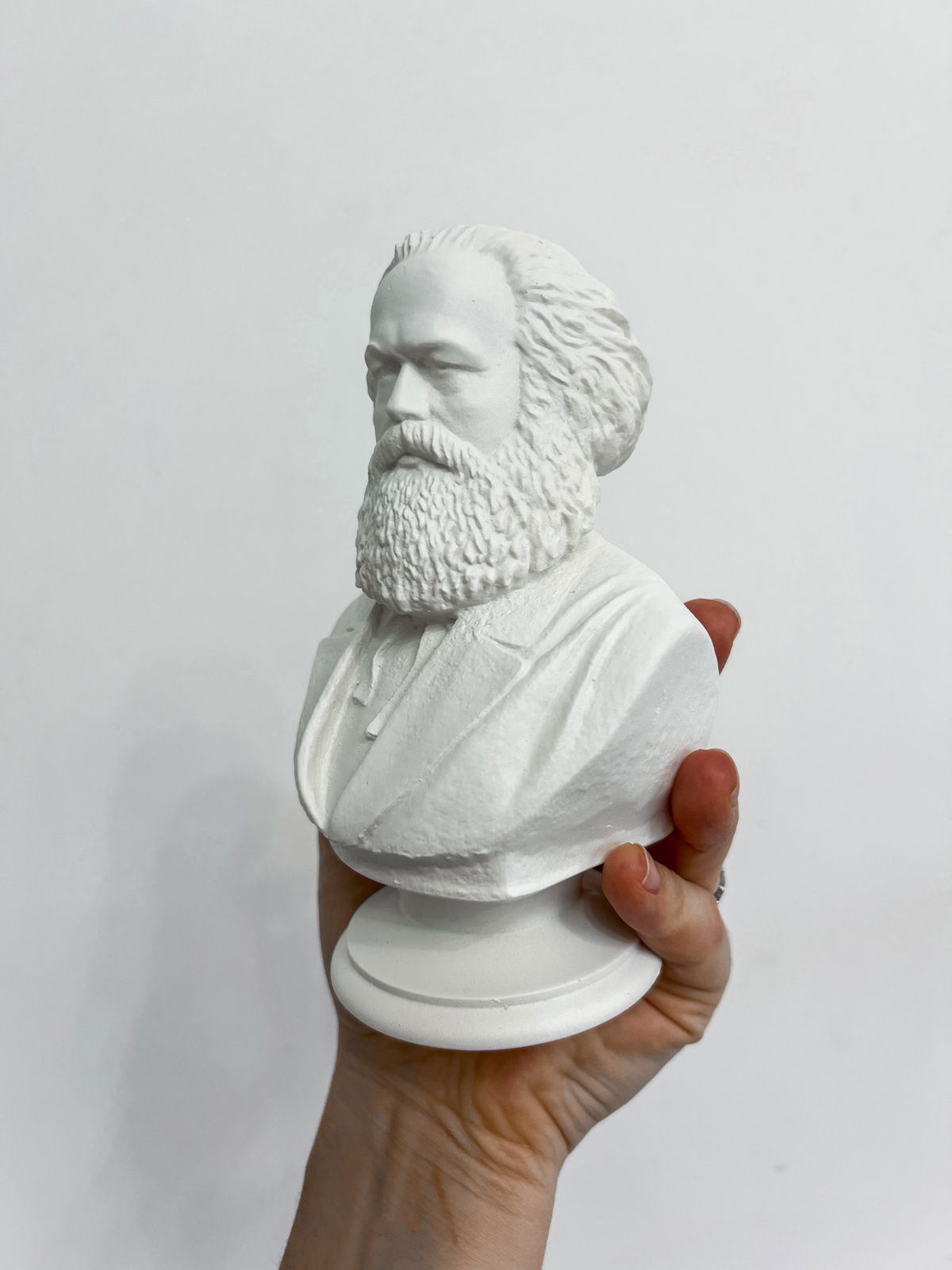 Cada pieza se imprime en 3D con resina UV, logrando una definición impecable en los detalles. Luego, la rellenamos para darle peso y estabilidad. Finalmente, la pintamos con aerosol para obtener un acabado mate que recuerda al concreto, como en nuestra colección general.