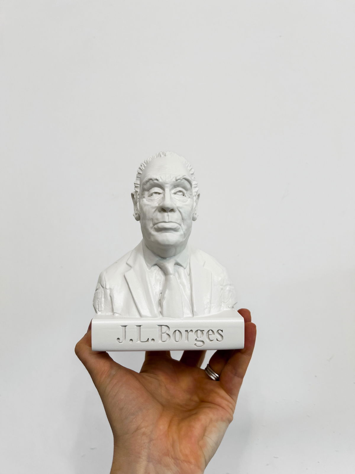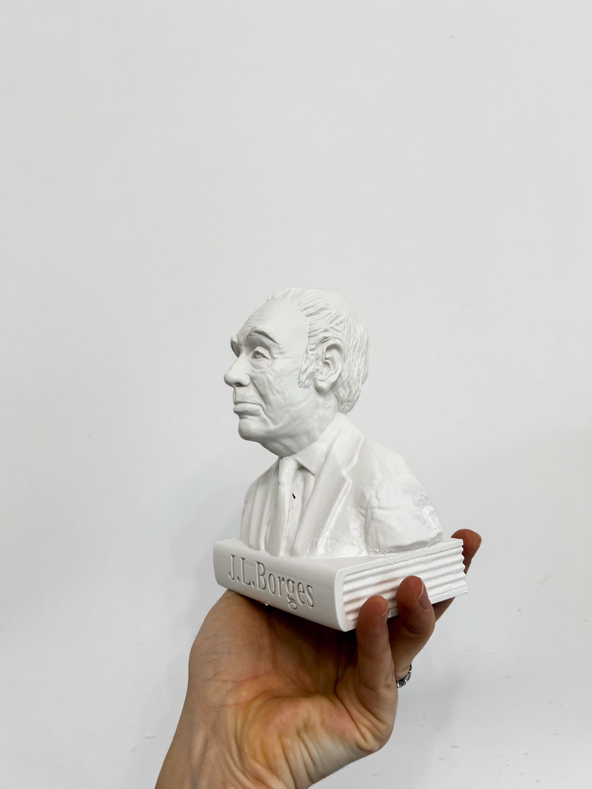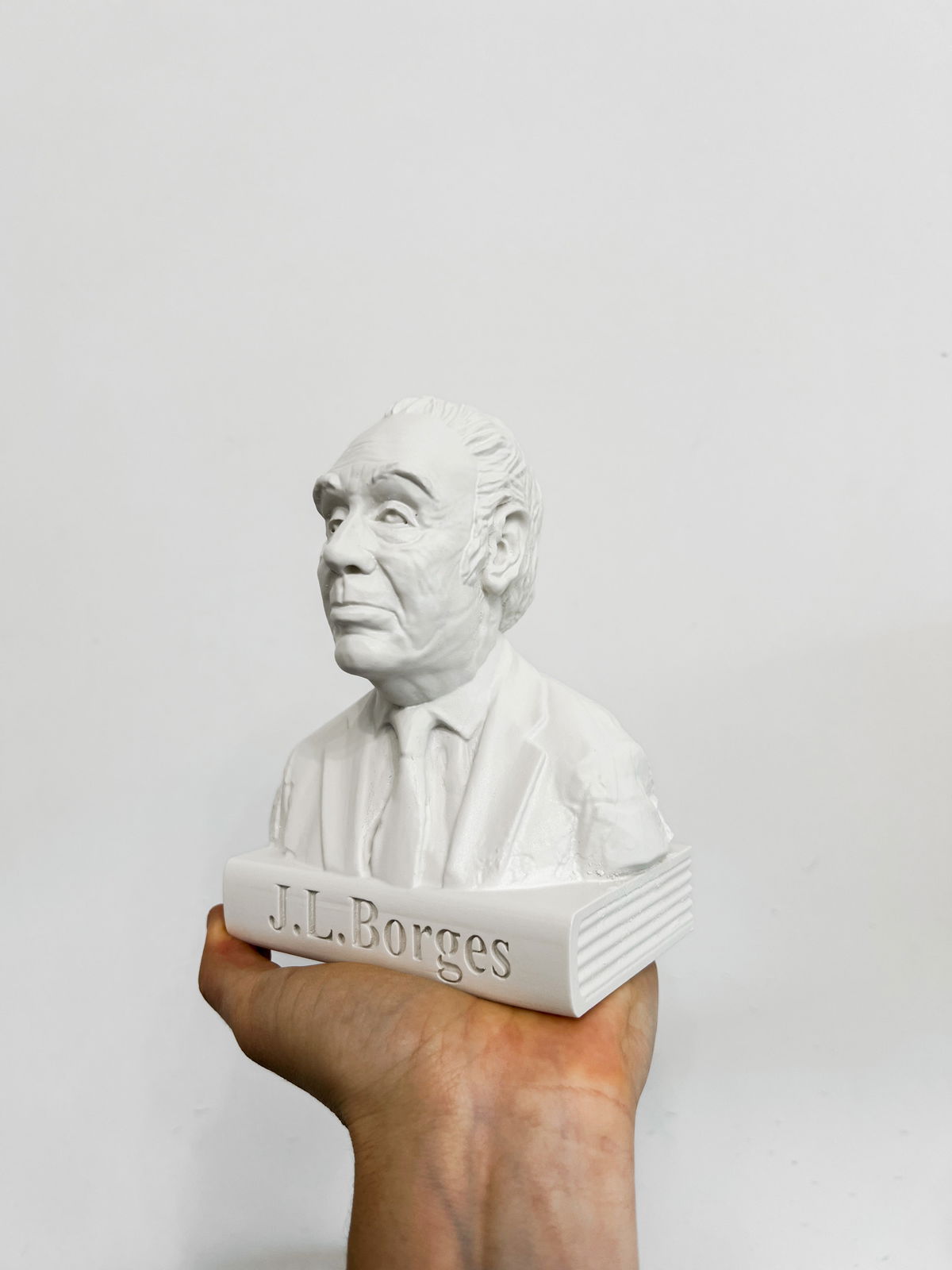 Cada pieza se imprime en 3D con resina UV, logrando una definición impecable en los detalles. Luego, la rellenamos para darle peso y estabilidad. Finalmente, la pintamos con aerosol para obtener un acabado mate que recuerda al concreto, como en nuestra colección general.