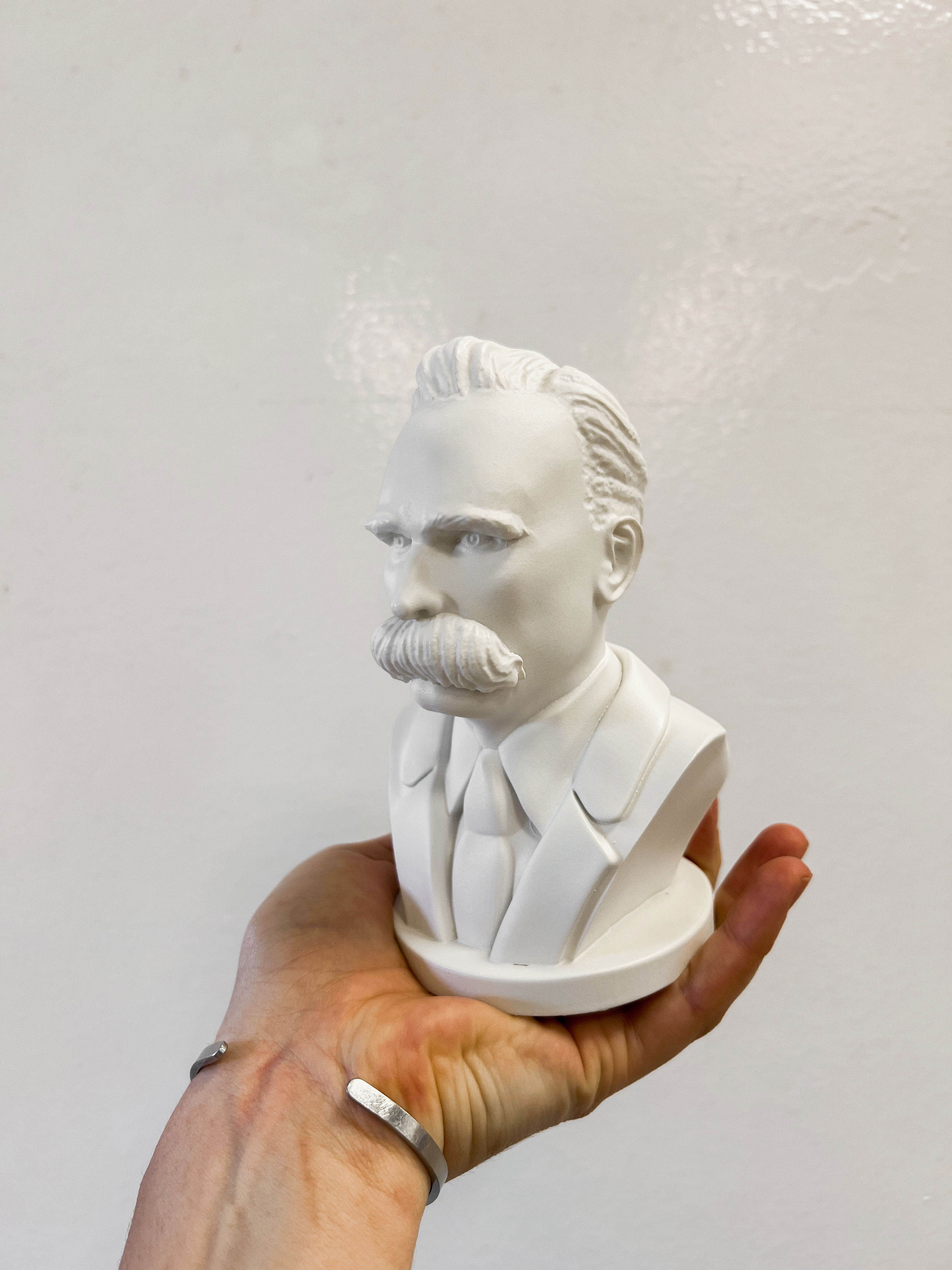 Cada pieza se imprime en 3D con resina UV, logrando una definición impecable en los detalles. Luego, la rellenamos para darle peso y estabilidad. Finalmente, la pintamos con aerosol para obtener un acabado mate que recuerda al concreto, como en nuestra colección general.