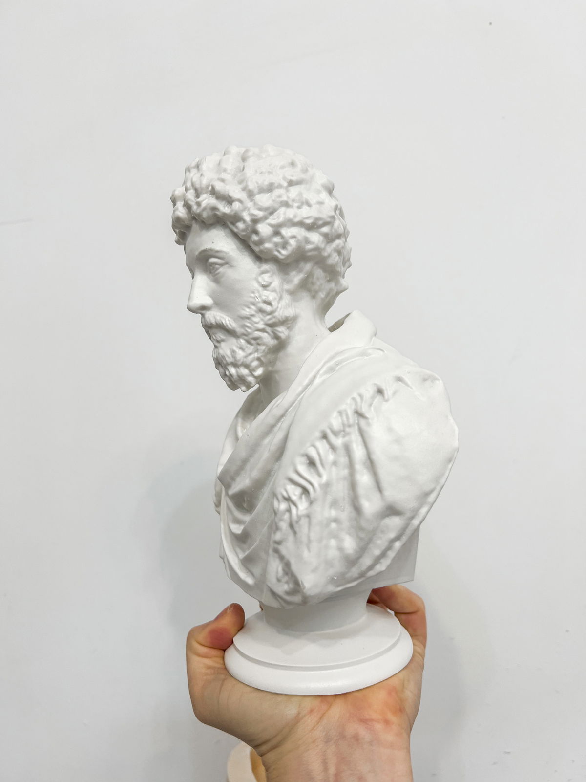 Cada pieza se imprime en 3D con resina UV, logrando una definición impecable en los detalles. Luego, la rellenamos para darle peso y estabilidad. Finalmente, la pintamos con aerosol para obtener un acabado mate que recuerda al concreto, como en nuestra colección general.