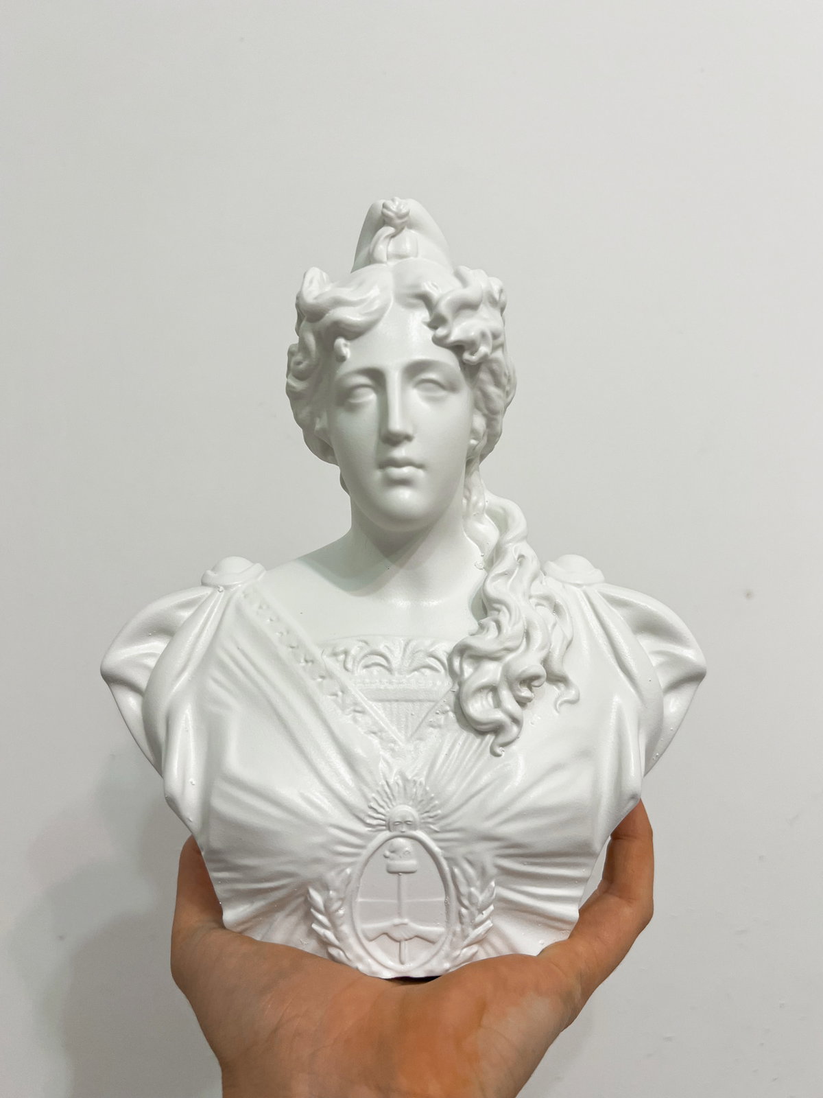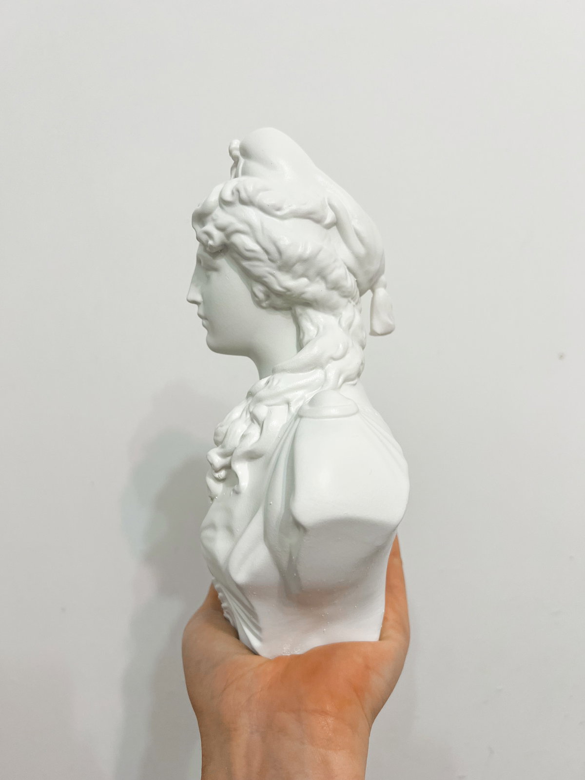 Cada pieza se imprime en 3D con resina UV, logrando una definición impecable en los detalles. Luego, la rellenamos para darle peso y estabilidad. Finalmente, la pintamos con aerosol para obtener un acabado mate que recuerda al concreto, como en nuestra colección general.