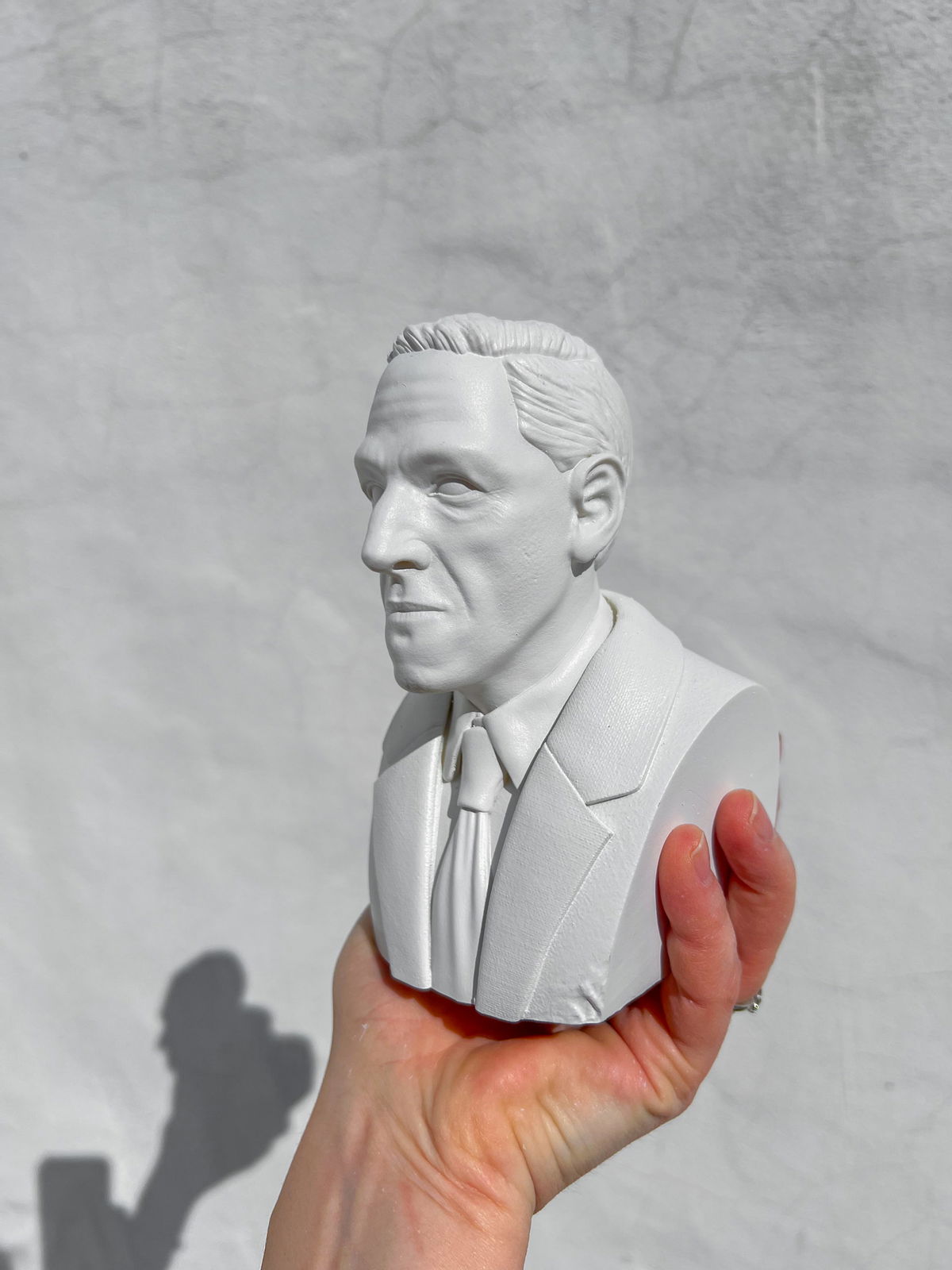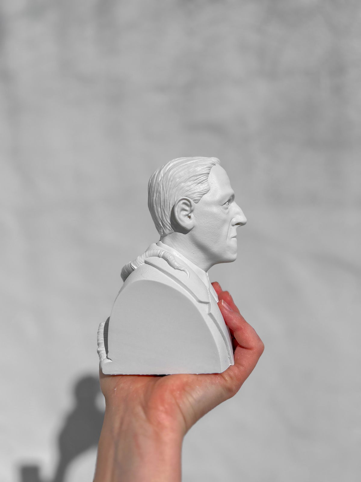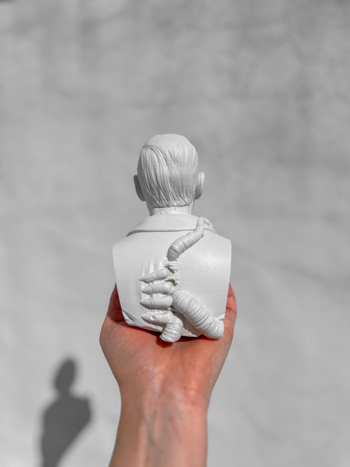 Cada pieza se imprime en 3D con resina UV, logrando una definición impecable en los detalles. Luego, la rellenamos para darle peso y estabilidad. Finalmente, la pintamos con aerosol para obtener un acabado mate que recuerda al concreto, como en nuestra colección general.