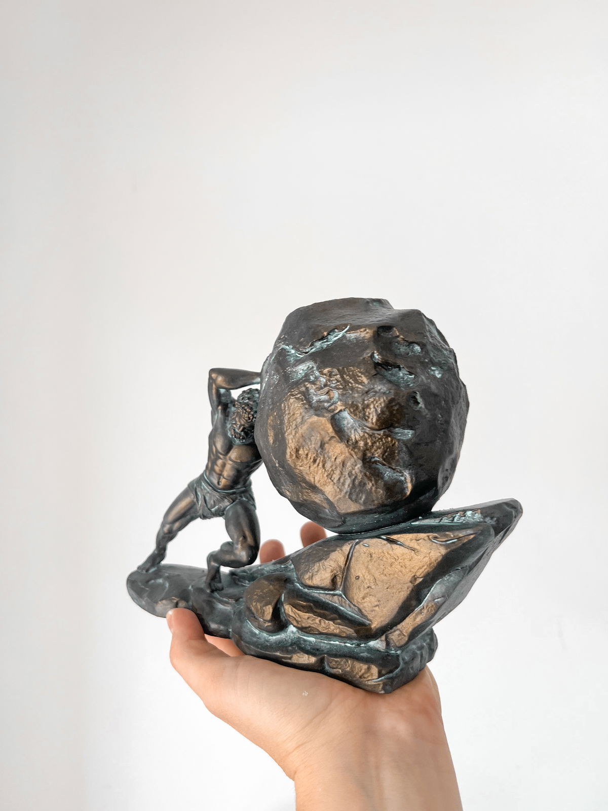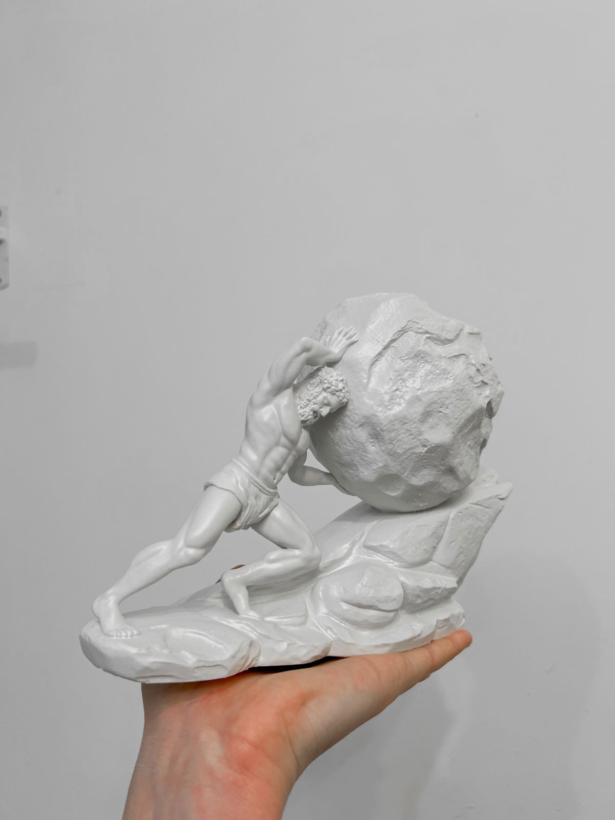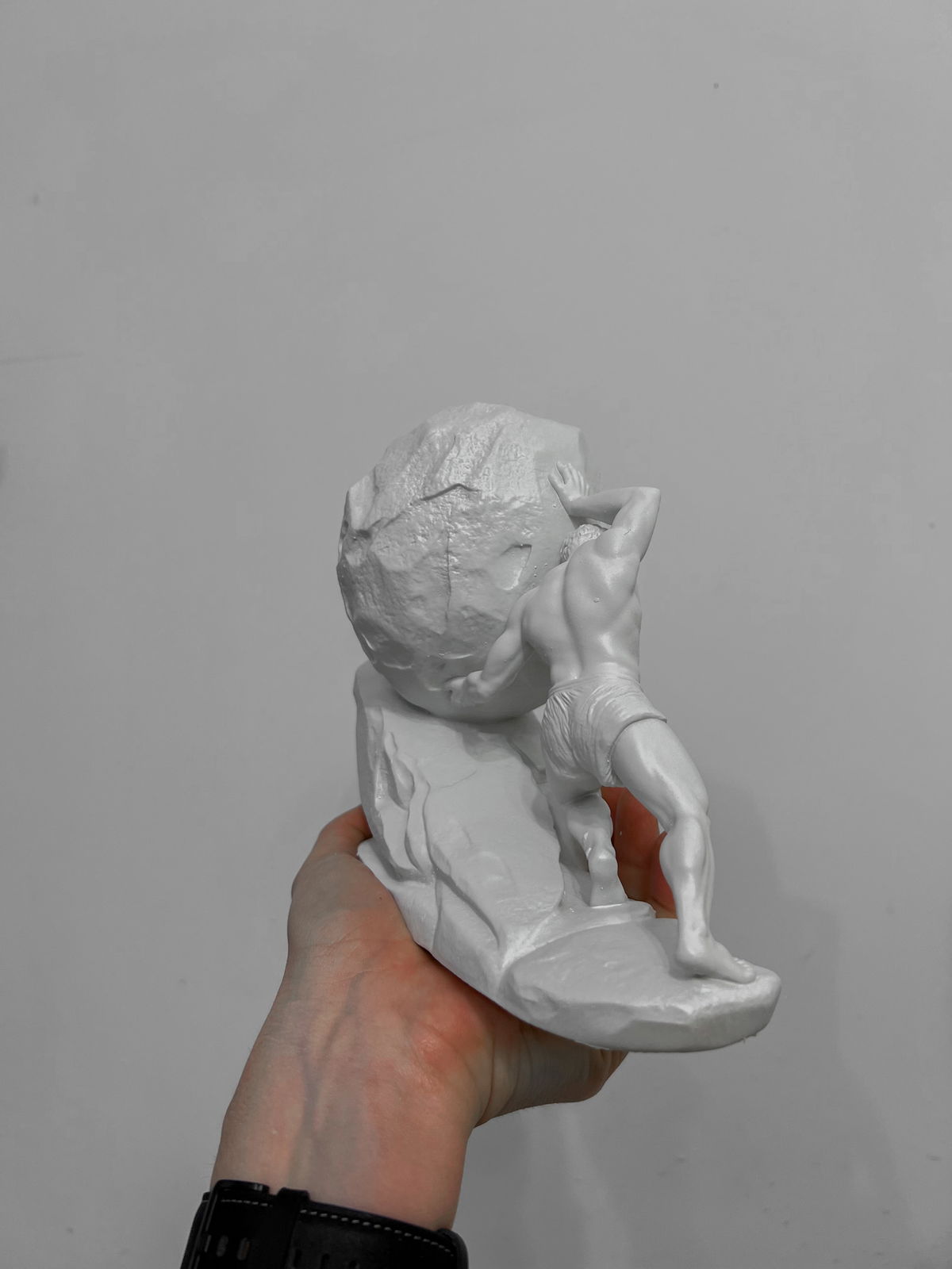 Cada pieza se imprime en 3D con resina UV, logrando una definición impecable en los detalles. Luego, la rellenamos para darle peso y estabilidad. Finalmente, la pintamos con aerosol para obtener un acabado mate que recuerda al concreto, como en nuestra colección general.