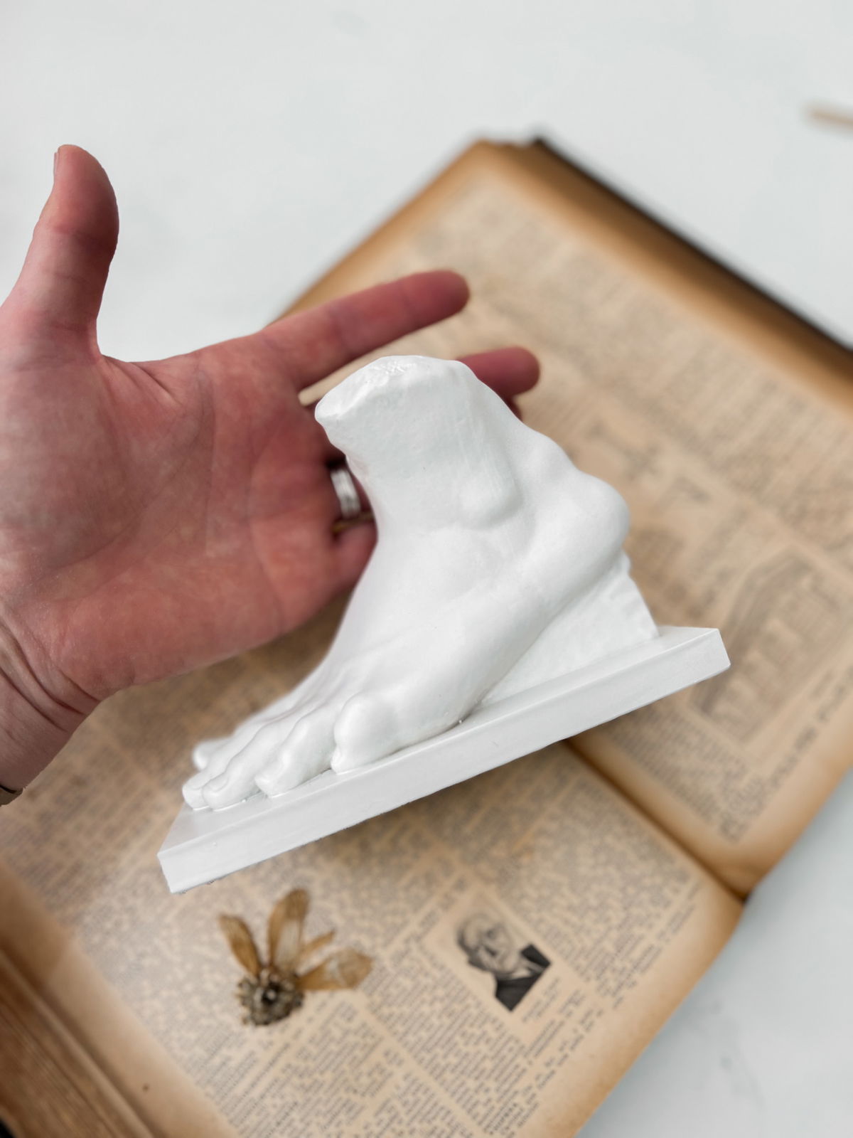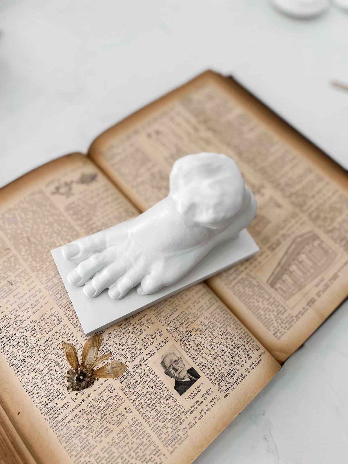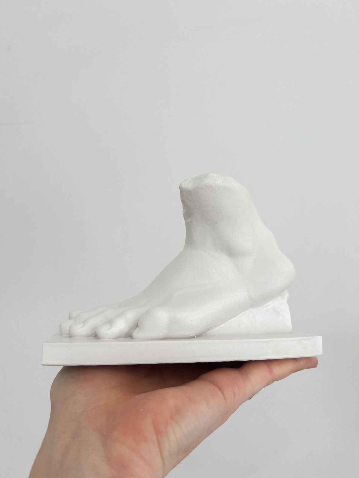 Cada pieza se imprime en 3D con resina UV, logrando una definición impecable en los detalles. Luego, la rellenamos para darle peso y estabilidad. Finalmente, la pintamos con aerosol para obtener un acabado mate que recuerda al concreto, como en nuestra colección general.