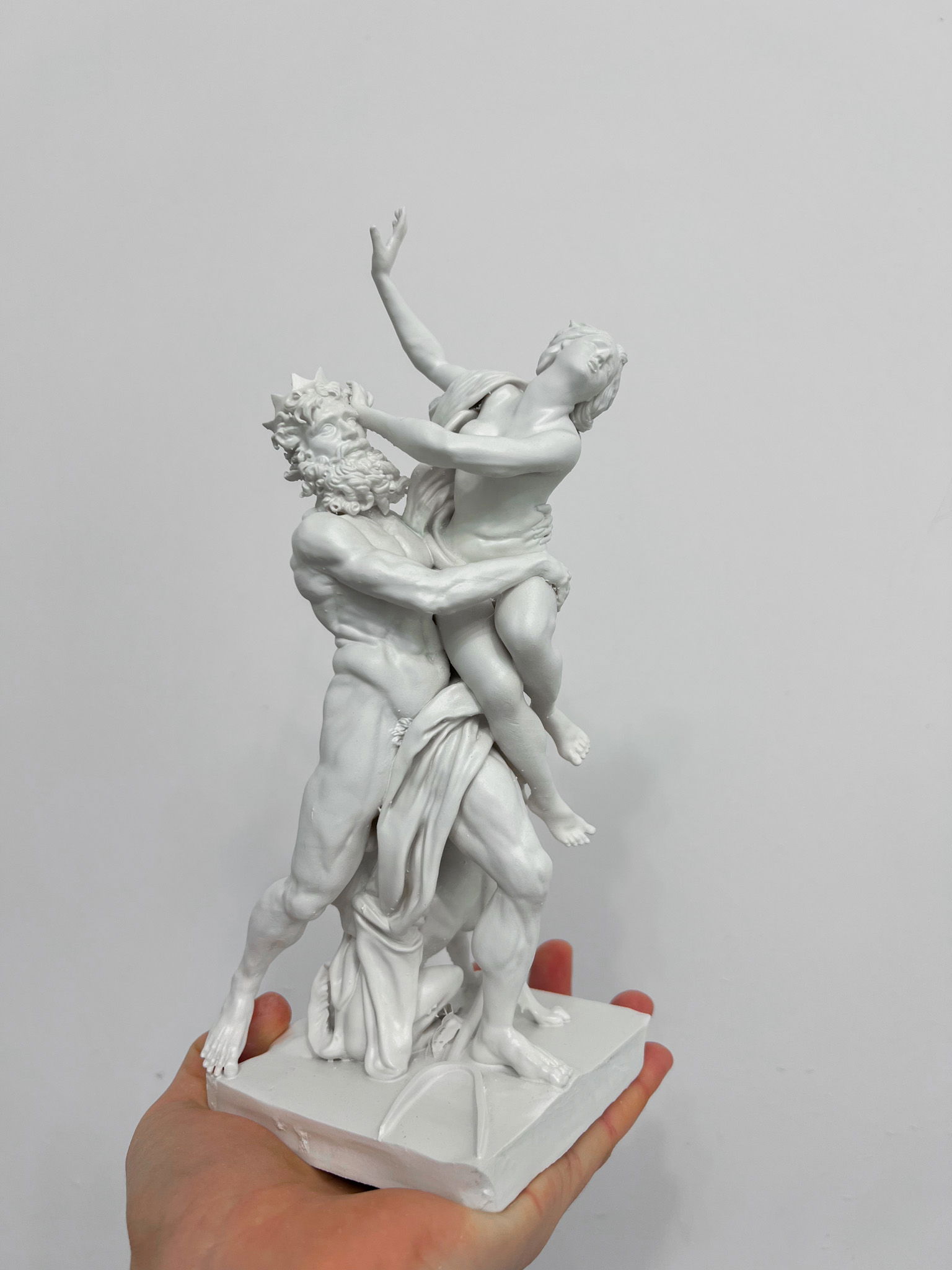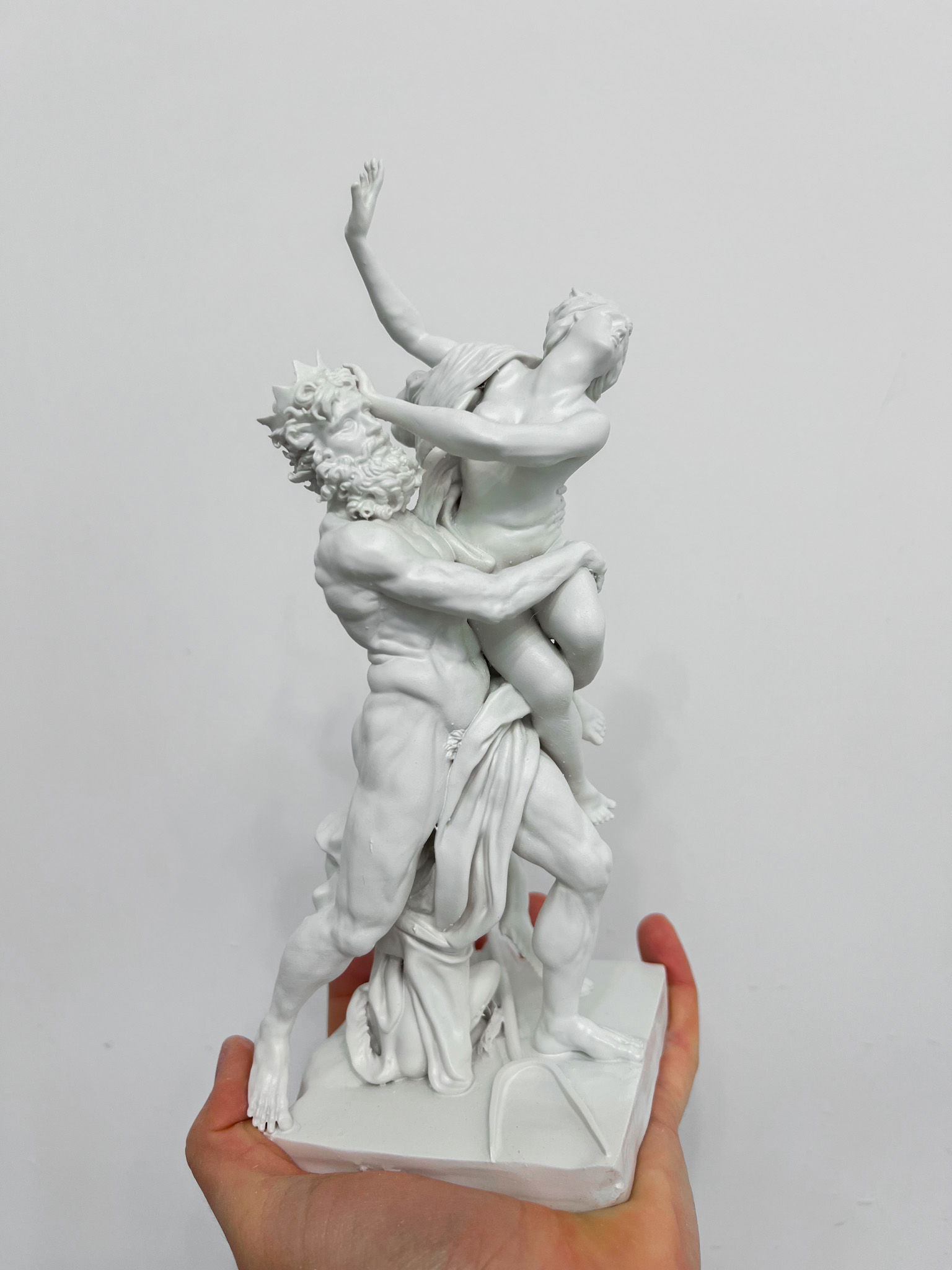 Cada pieza se imprime en 3D con resina UV, logrando una definición impecable en los detalles. Luego, la rellenamos para darle peso y estabilidad. Finalmente, la pintamos con aerosol para obtener un acabado mate que recuerda al concreto, como en nuestra colección general.