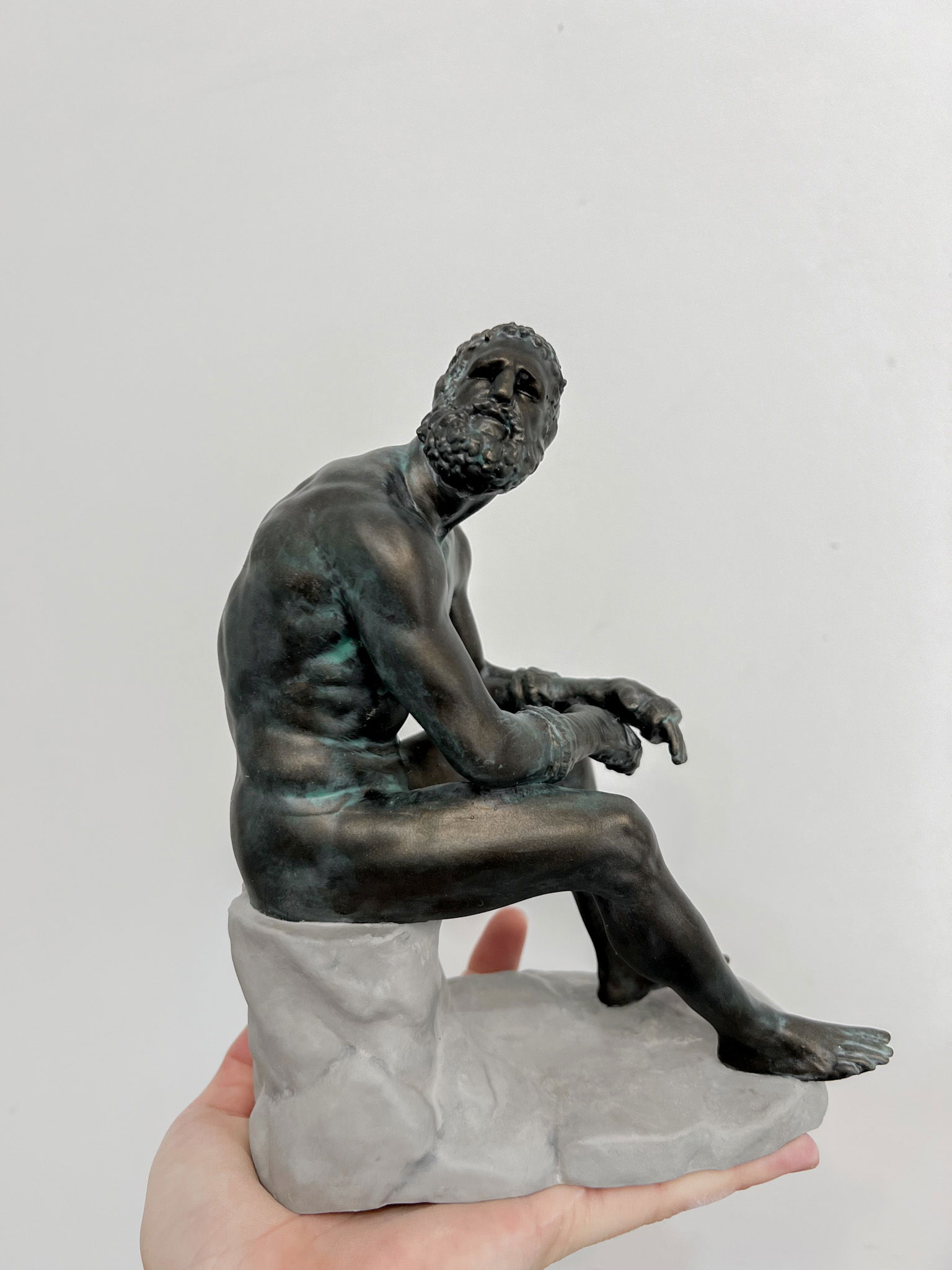Cada pieza se imprime en 3D con resina UV, logrando una definición impecable en los detalles. Luego, la rellenamos para darle peso y estabilidad. Finalmente, la pintamos con aerosol para obtener un acabado mate que recuerda al concreto, como en nuestra colección general.