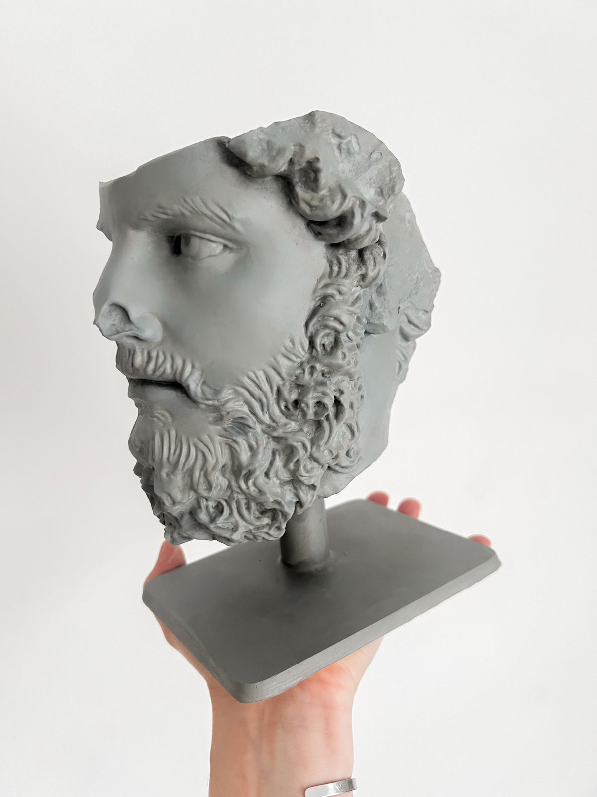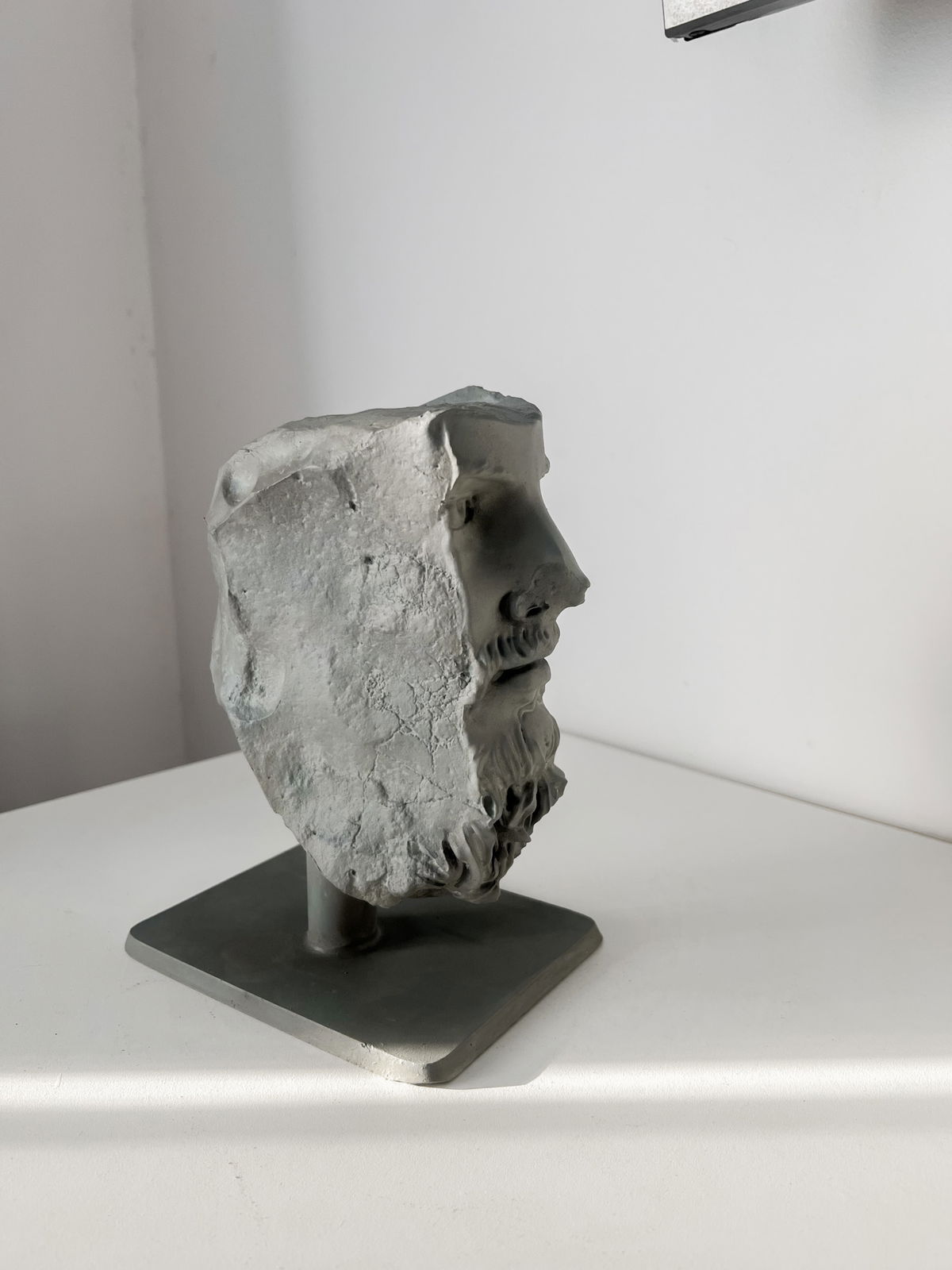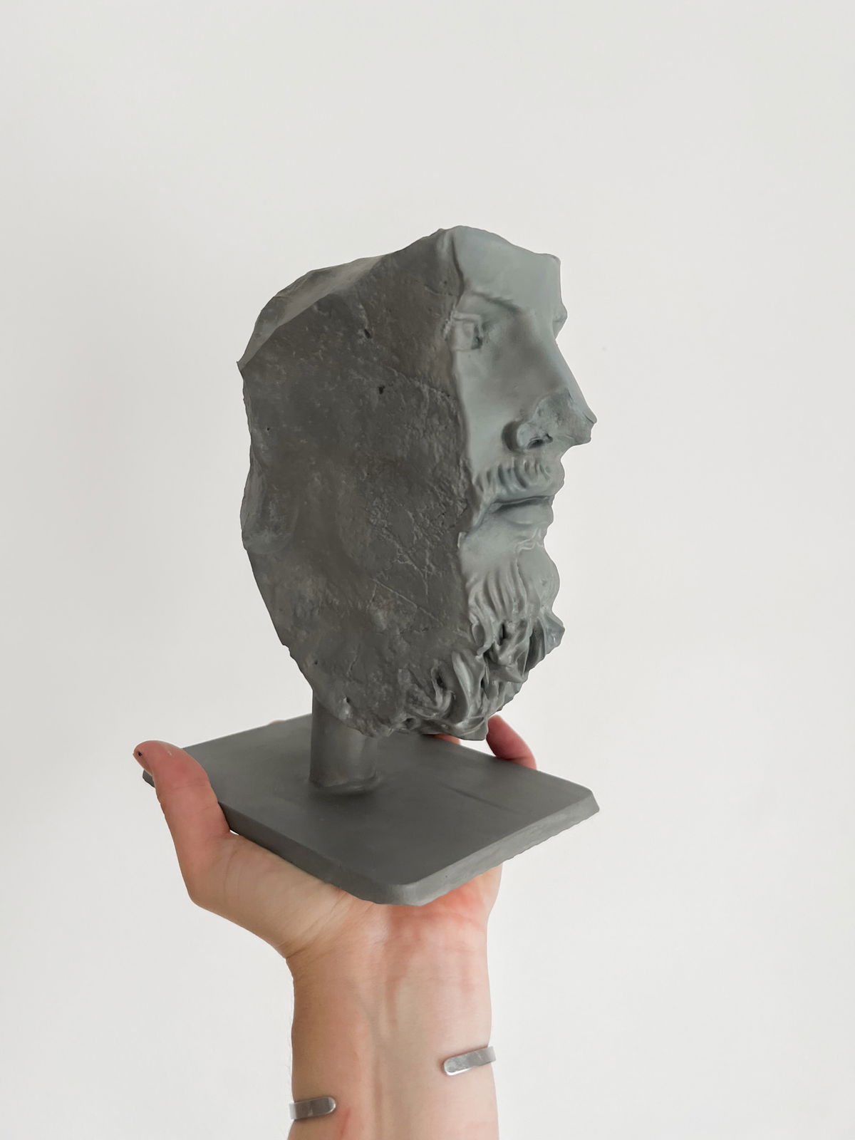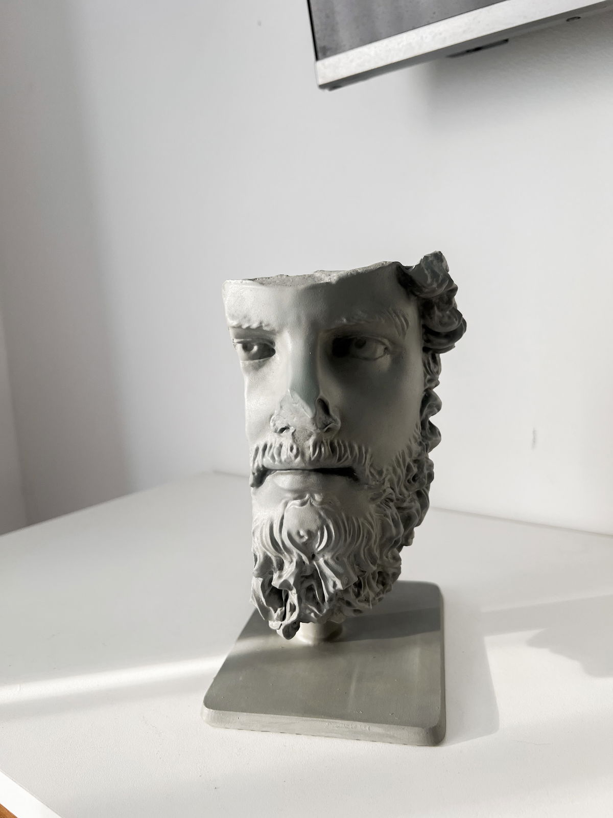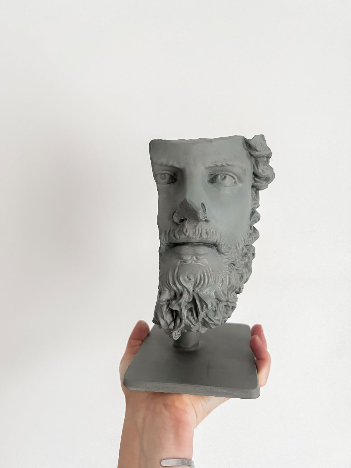 Cada pieza se imprime en 3D con resina UV, logrando una definición impecable en los detalles. Luego, la rellenamos para darle peso y estabilidad. Finalmente, la pintamos con aerosol para obtener un acabado mate que recuerda al concreto, como en nuestra colección general.