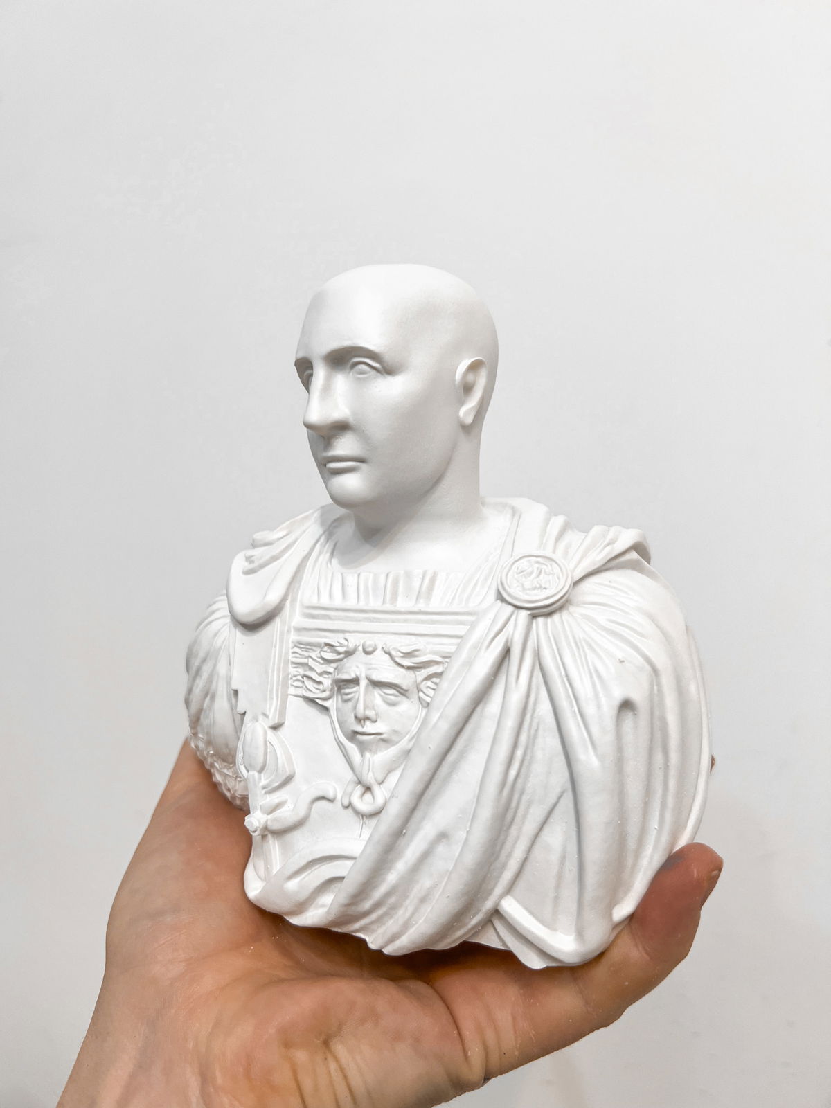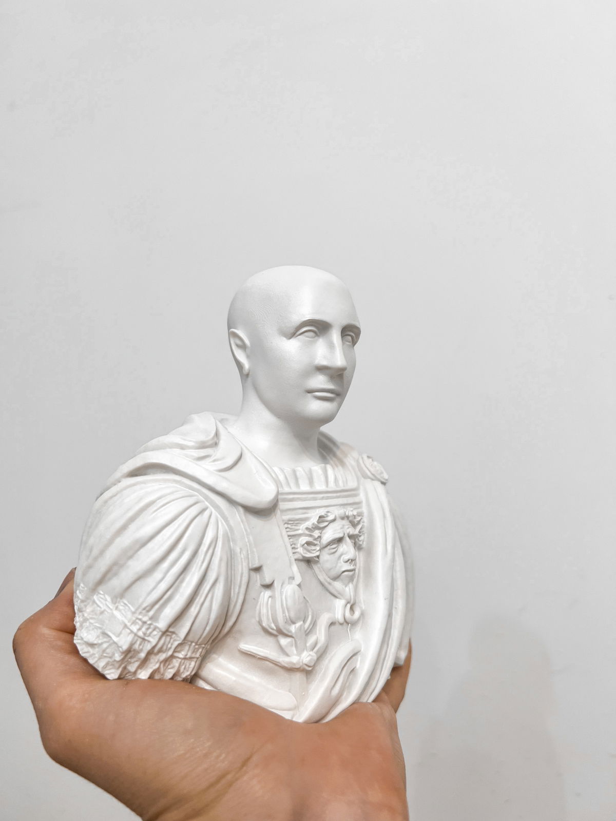 Cada pieza se imprime en 3D con resina UV, logrando una definición impecable en los detalles. Luego, la rellenamos para darle peso y estabilidad. Finalmente, la pintamos con aerosol para obtener un acabado mate que recuerda al concreto, como en nuestra colección general.