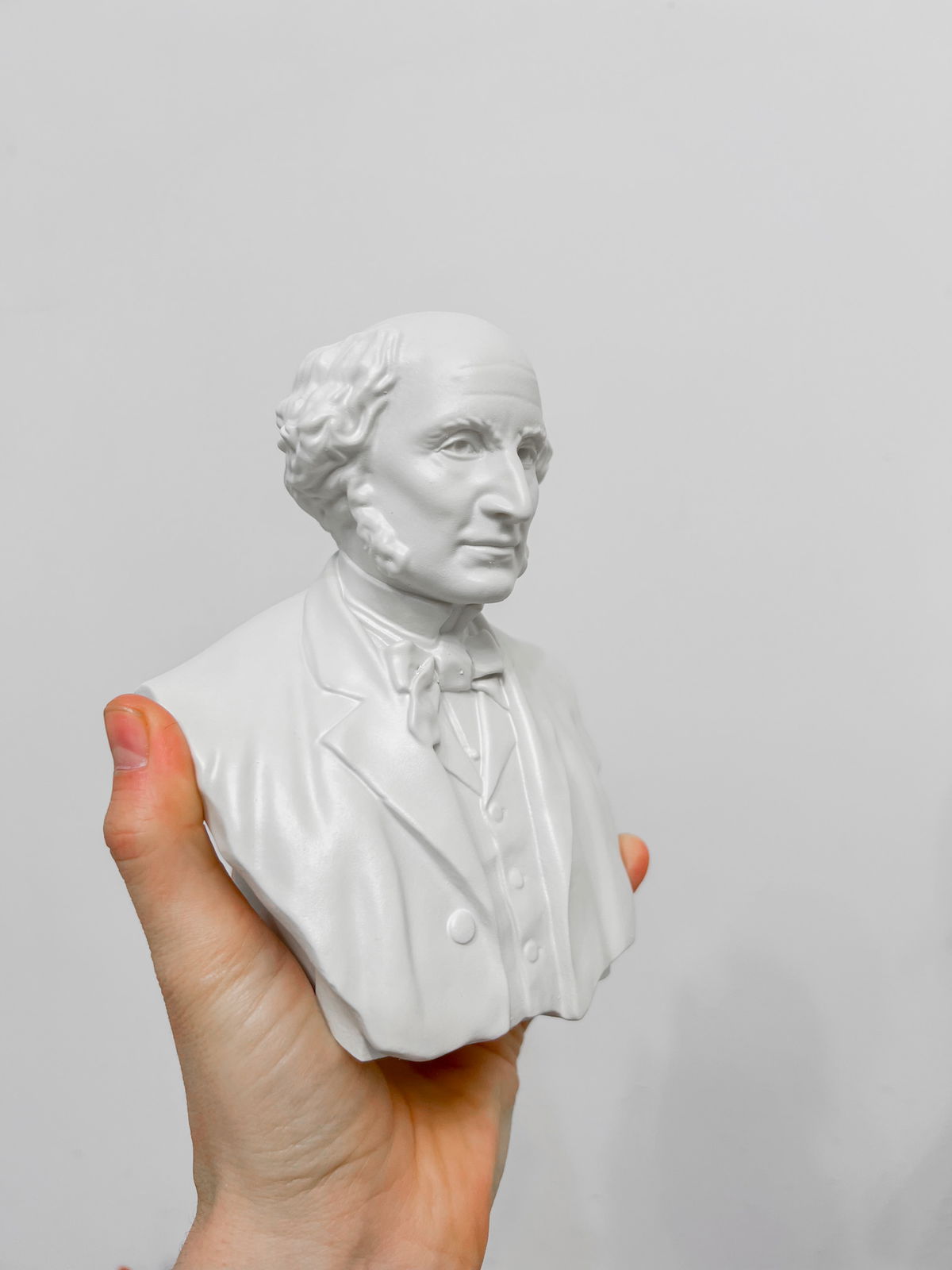 Cada pieza se imprime en 3D con resina UV, logrando una definición impecable en los detalles. Luego, la rellenamos para darle peso y estabilidad. Finalmente, la pintamos con aerosol para obtener un acabado mate que recuerda al concreto, como en nuestra colección general.