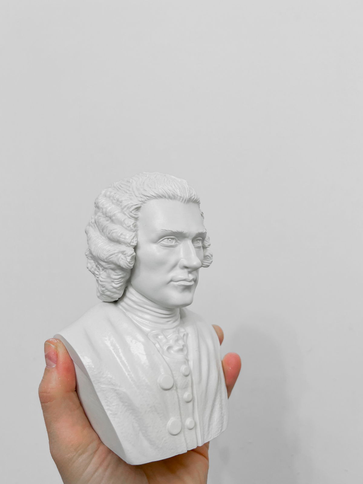 Cada pieza se imprime en 3D con resina UV, logrando una definición impecable en los detalles. Luego, la rellenamos para darle peso y estabilidad. Finalmente, la pintamos con aerosol para obtener un acabado mate que recuerda al concreto, como en nuestra colección general.