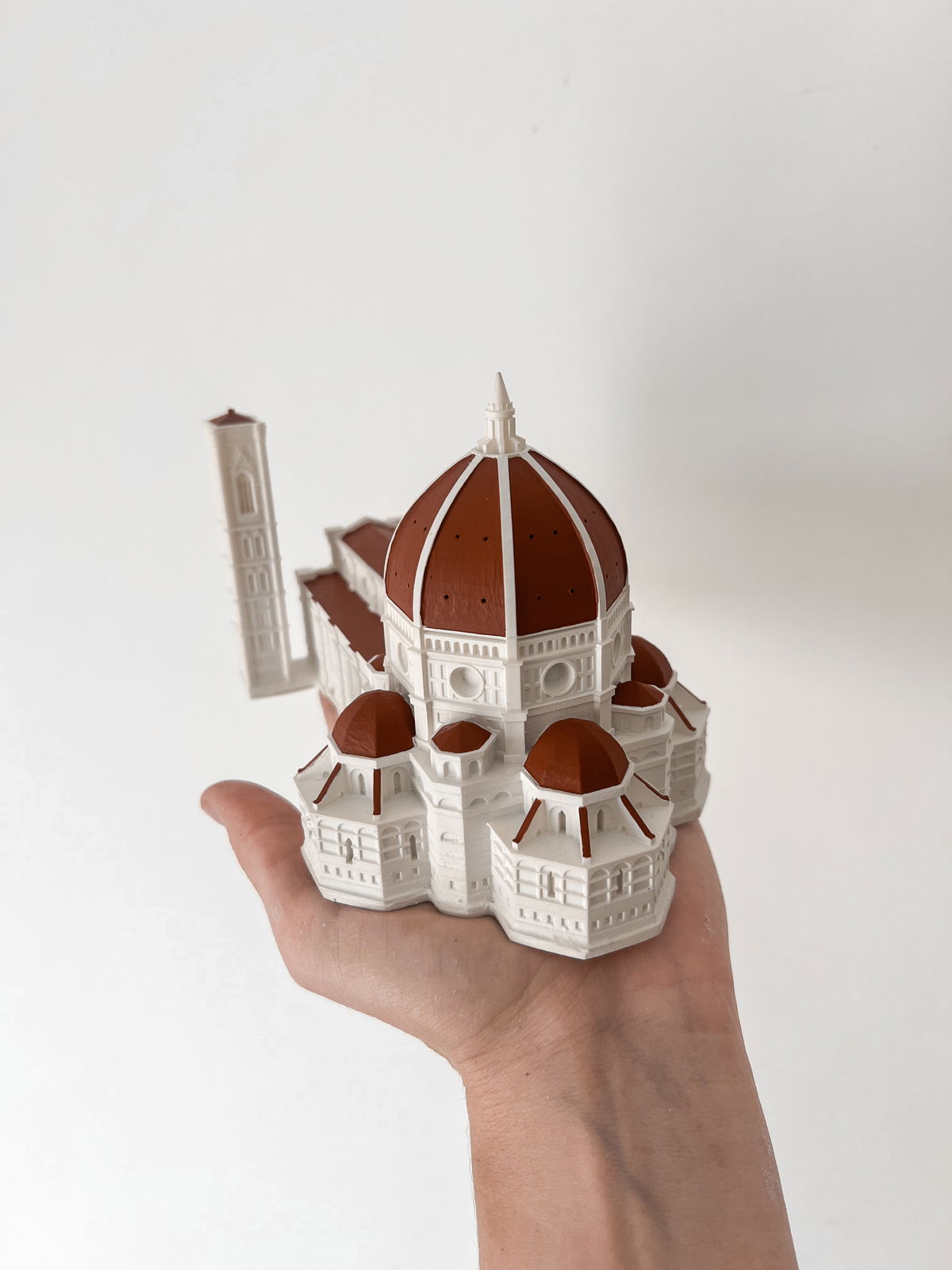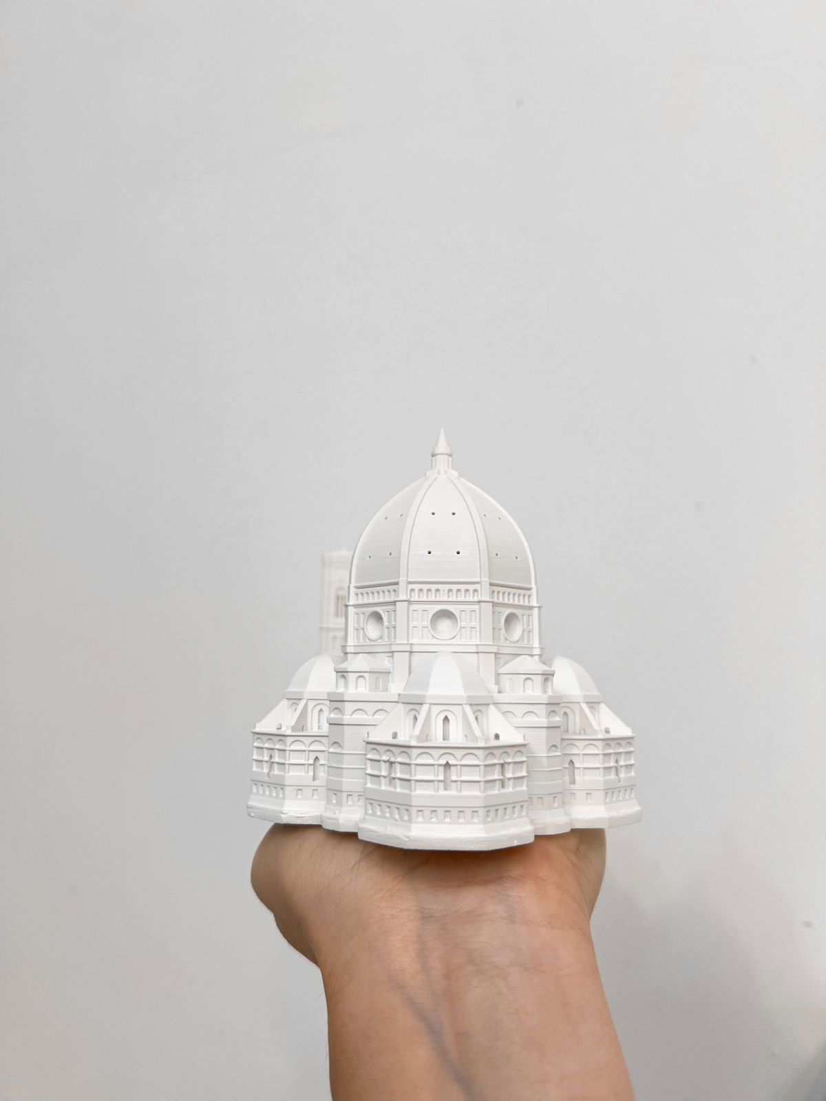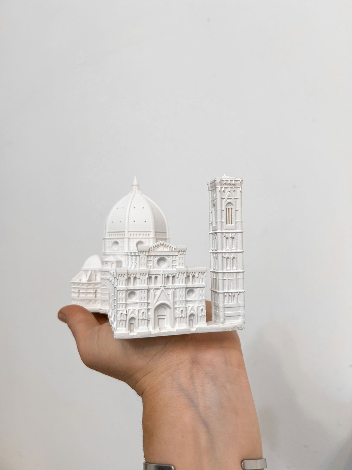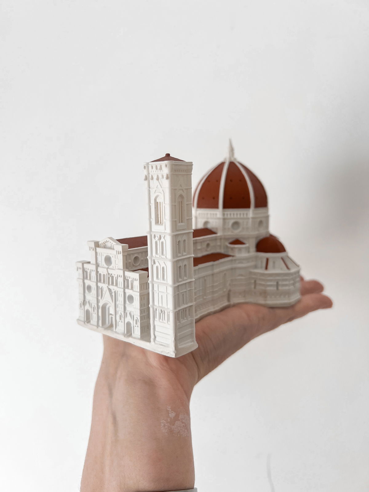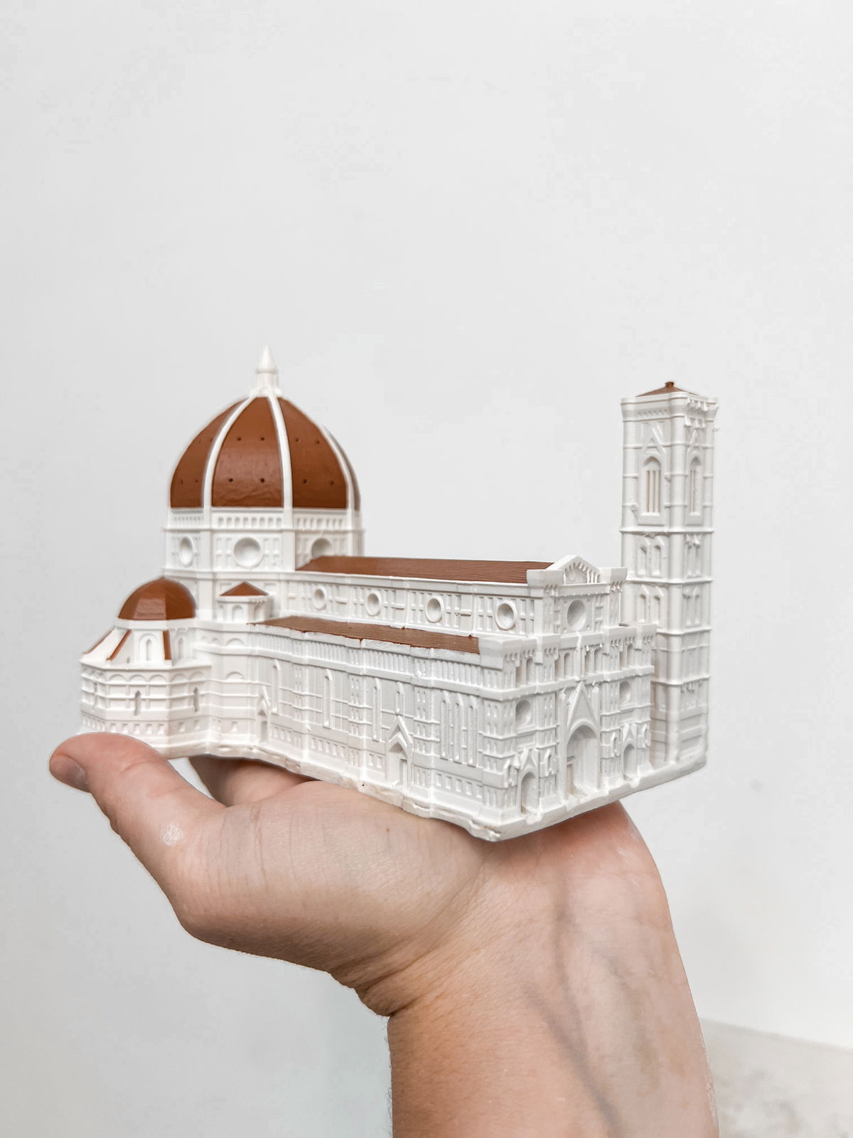 Cada pieza se imprime en 3D con resina UV, logrando una definición impecable en los detalles. Luego, la rellenamos para darle peso y estabilidad. Finalmente, la pintamos con aerosol para obtener un acabado mate que recuerda al concreto, como en nuestra colección general.