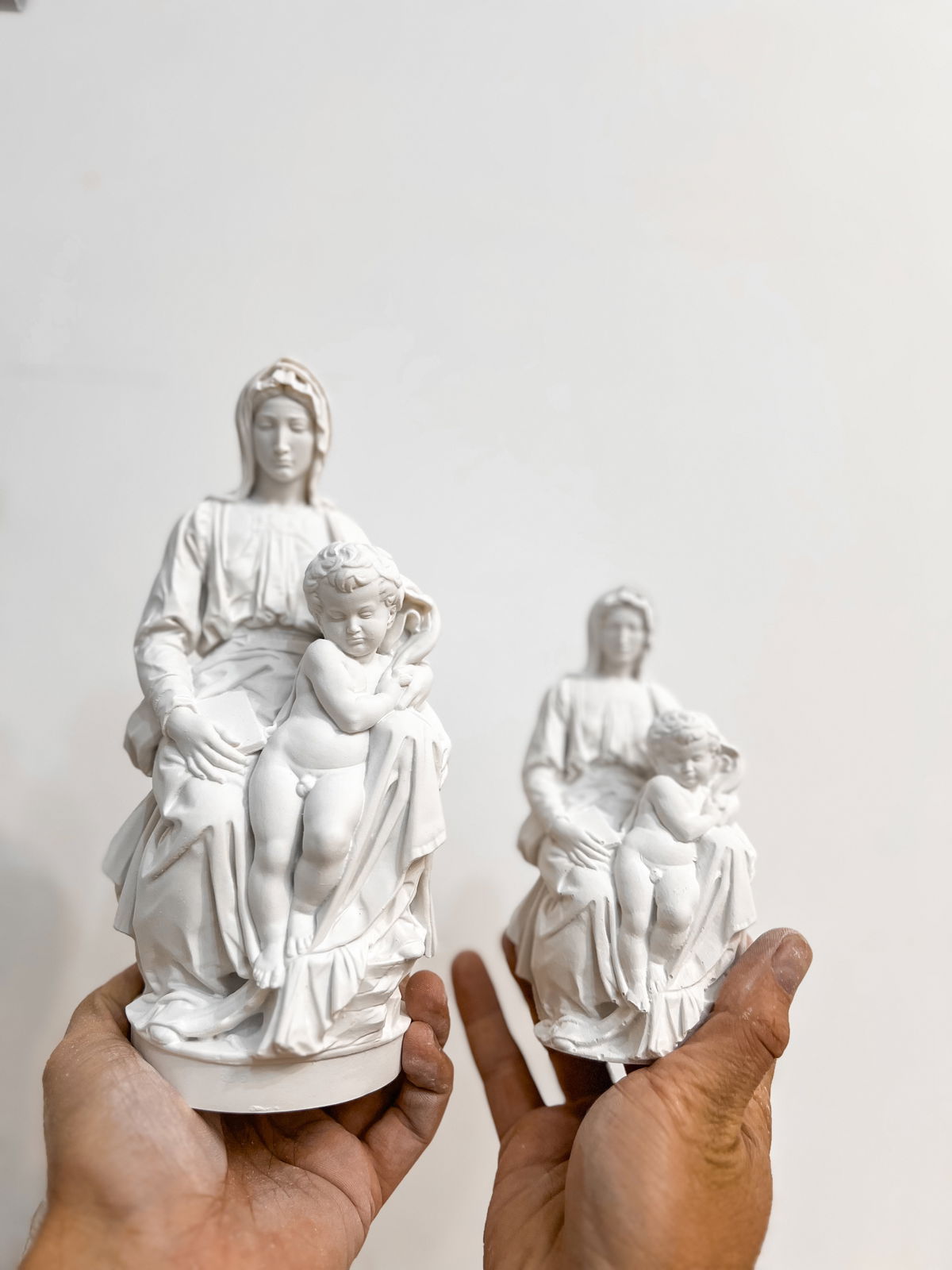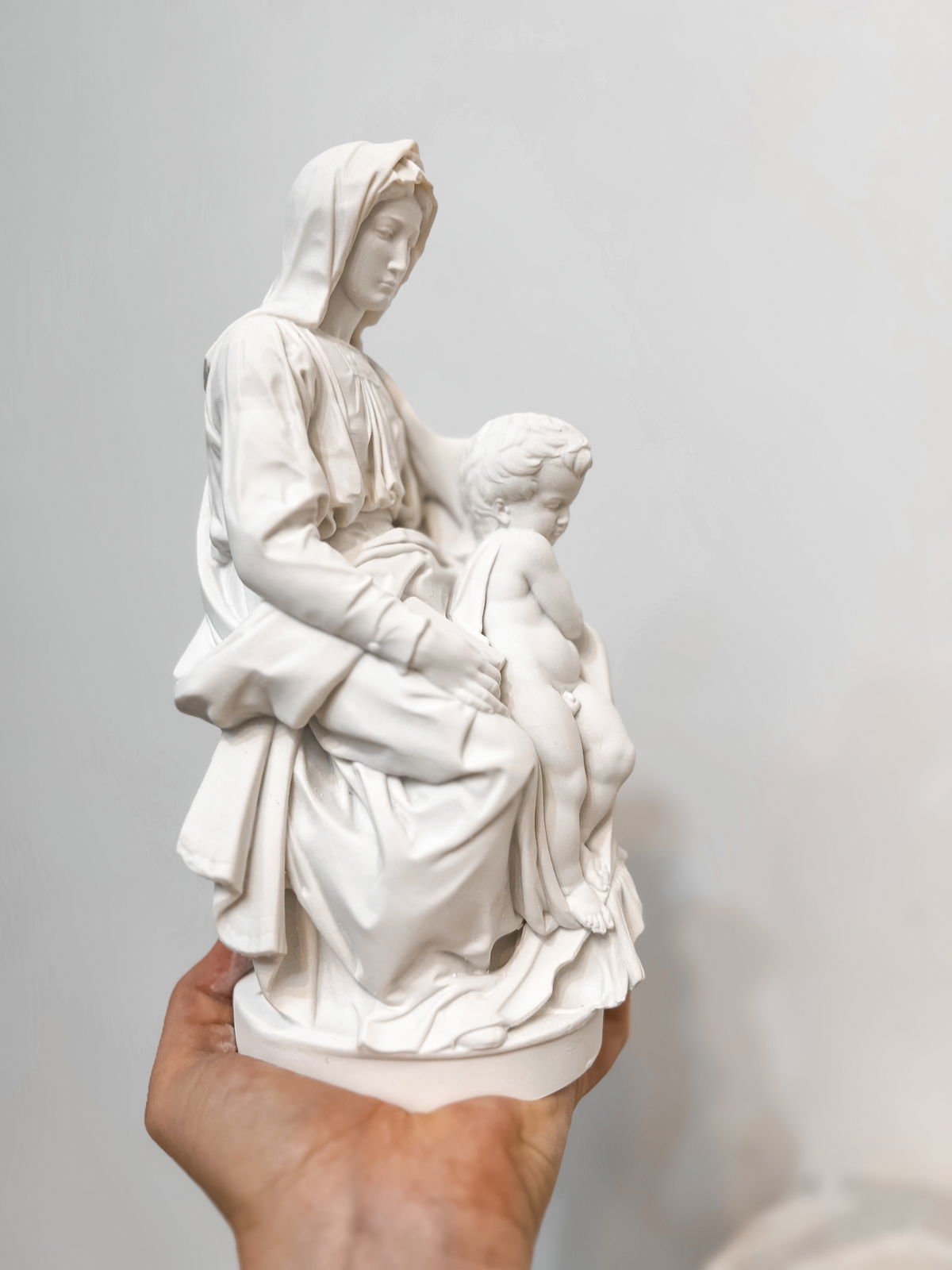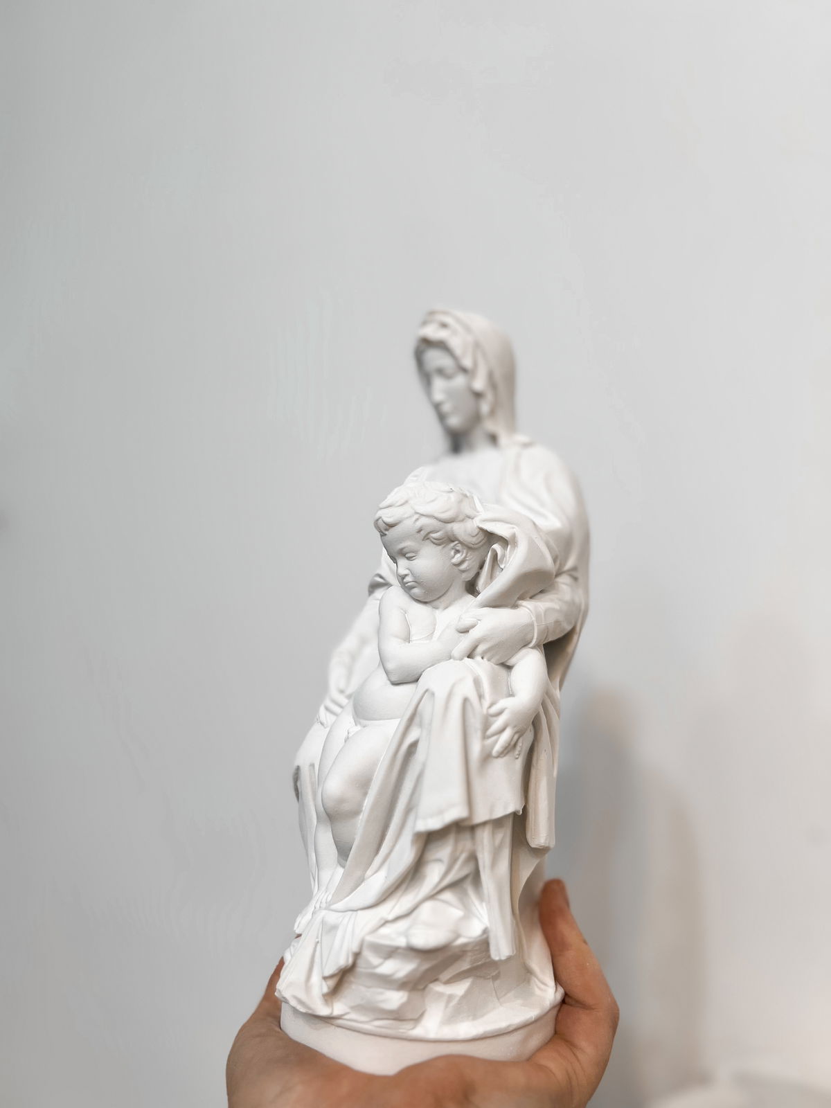 Cada pieza se imprime en 3D con resina UV, logrando una definición impecable en los detalles. Luego, la rellenamos para darle peso y estabilidad. Finalmente, la pintamos con aerosol para obtener un acabado mate que recuerda al concreto, como en nuestra colección general.